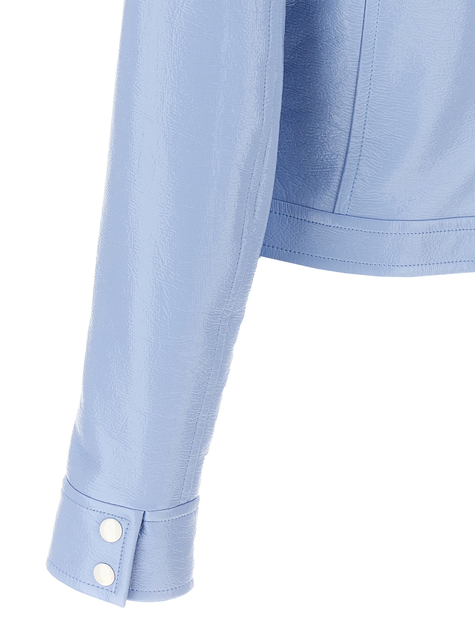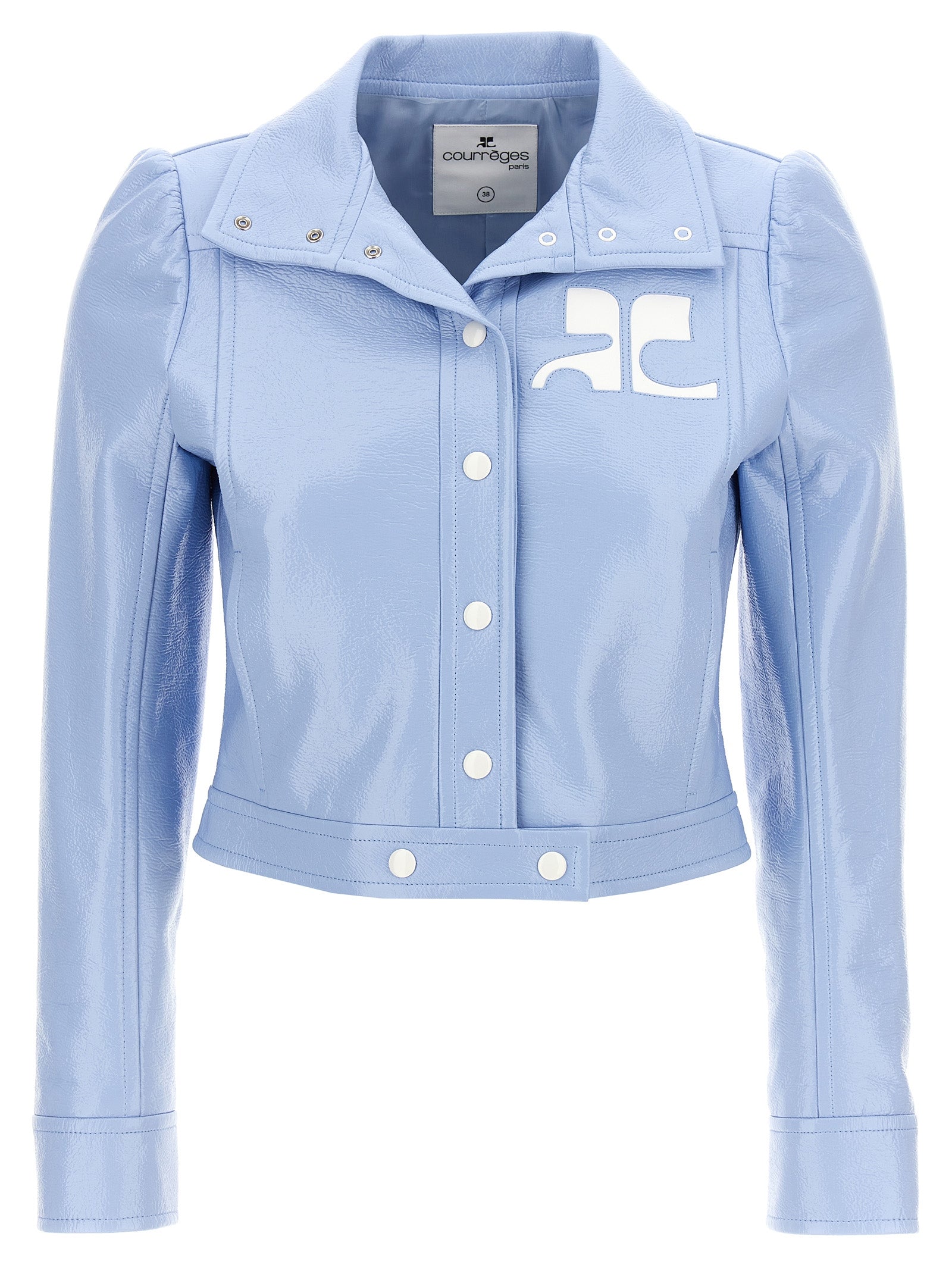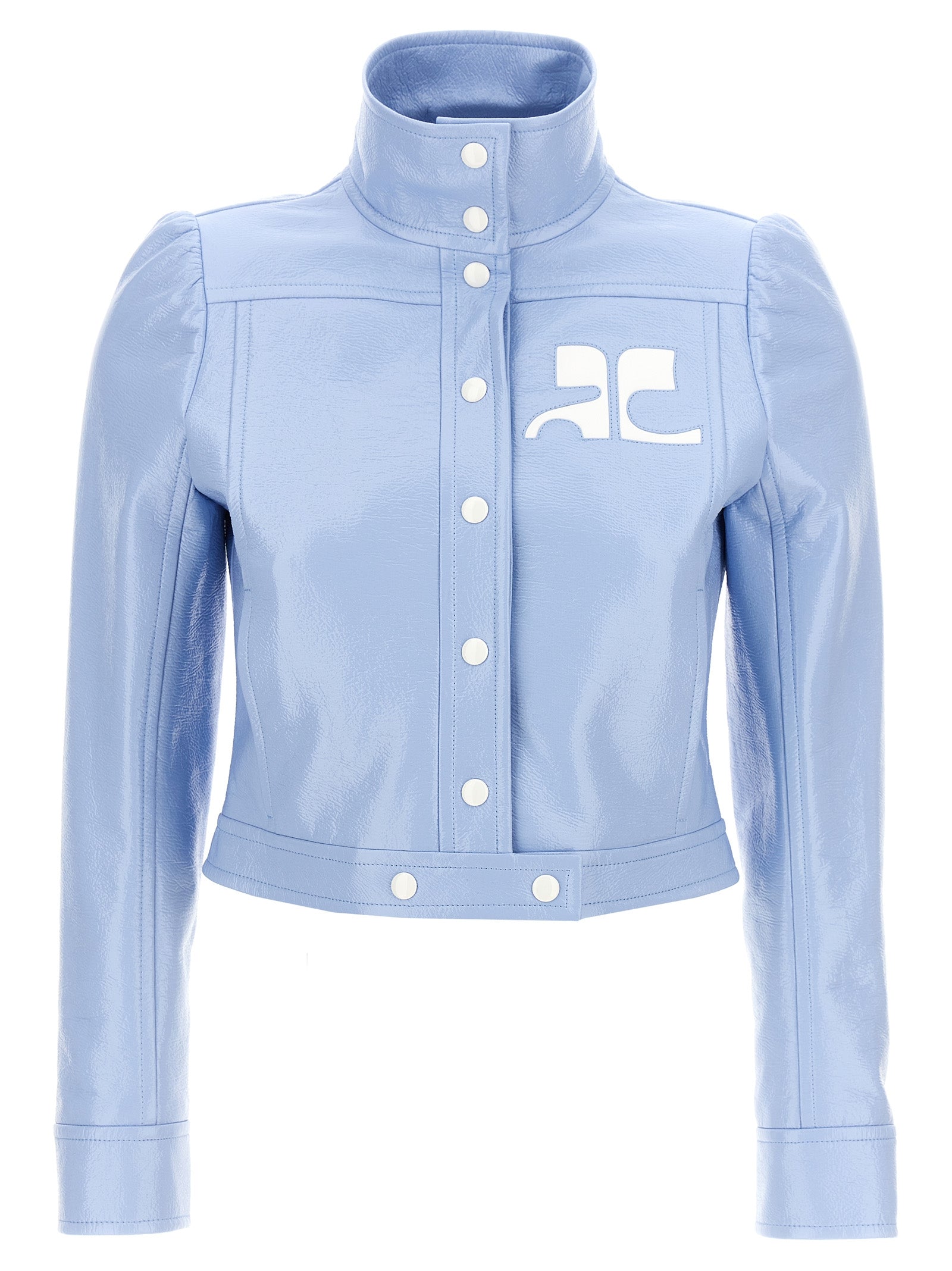 Chaqueta de vinilo de vinilo de reedición con cierre del botón Snap, logotipo maxi en el pecho, mangas largas.