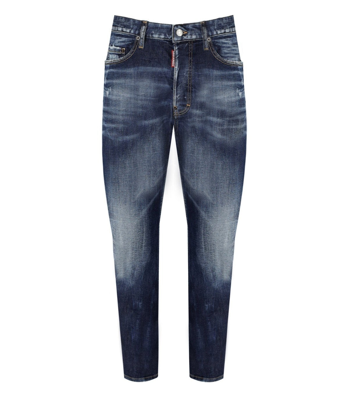 DSquared2 Bro Jeans es de mezclilla azul de algodón, con rasgaduras y detalles desgarrados. Cuenta con una etiqueta contrastante en la parte posterior, el cierre del botón y una etiqueta del logotipo. Fit de holgura. Composición: 92% algodón, 6% Elasterell, 2% elastano.
