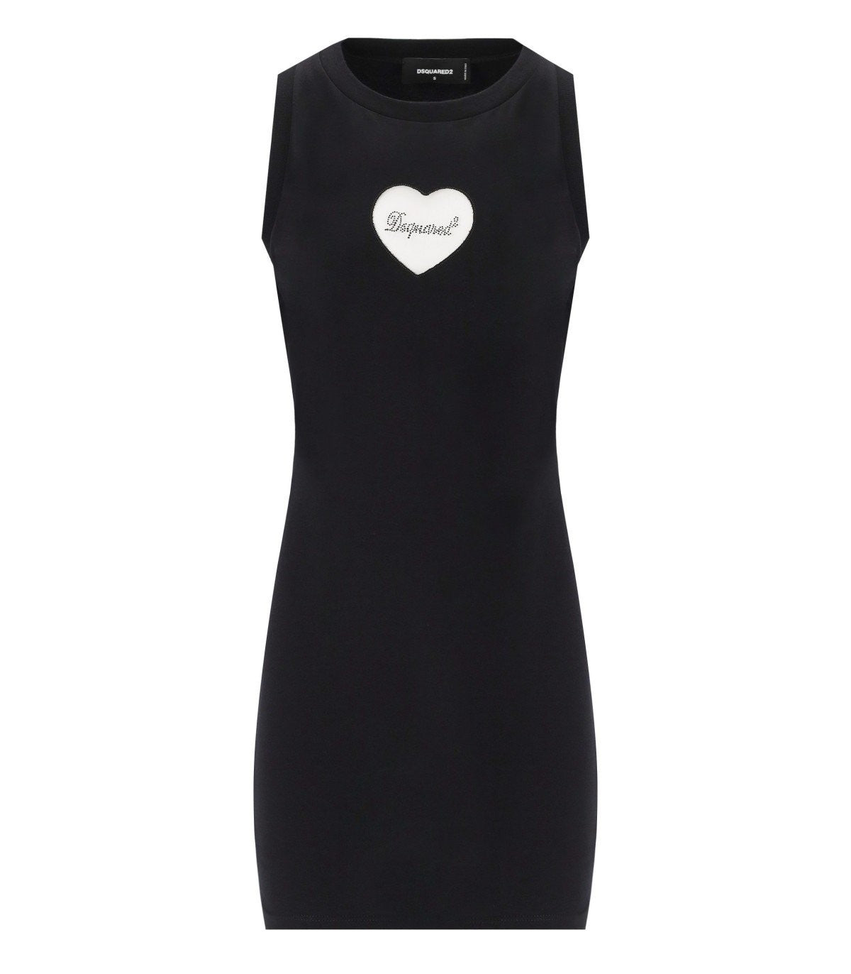 Vestido de corazón de DSquared2 hecho en jersey de algodón negro. Cuello redondo, detalle de tul con logotipo de diamantes de imitación en el cofre. Ajuste apretado. Composición: 100% algodón.