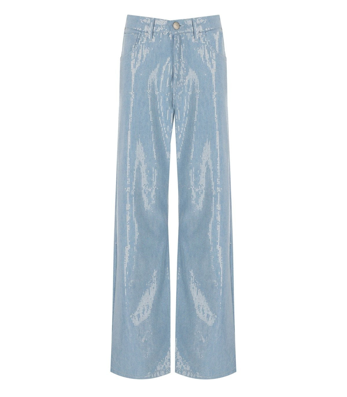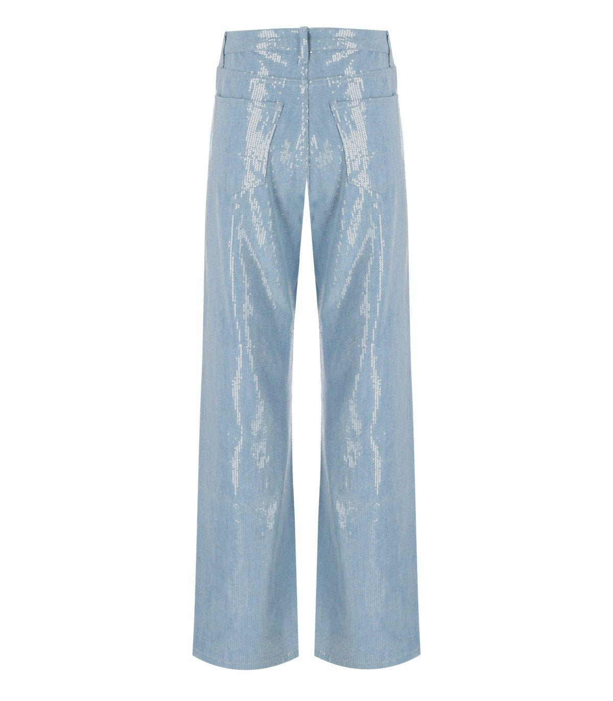 Jeans de Federica Tosi hecho de mezclilla de algodón adornado con lentejuelas en tonos de azul. Caracterizado por un corte recto, presenta un cierre con una cremallera oculta por un botón logo y bolsillos de aleta lateral. Ajuste regular. Esta prenda está hecha a mano, por lo tanto, cualquier irregularidad de color e imperfecciones pequeñas debe considerarse una verdadera característica del producto. Composición: 90% de algodón, 10% viscosa.