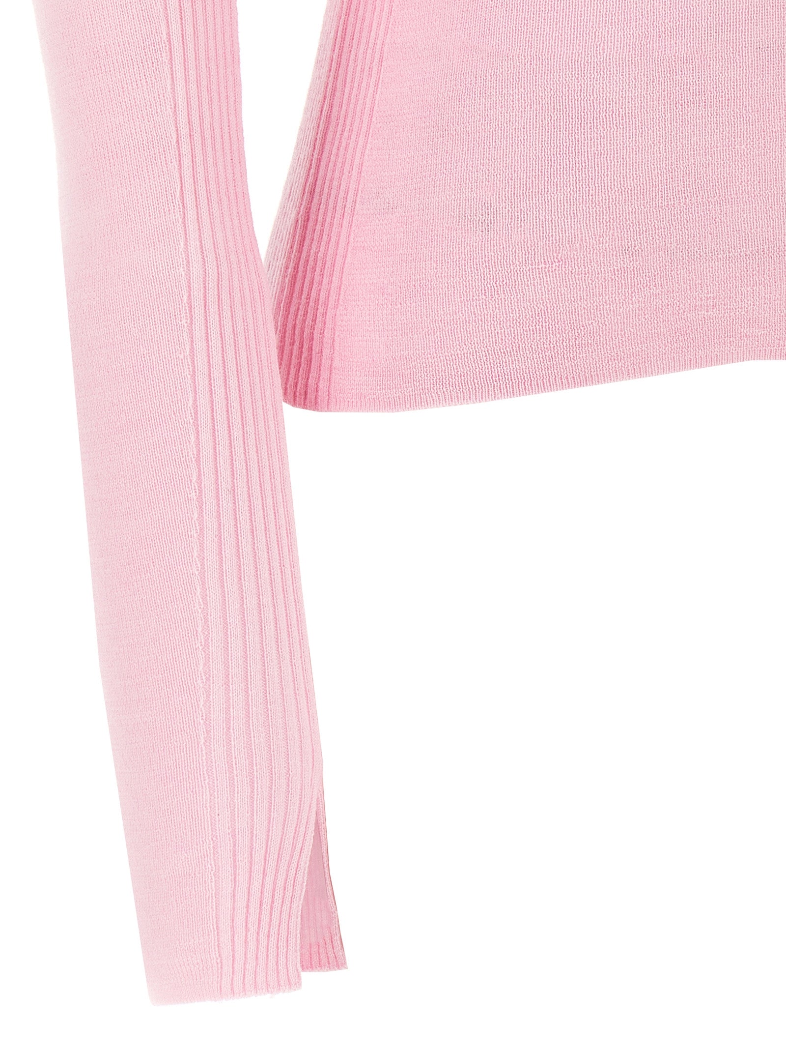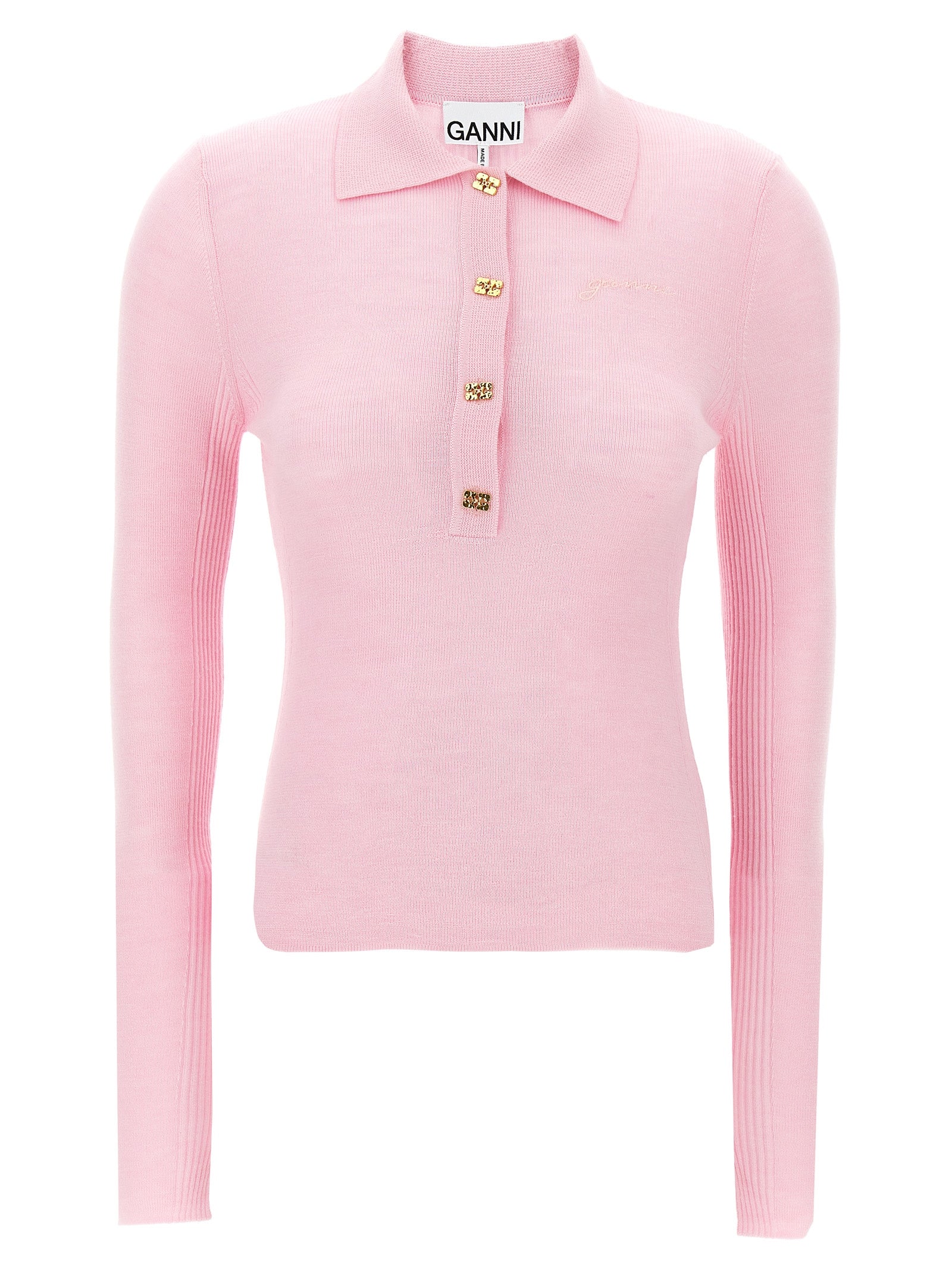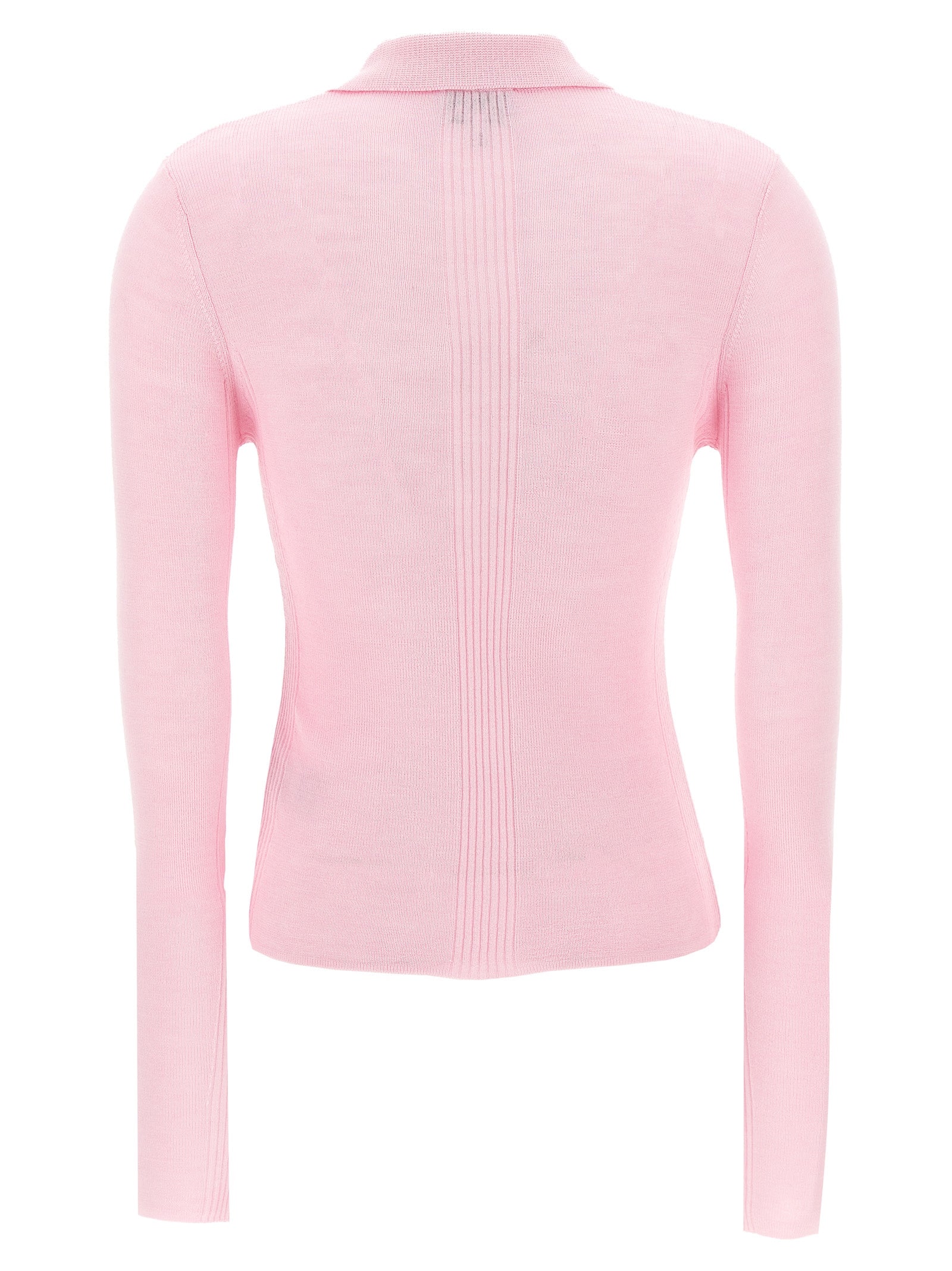 Polo de punto de lana, con bordado del logotipo delantero, mangas largas con hendiduras en el dobladillo inferior.