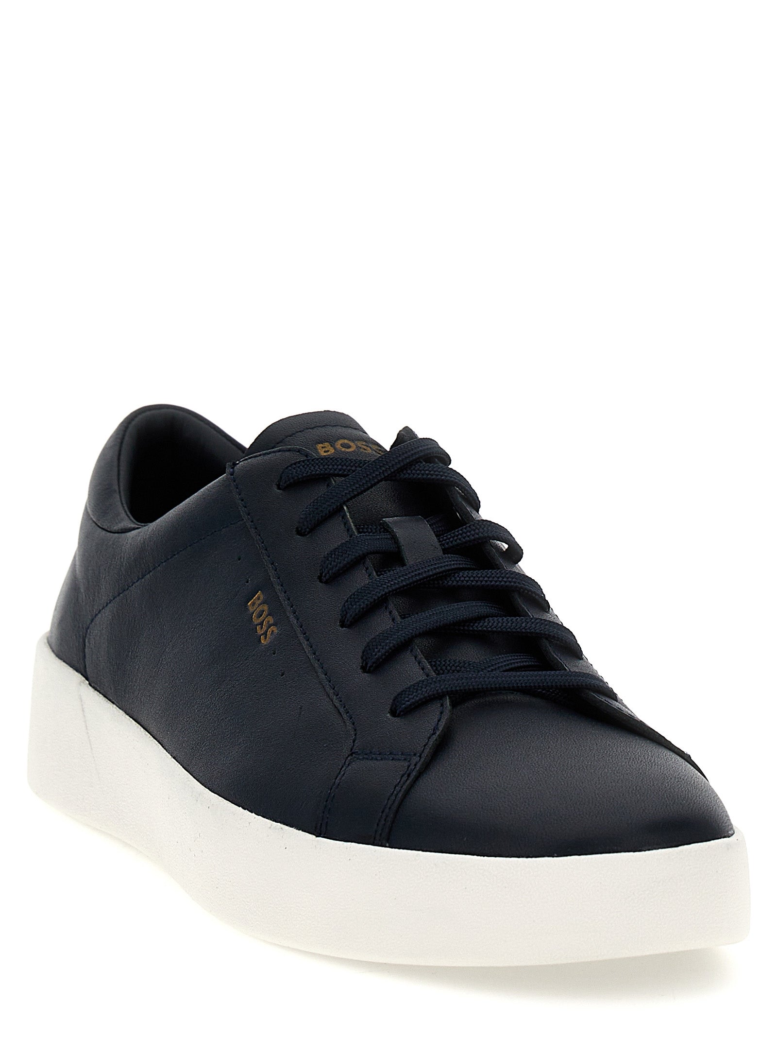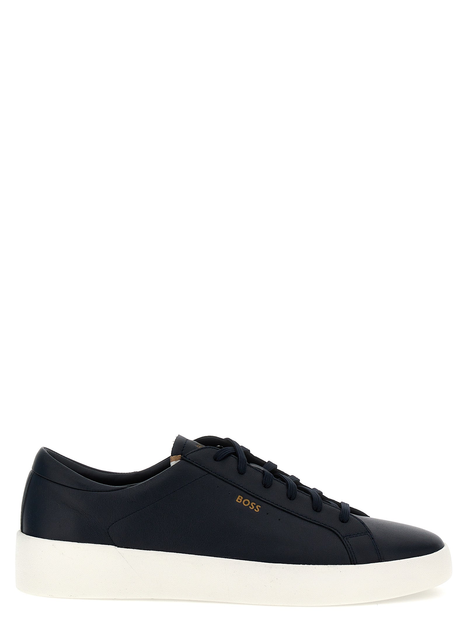 Leather sneakers, side logo print, lace-up closure, leather sole.