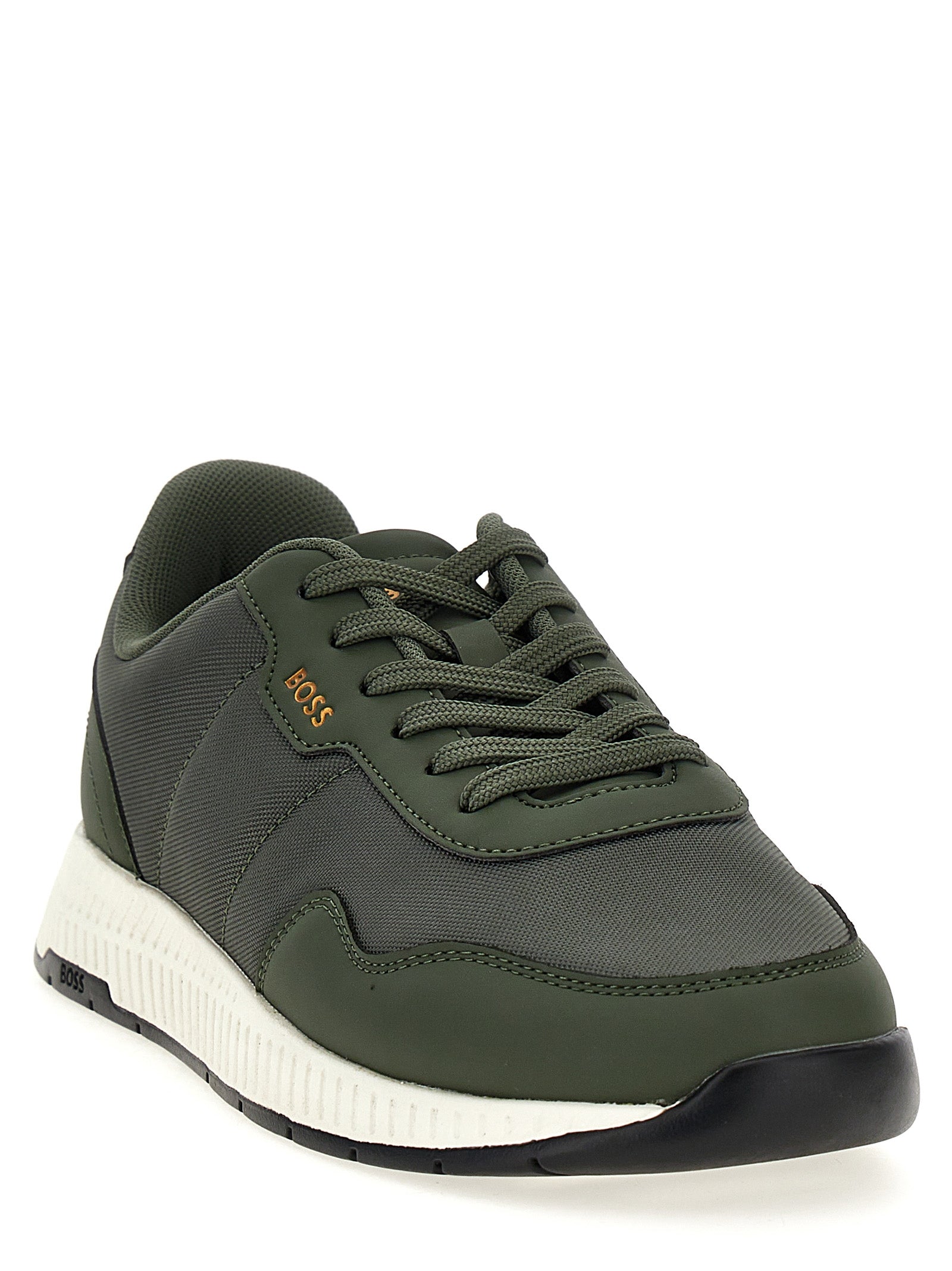 'Titanium' sneakers in fabric and leather inserts, logo print detail, lace-up closure, rubber sole