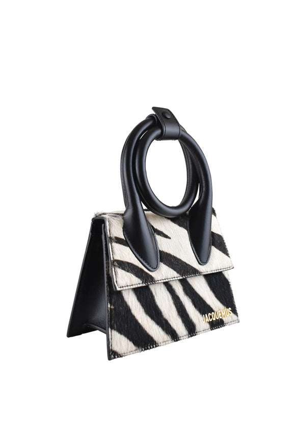 Jacquemus Le Chiquito Noeud bag in black leather and foal.