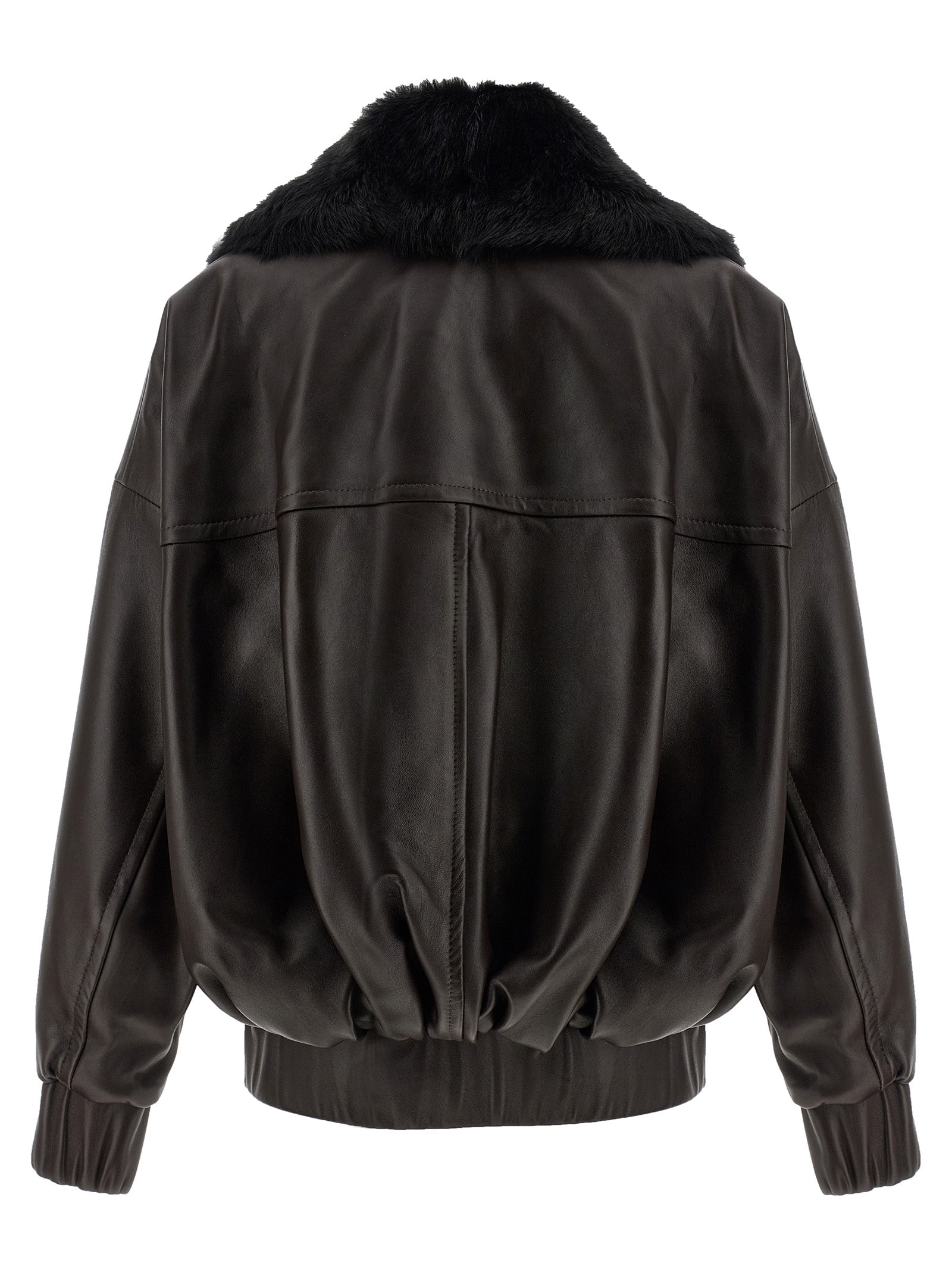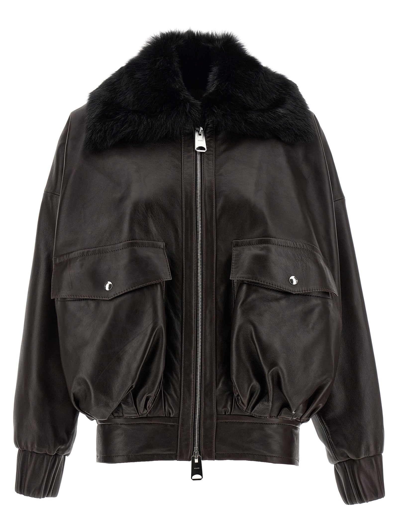 Chaqueta de piel de cordero mantecosa 'Daemon', cuello ancho de borreguito toscano, cierre de cremallera frontal, bolsillos, mangas largas y anchas con hombros caídos y puños elásticos, banda elástica en el bajo con rizos en la cintura.