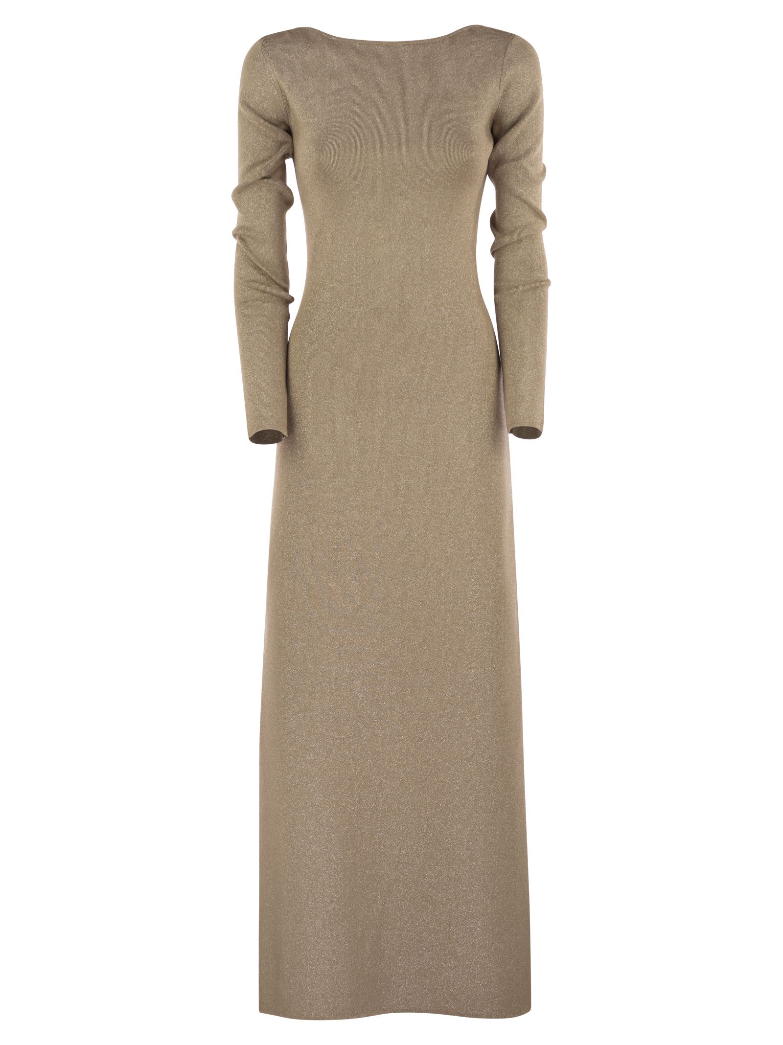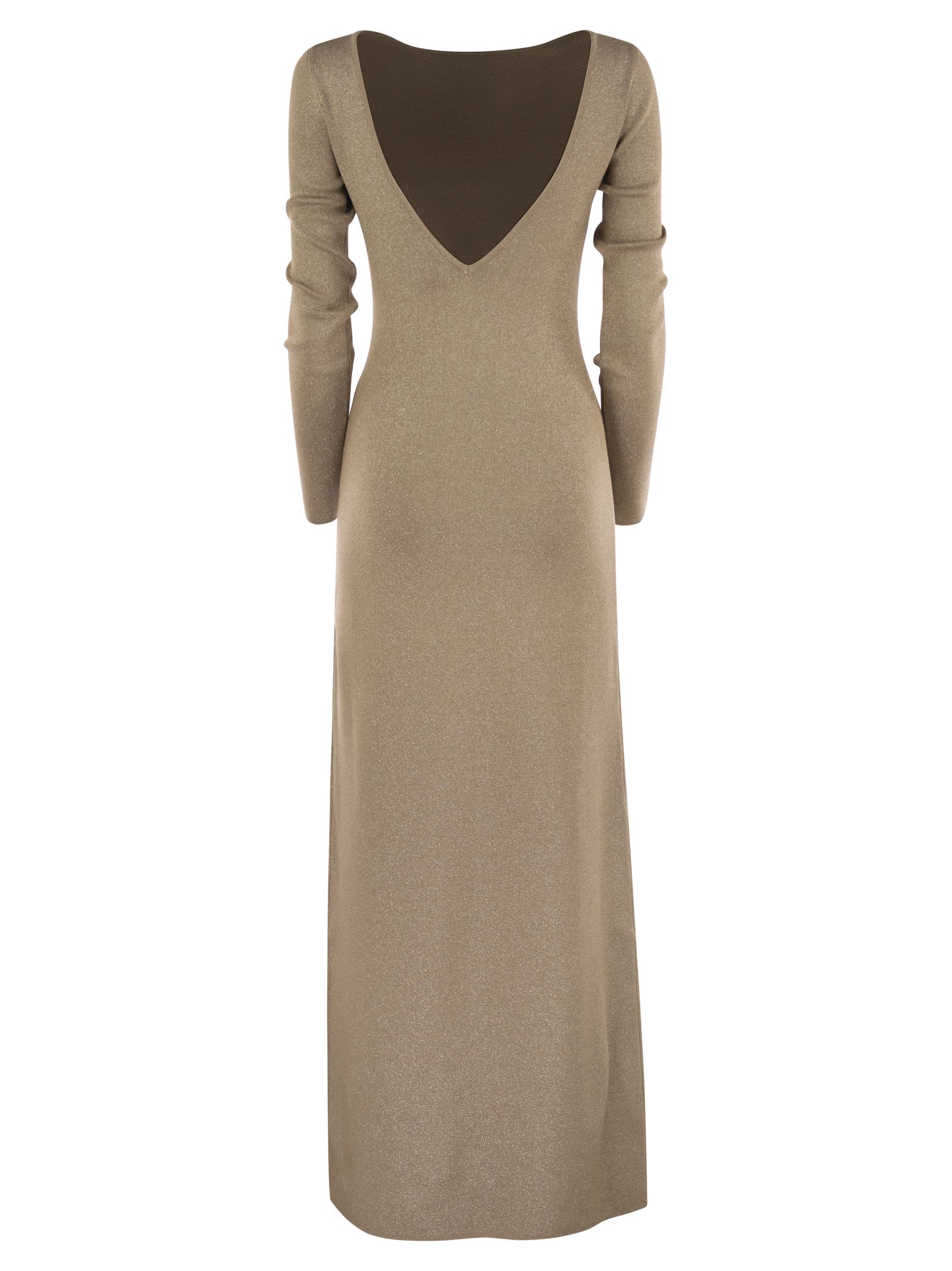 Elegante vestido largo con hilo de viscosa de punto liso y Lurex con una silueta femenina ajustada. - Trabajó en Vanisè con Lycra® - cuello en V profundo en la parte posterior - mangas largas y redondas - ID de diseñador sin frase: 2521326027600 001
