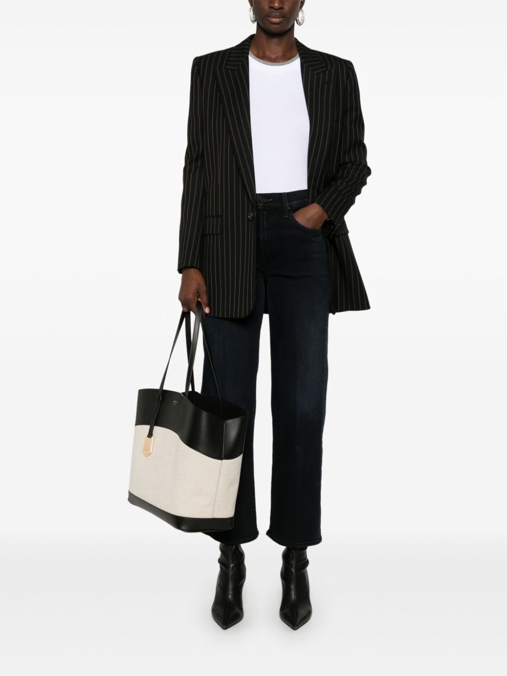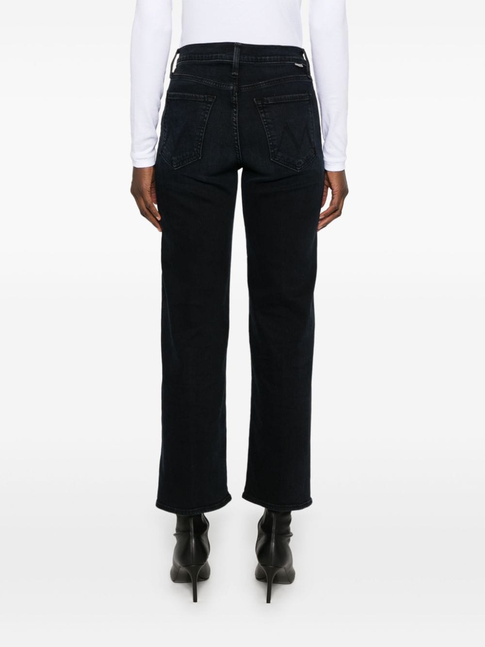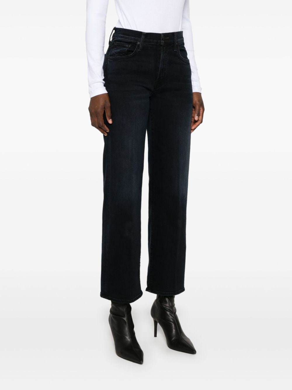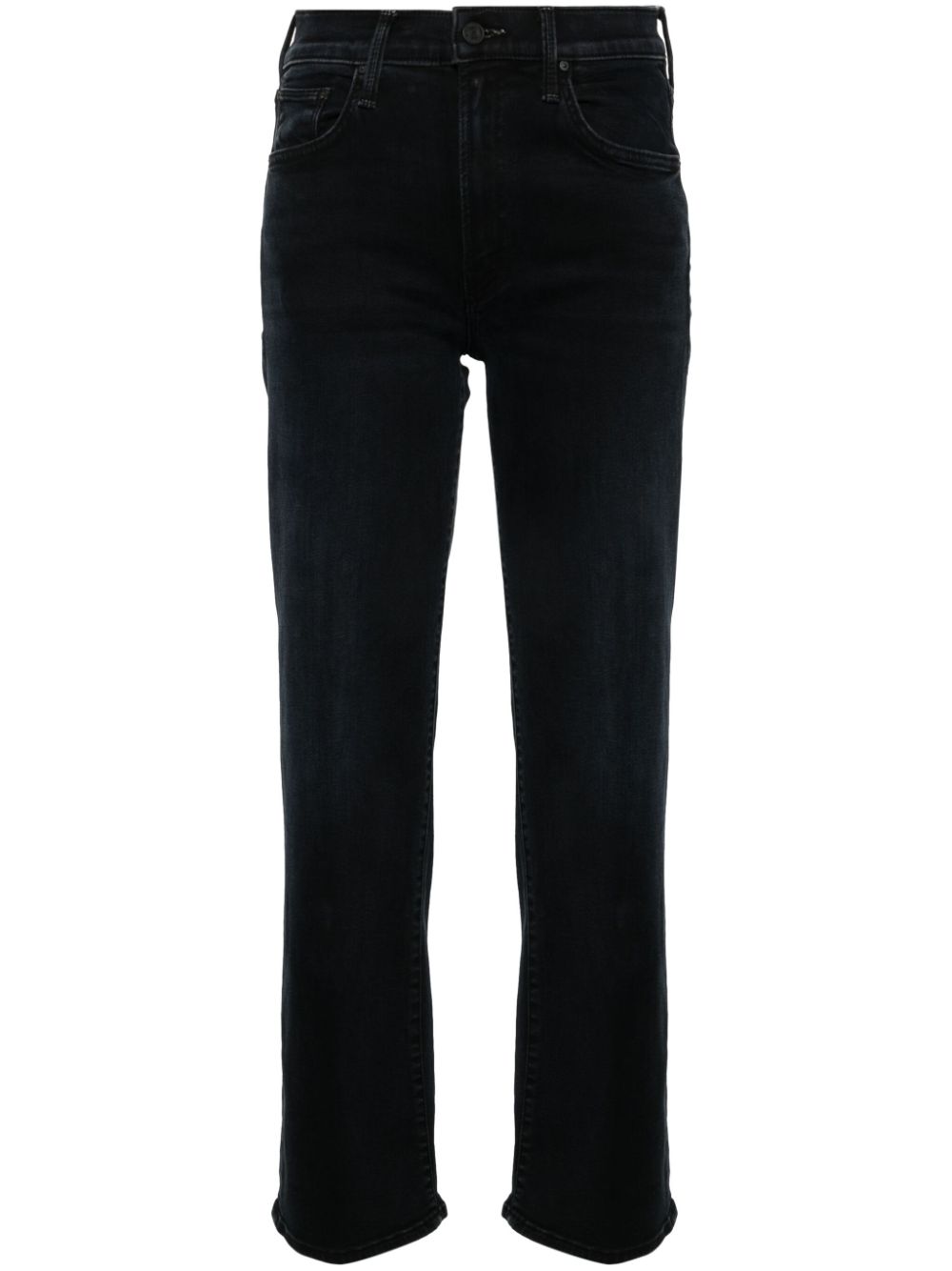 midnight blue cotton blend denim mid-rise belt loops classic five pockets mini logo tag straight leg cropped concealed fly and button fastening