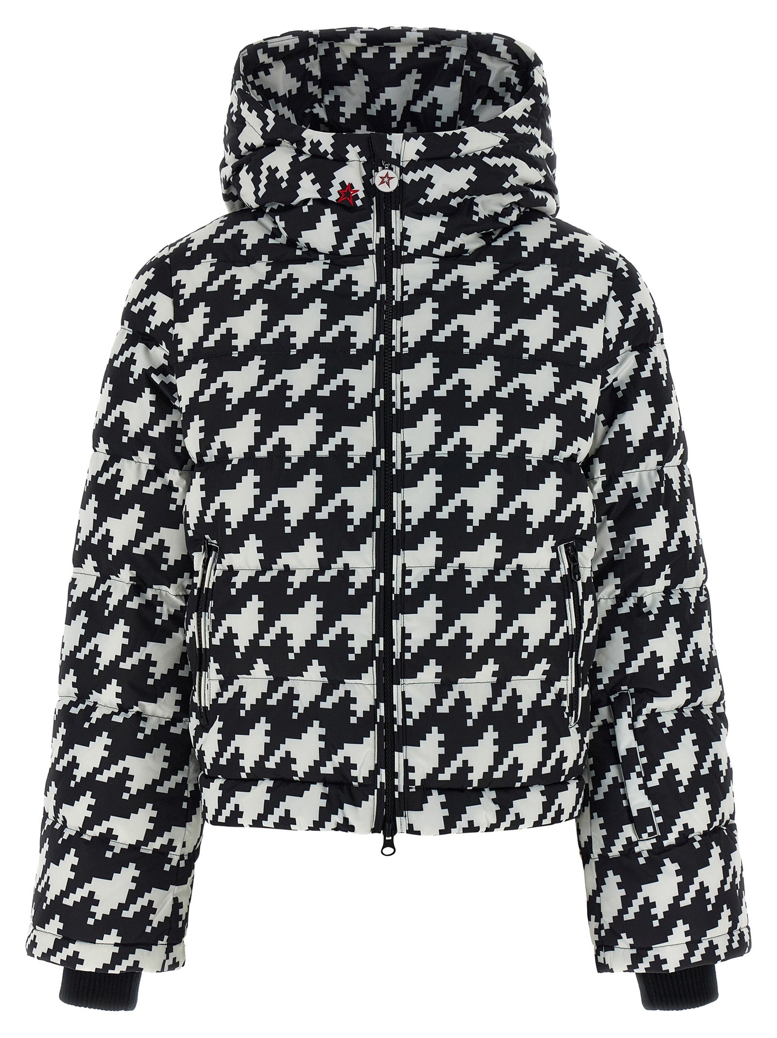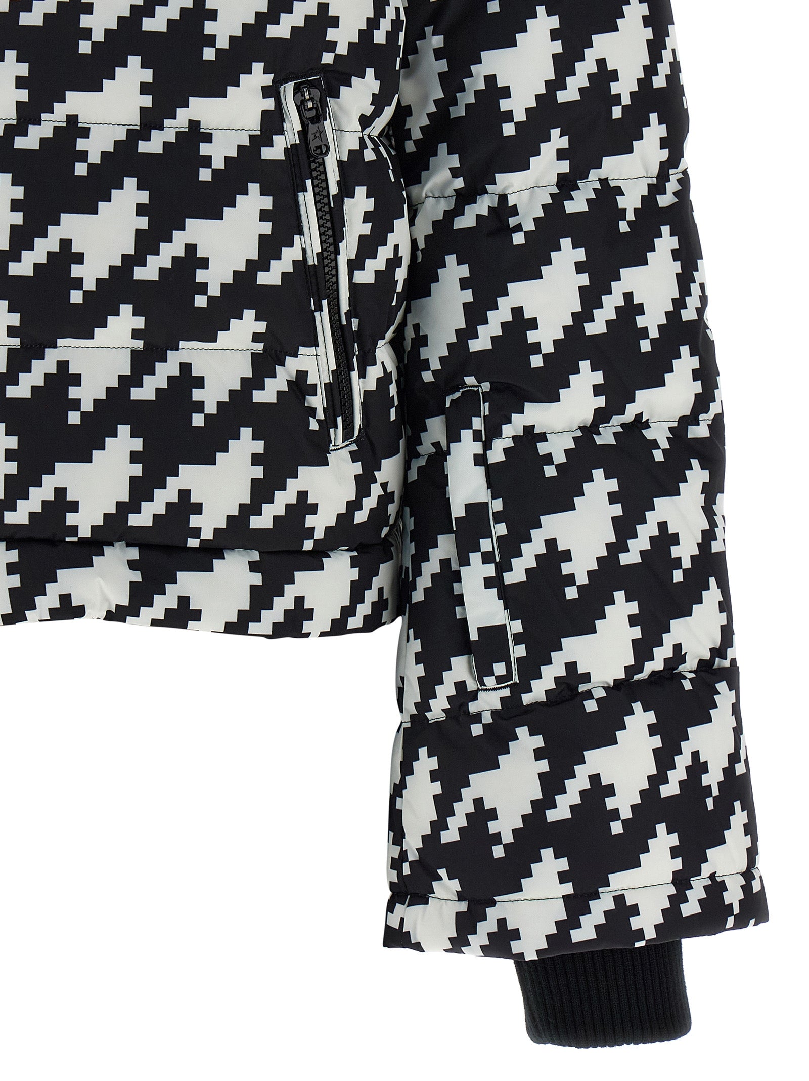 Chaqueta de esquí 'Polar Flare' en tejido impermeable y aislante de alto rendimiento con power down de 700 fill con maxi estampado de pata de gallo, silueta ligeramente recortada, capucha compatible con casco, cuello alto, cierre frontal con cremallera, bolsillos, mangas largas con puños de punto elástico acanalado, elástico trasero y polaina interior en el bajo. Modelo equipado con tecnología RECCO®.