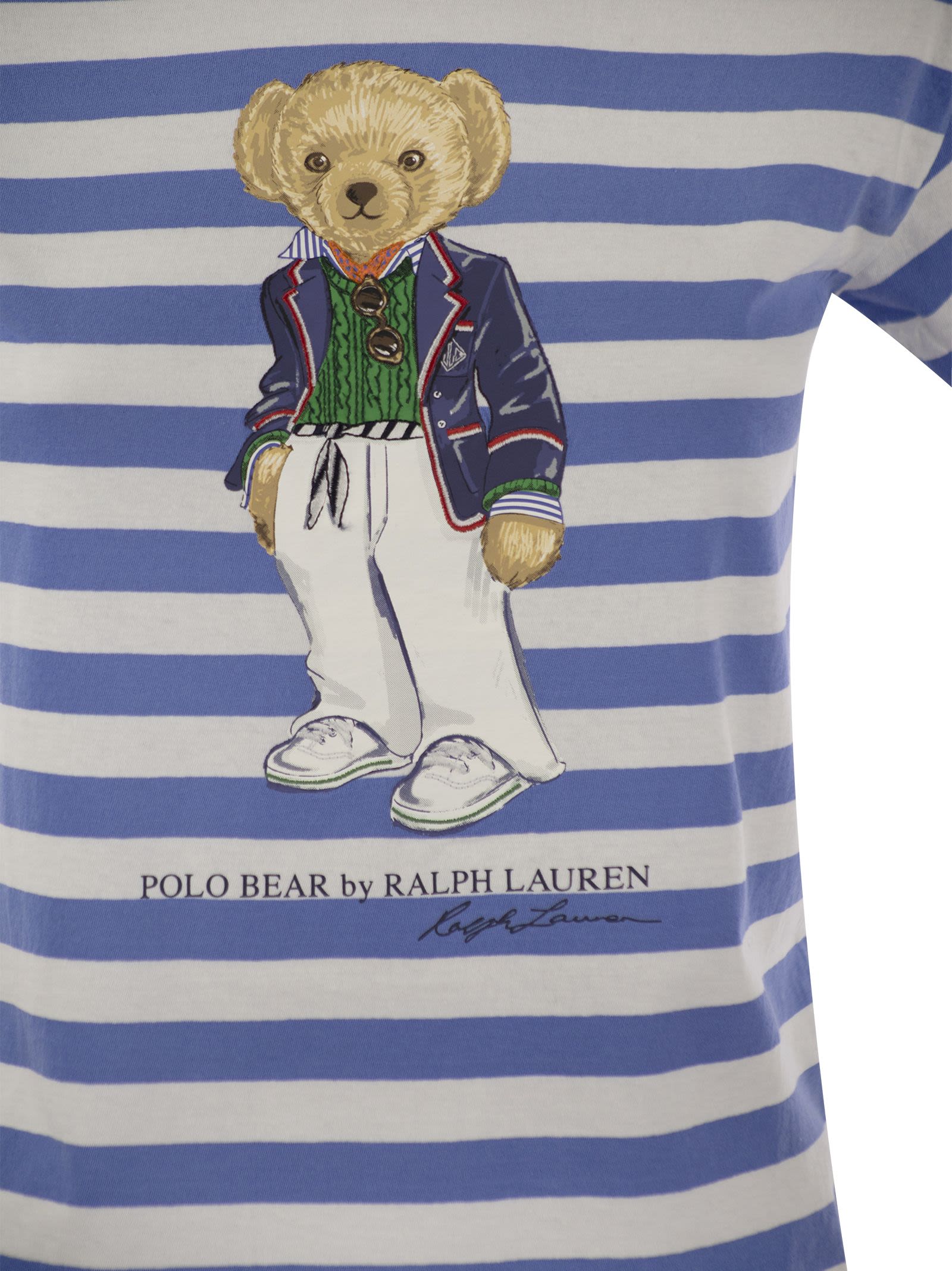 Hecho de camiseta de algodón, esta camiseta con cuello de tripulación a rayas presenta una versión impresa y bordada del icónico Polo Bear en un equipo exclusivo de inspiración de Ralph Lauren. - Corte suave - Longitud en las caderas - Cuello de la tripulación - Mangas cortas - Oso de polo, 'Oso de polo de Ralph Lauren' y 'Ralph Lauren' Signature impreso en el diseñador delantero central ID: 211924300 001
