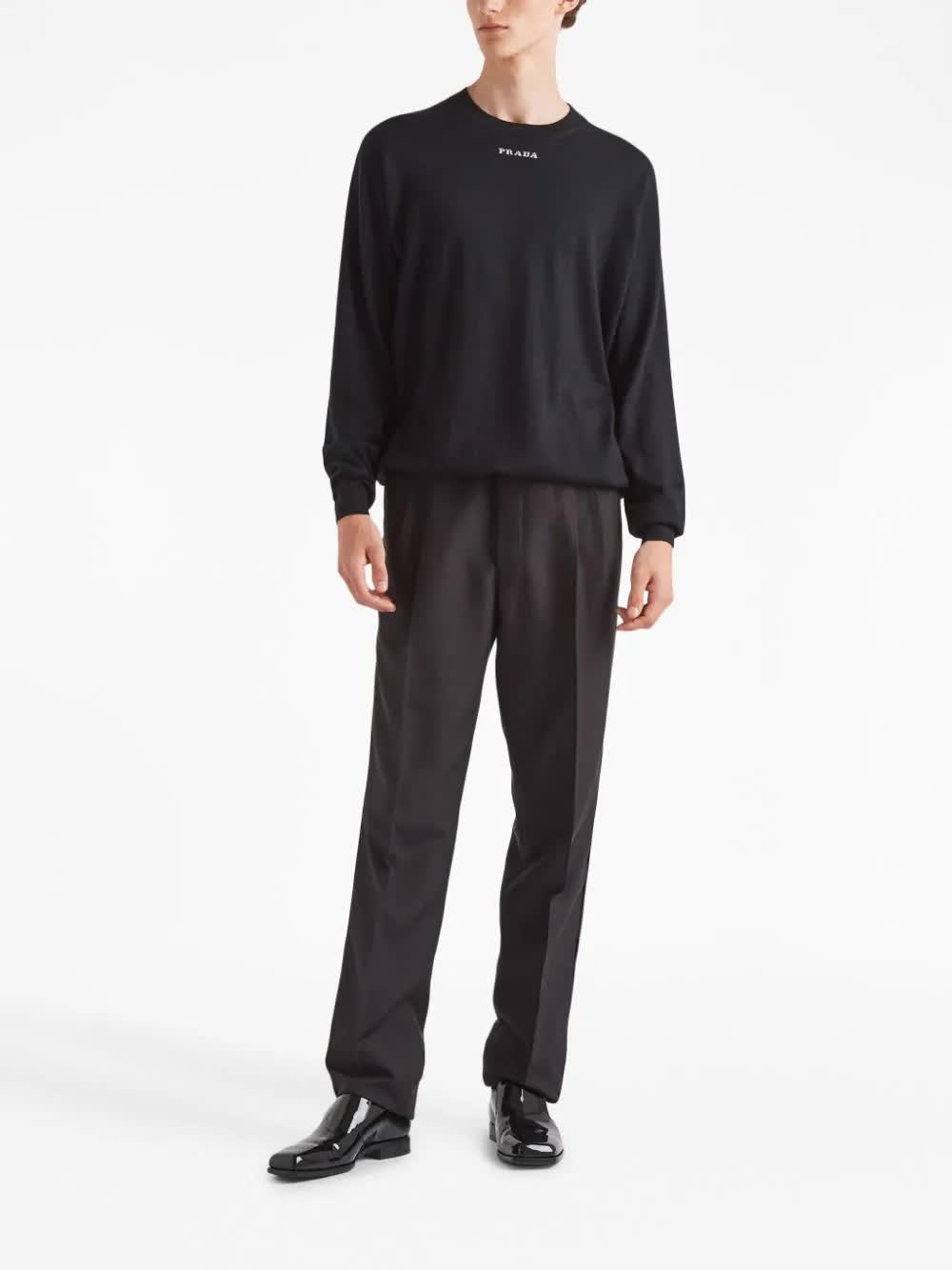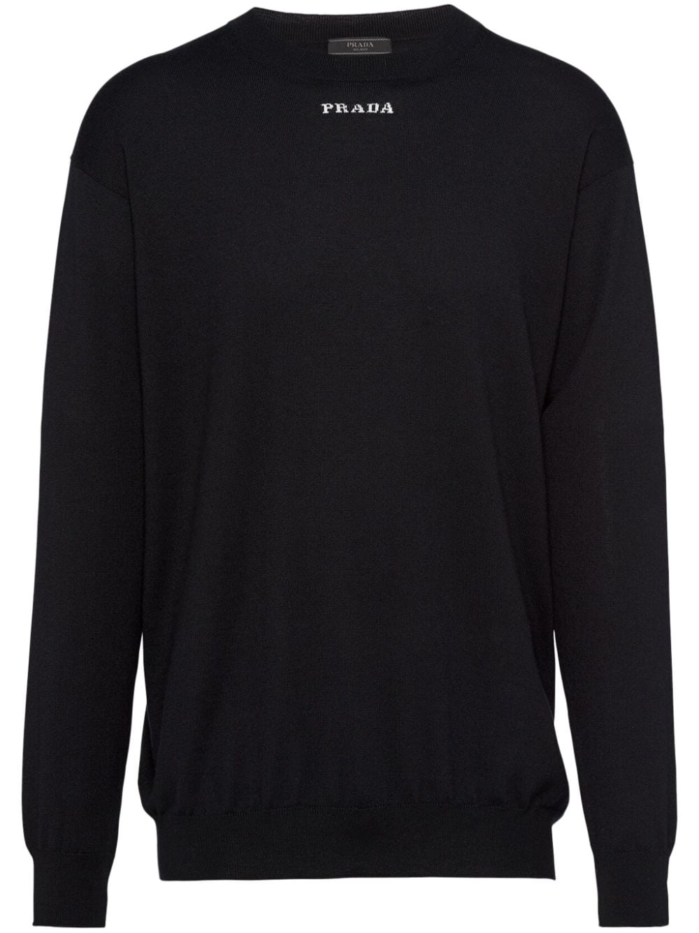 Prada presenta esta camiseta redonda del cuello hecho de cachemira con el logotipo de Jacquard.