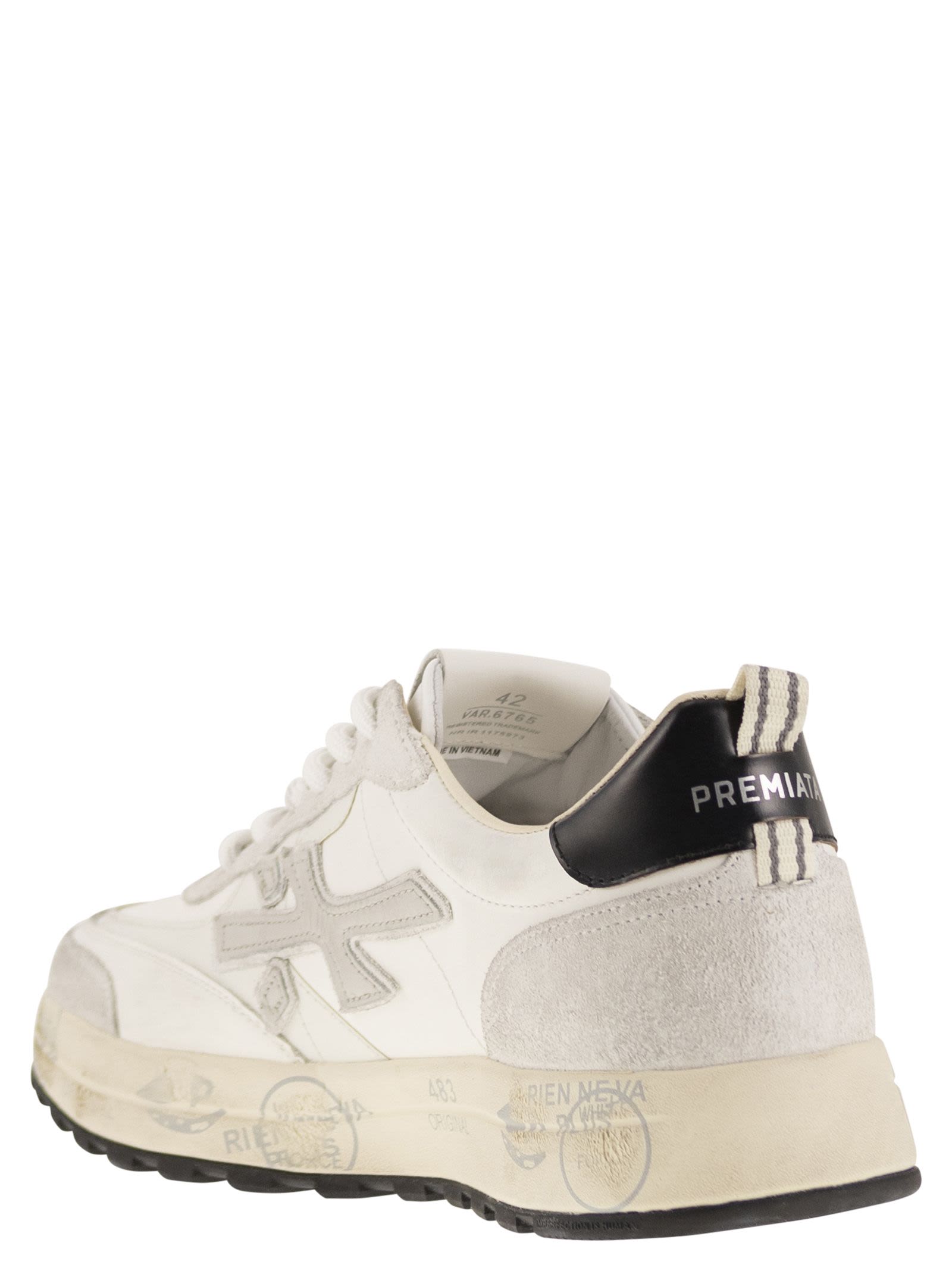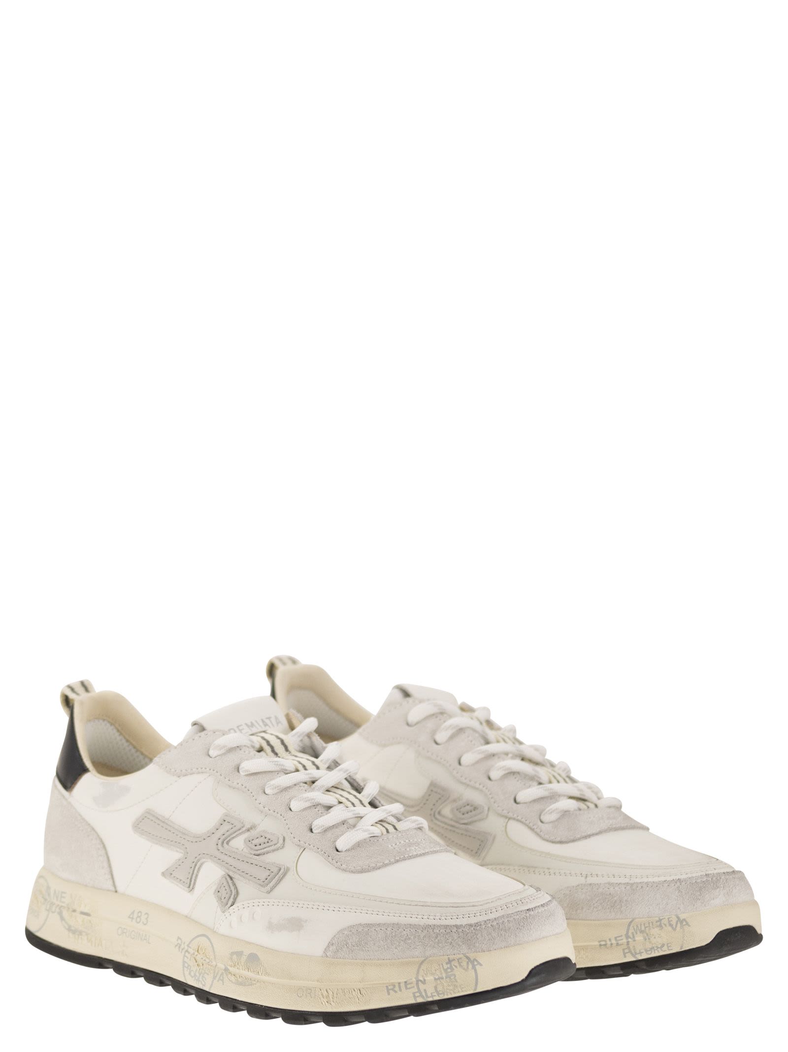 Desde el estado de investigación, refinamiento e innovación perenne de Premiata viene el nuevo Nous definido en un modelo ordenado, efectivo e increíblemente realizado con un estilo esencial y tenaz. - Cierre de cordón - Logotipo en la identificación del diseñador del talón: Nous 6765