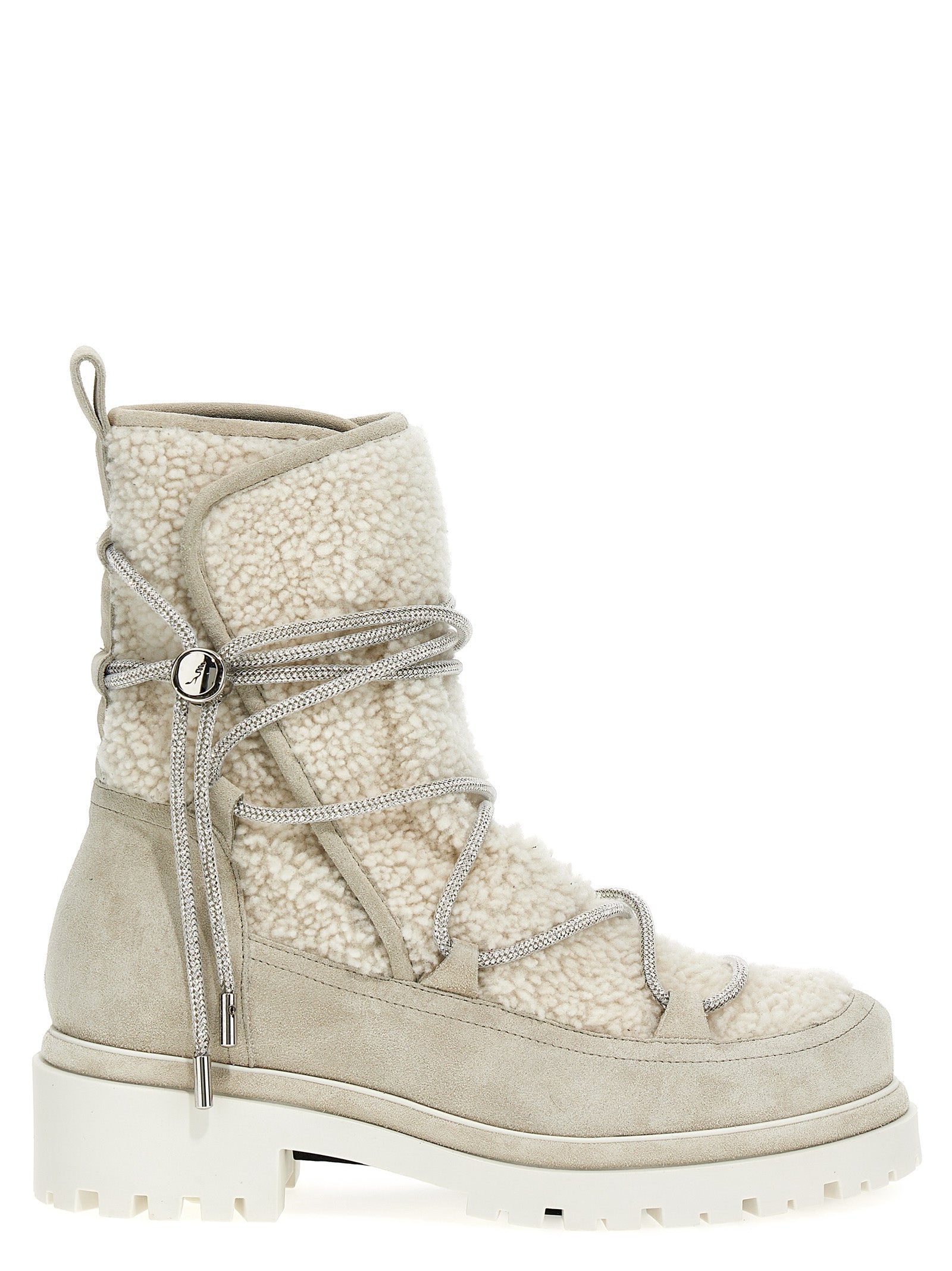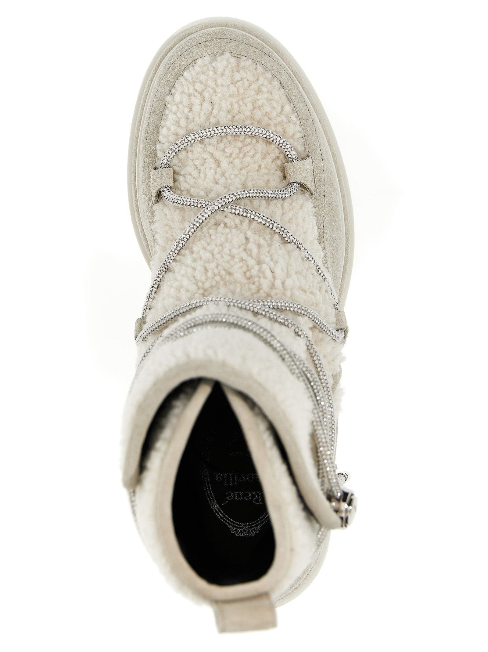 Botas de tobillo de gamuza y oveja con cordones de joyas y una suela de goma.