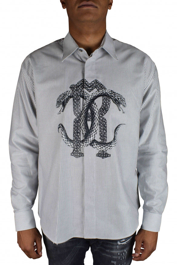 Roberto Cavalli Camisa de rayas azules y blancas.