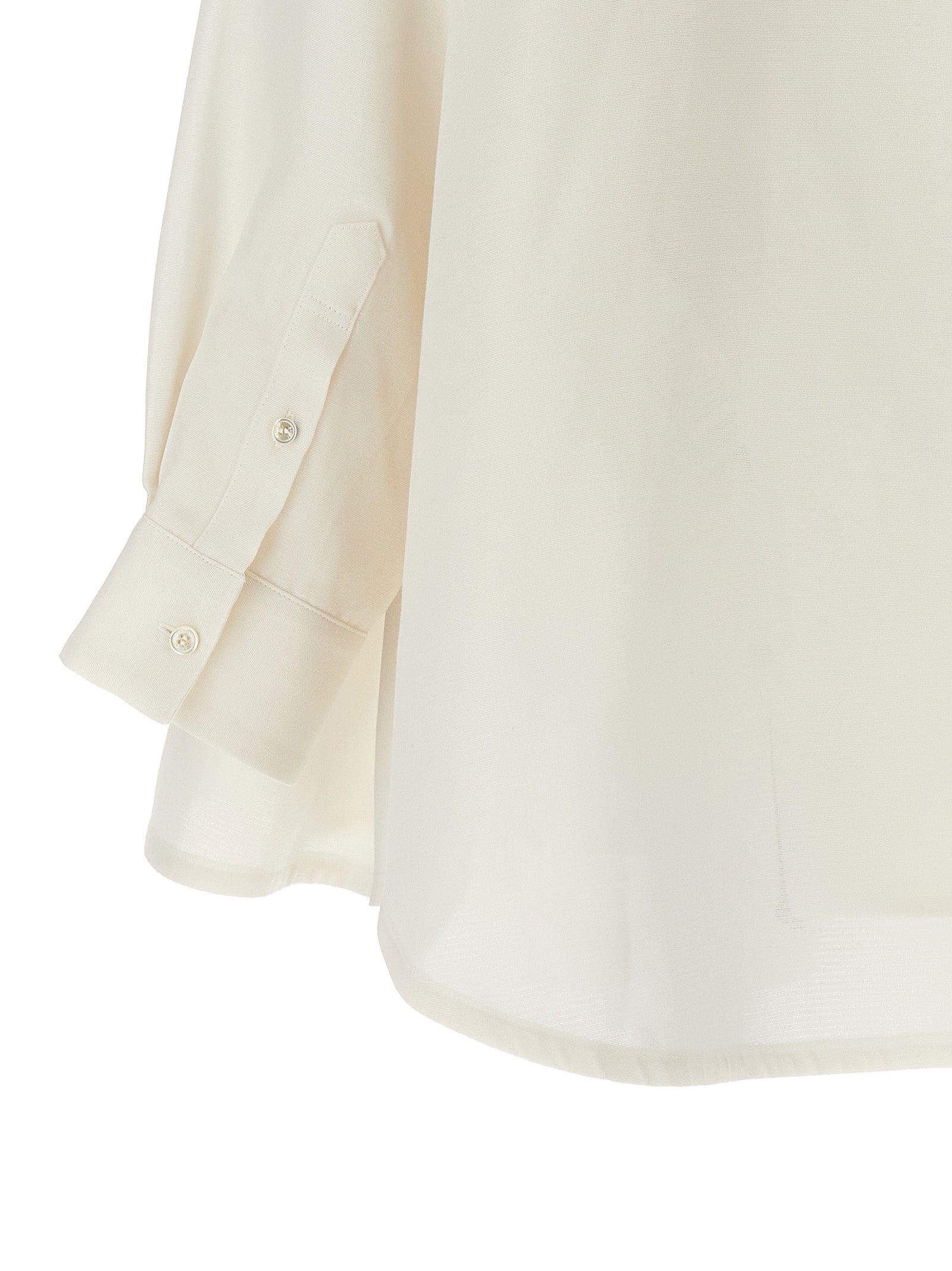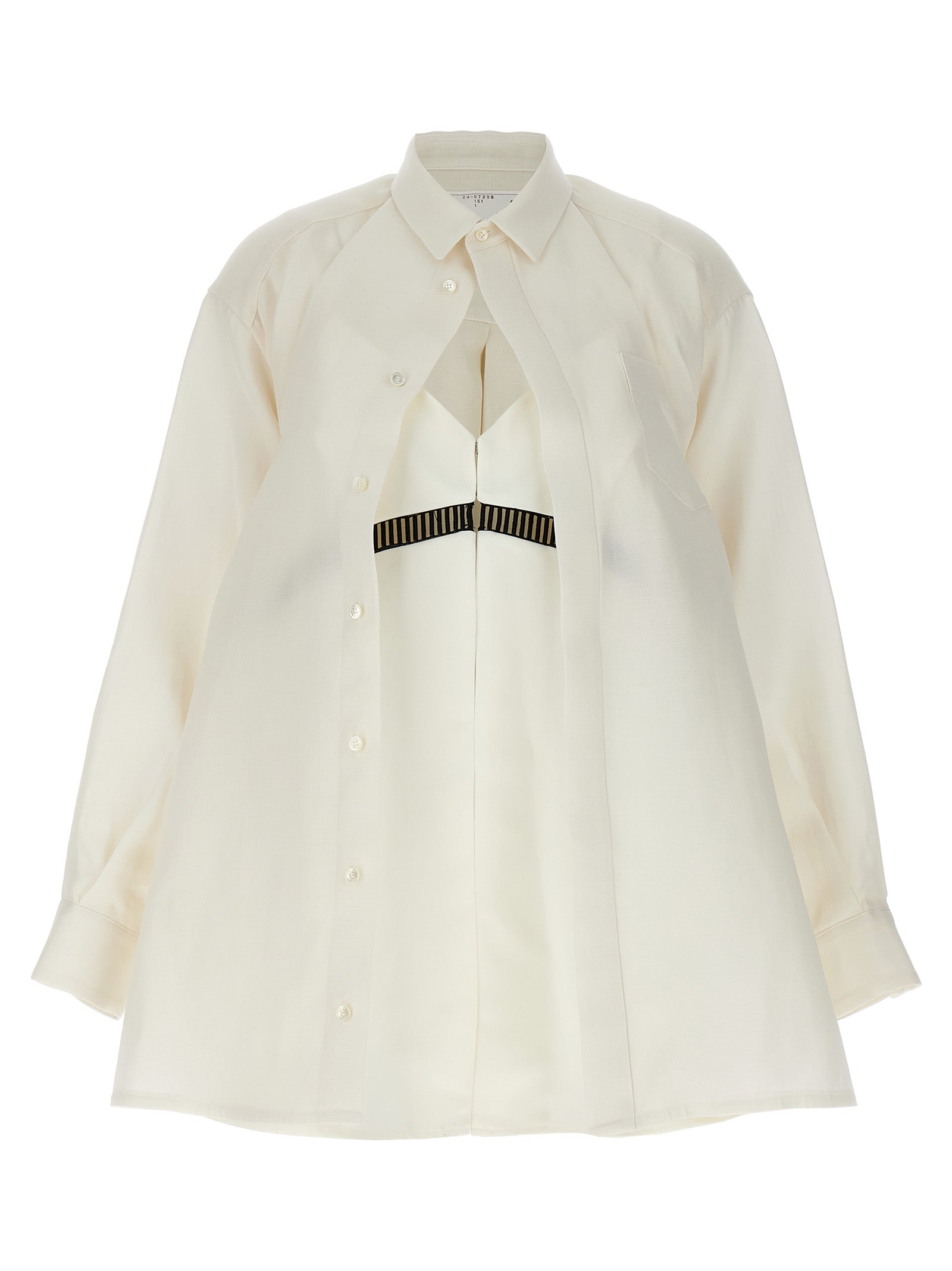 Vestido de seda con bordado de contraste, cierre del gancho delantero, detalle de la camisa superpuesta con cierre de botones, mangas largas con espinillas.