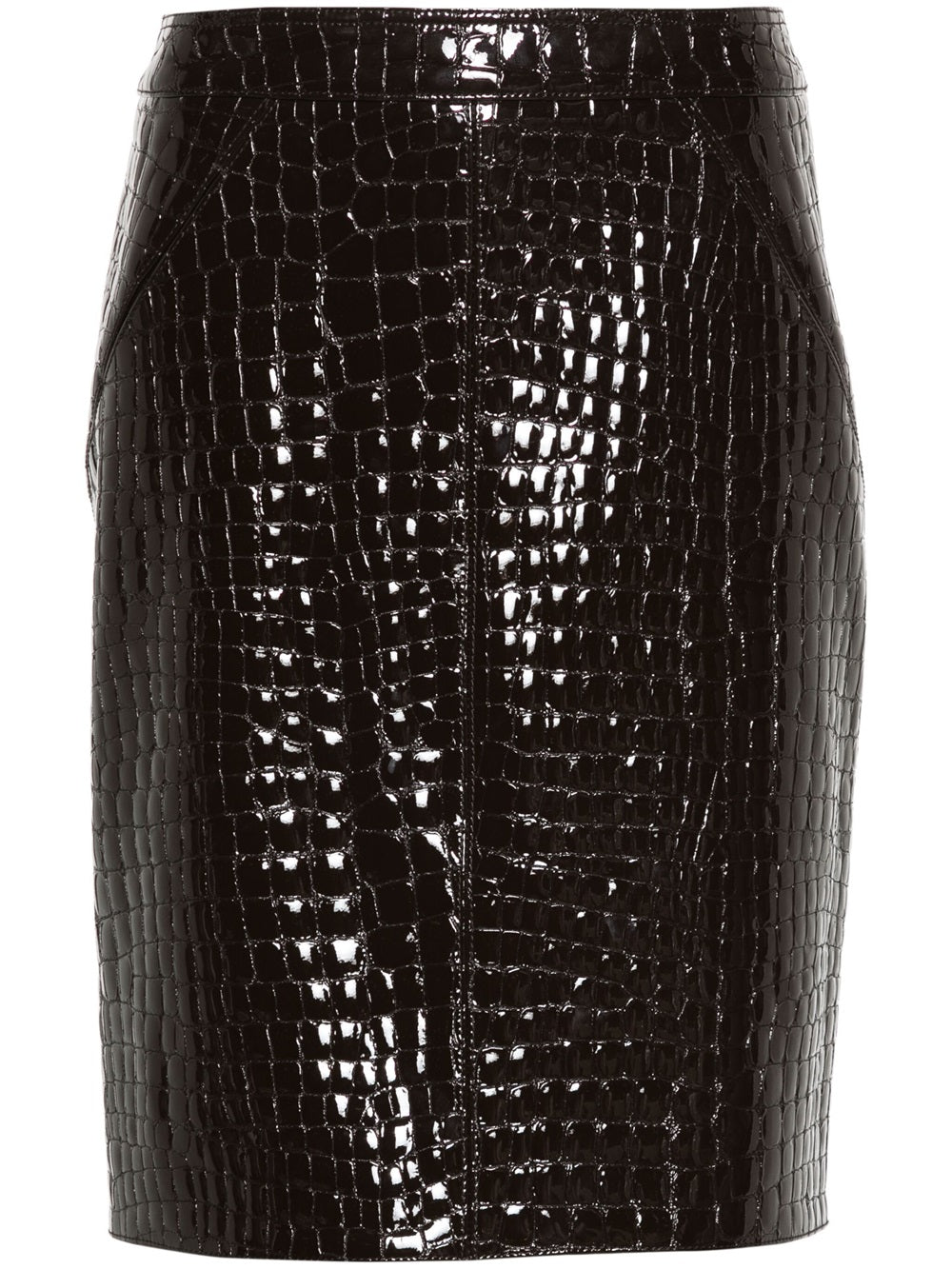 crocodile effect embossed chocolate lambskin shiny details fold on the back full lining rear zip closure