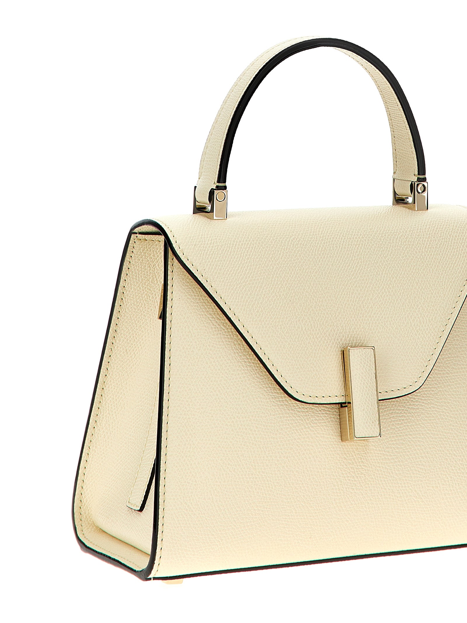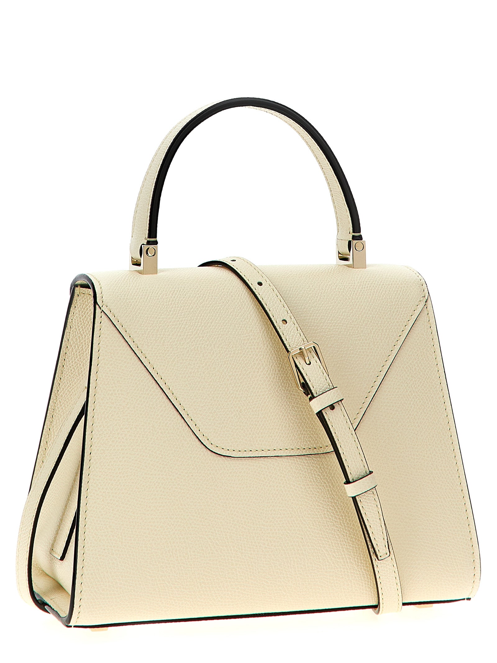 Small 'Iside' handbag in Millepunte calf leather, Costa Valextra piping, fixed handle, flap turn-up closure, metal details, adjustable and removable shoulder strap.