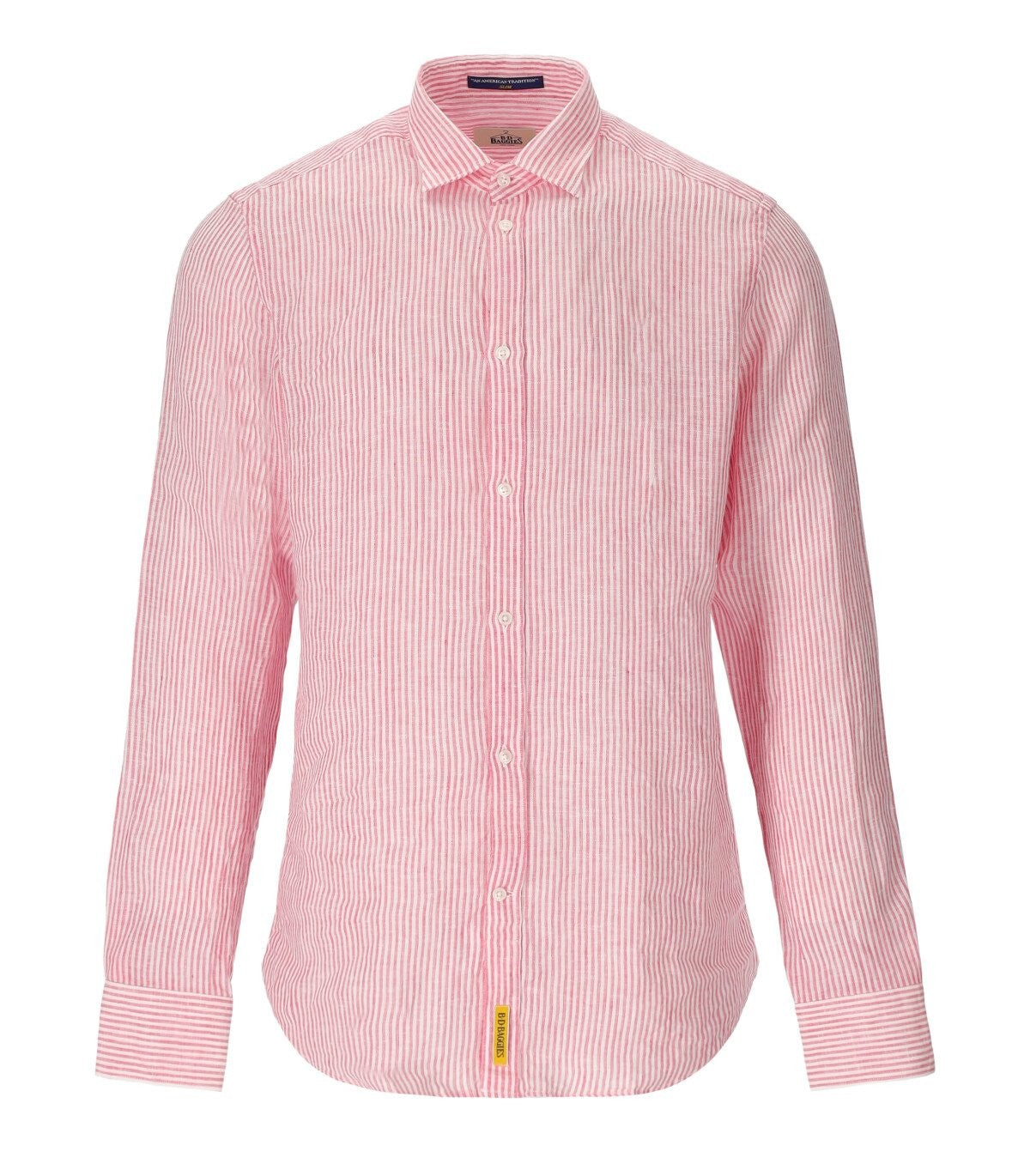 Baggies B-D Camisa hecha de lino con un patrón de rayas verticales en tonos de rojo y blanco. Insertar logotipo en el cordón, ajuste de comodidad. Composición: 100% de lino.
