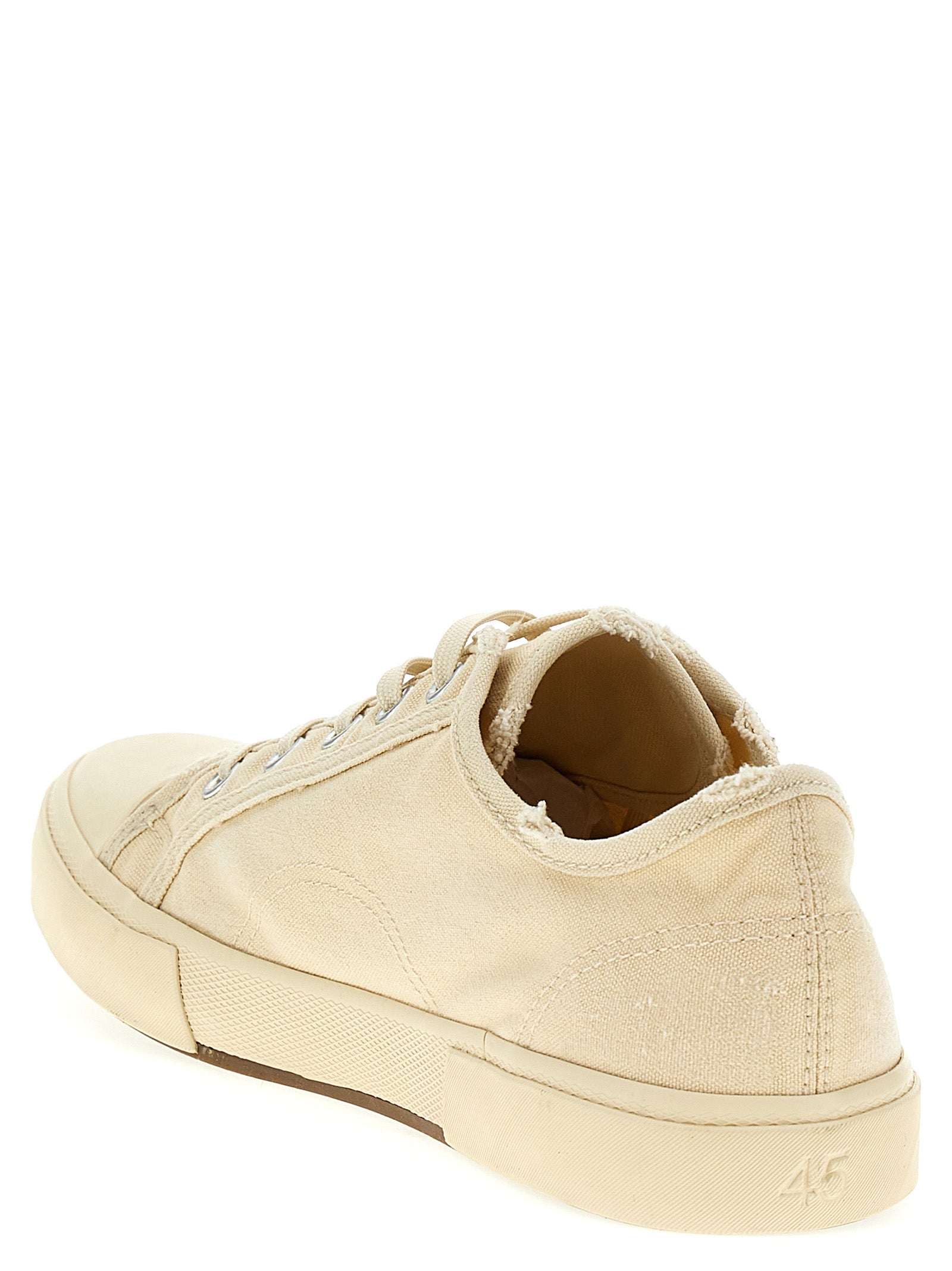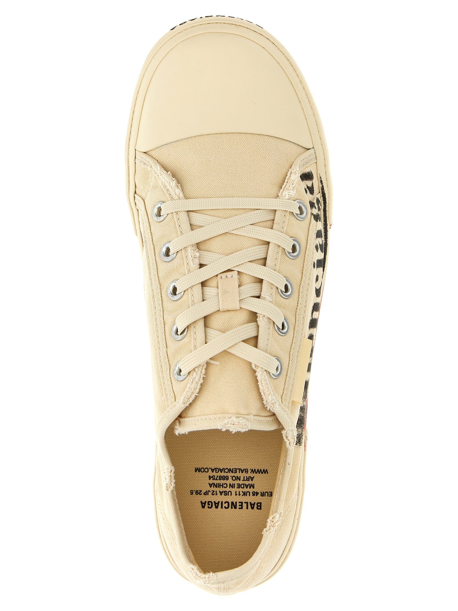 Las zapatillas de lienzo de 'París' con detalles angustiados, impresión del logotipo lateral, cierre de cordones, suela de goma y tapa de punta.
