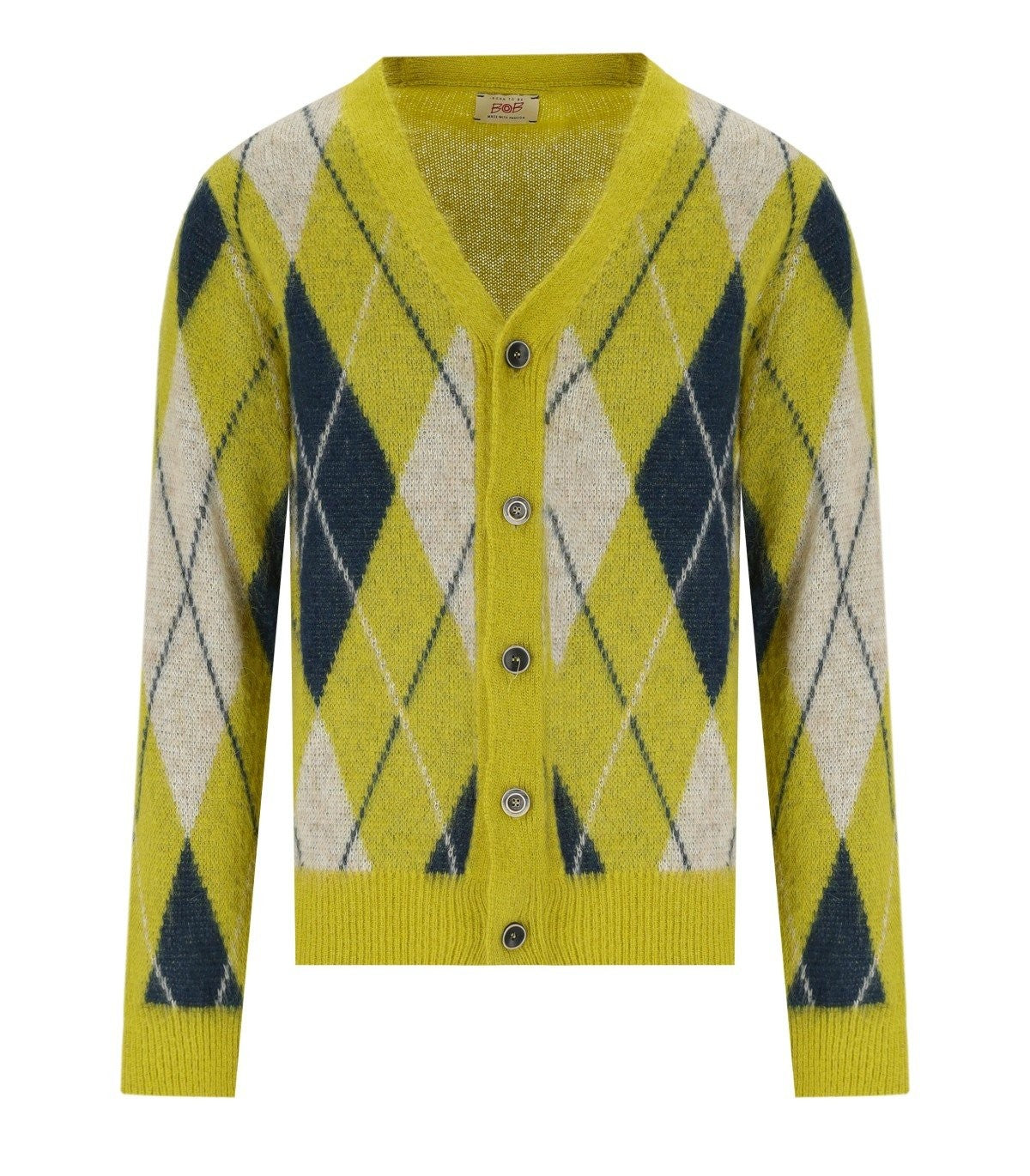 Taylor Cardigan de Bob hecho de tela de mohair, en un patrón de diamantes multicolor, en tonos de ácido verde, beige y azul. Caracterizado por mangas largas con puños acanalados, presenta un escote en forma de lanza y un cierre del botón delantero. Borde frontal acanalado y collar. Fit delgado. Este artículo tiene un pequeño ajuste, recomendamos comprar una talla más grande de lo habitual. Composición: 30% de mohair, 40% acrílico, 30% de poliamida.
