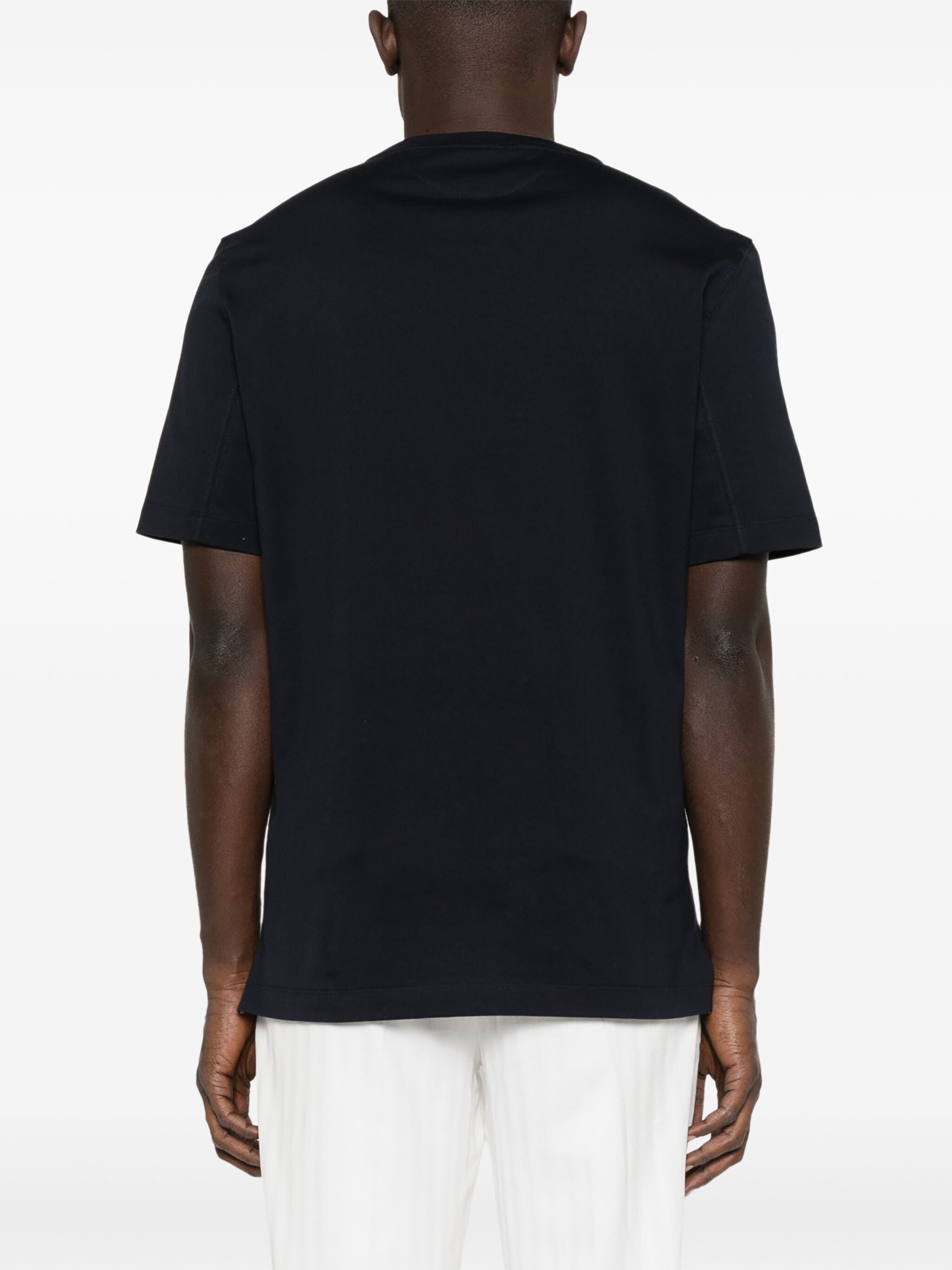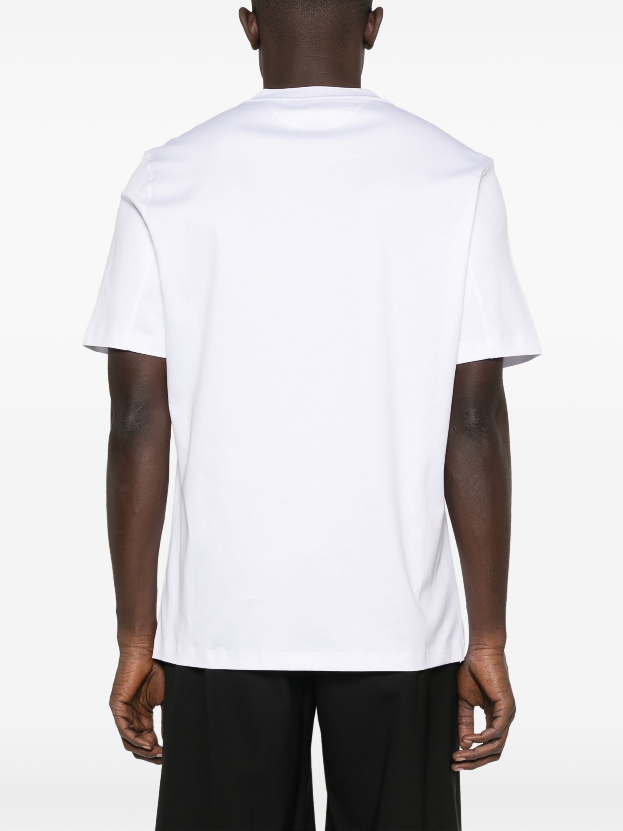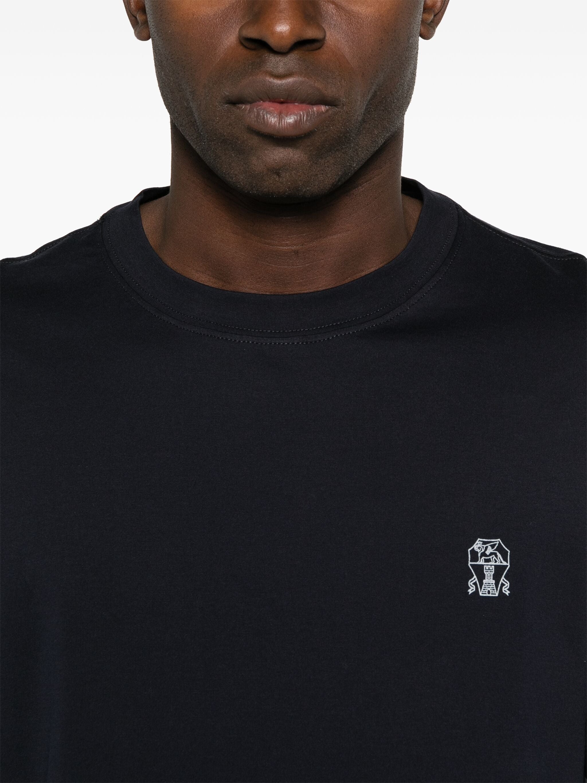 La T-shirt girocollo in jersey di cotone di Brunello Cucinelli unisce comfort e stile casual. Il morbido cotone esalta le tonalità di stagione, mentre il logo stampato sul petto aggiunge un tocco distintivo. La vestibilità basica con polsini e fondo ribattuti completa un look versatile ed elegante.