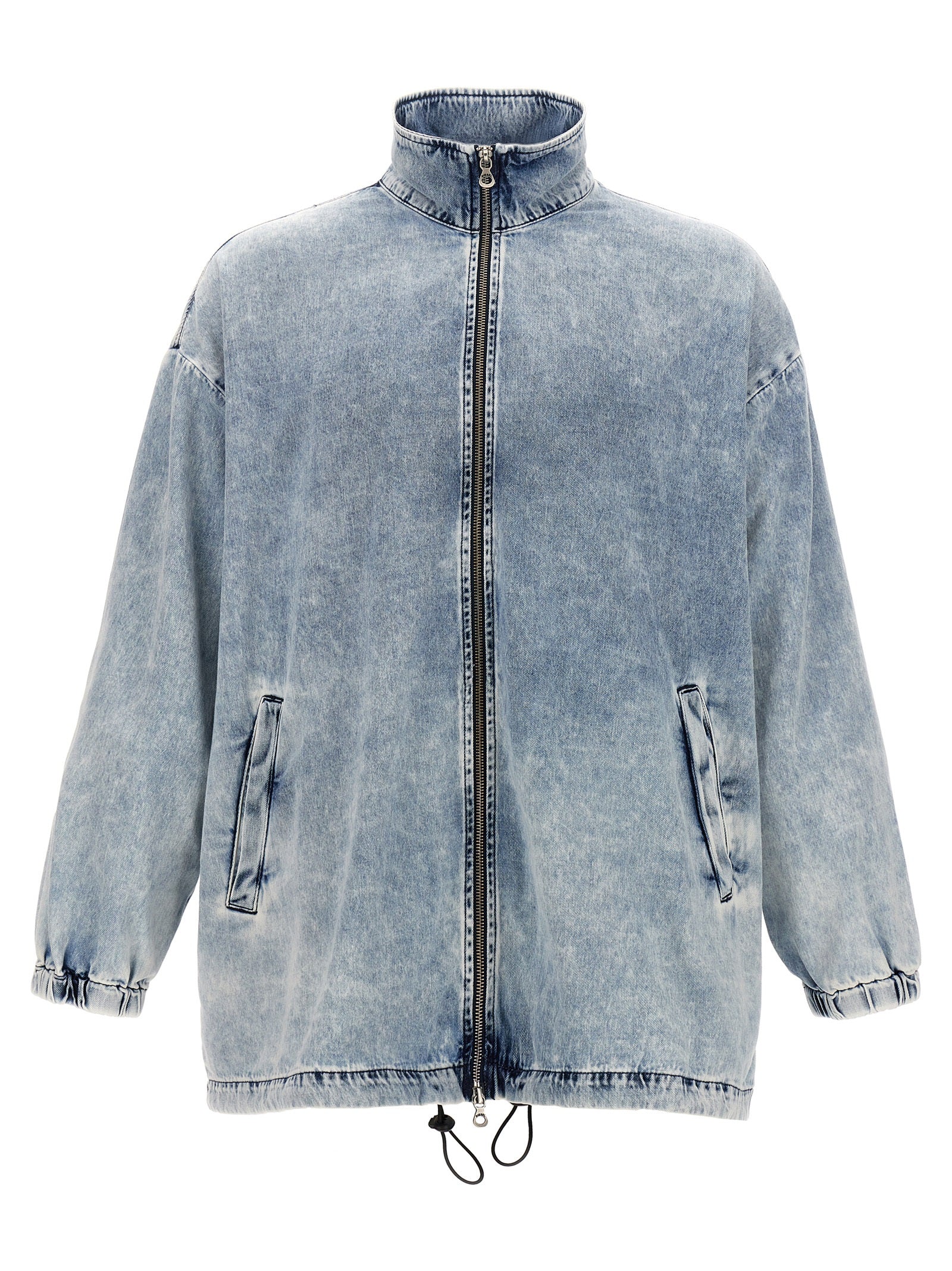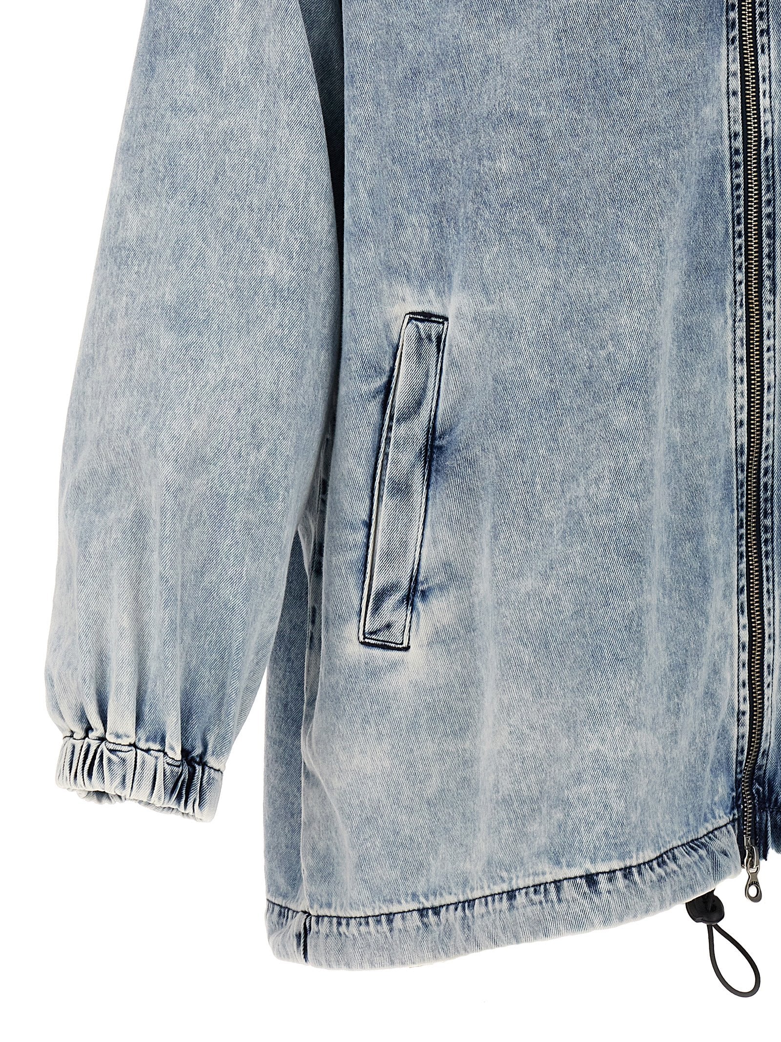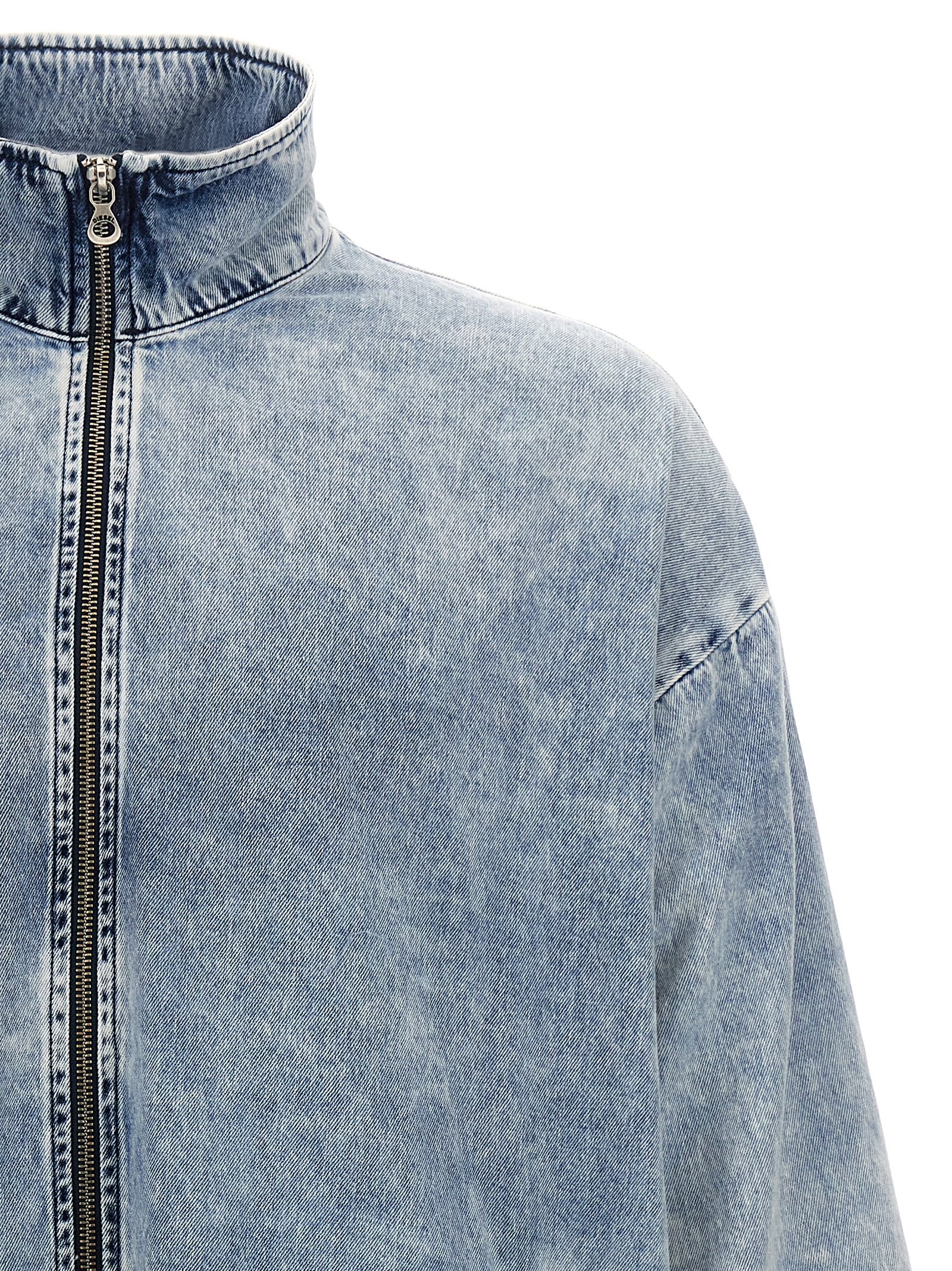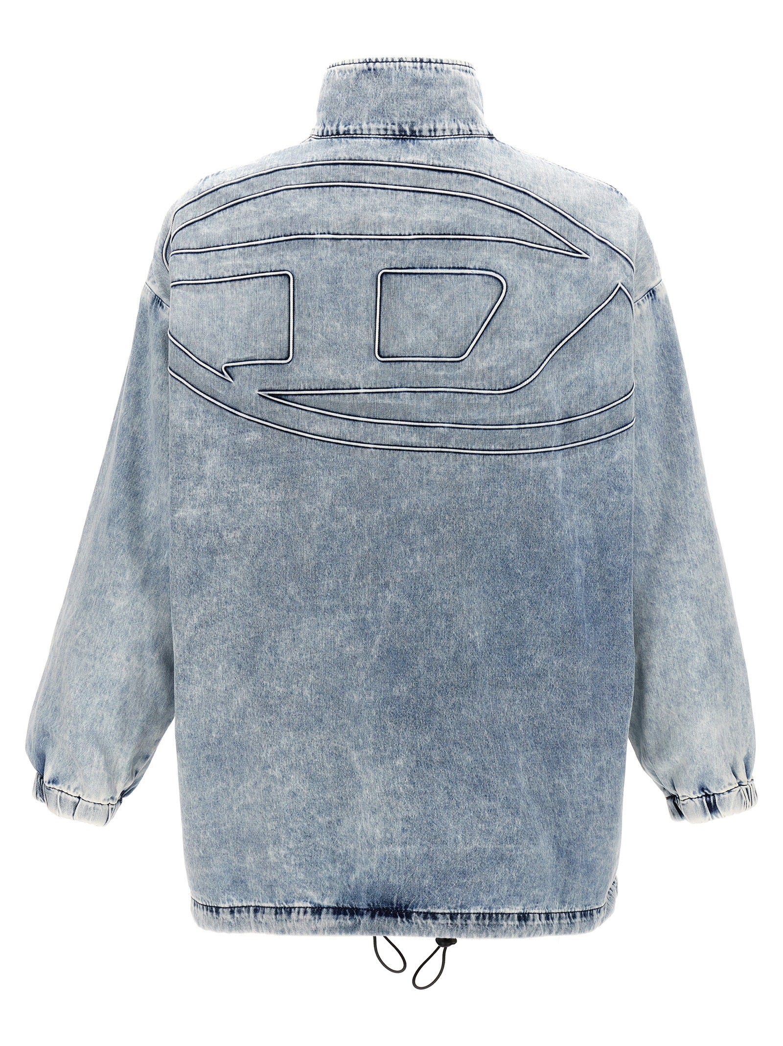 Chaqueta de mezclilla de algodón 'D-Krap-S1' con logotipo trasero, cierre de cremallera, bolsillos, mangas largas con puños elásticos, cordero ajustable en el dobladillo.