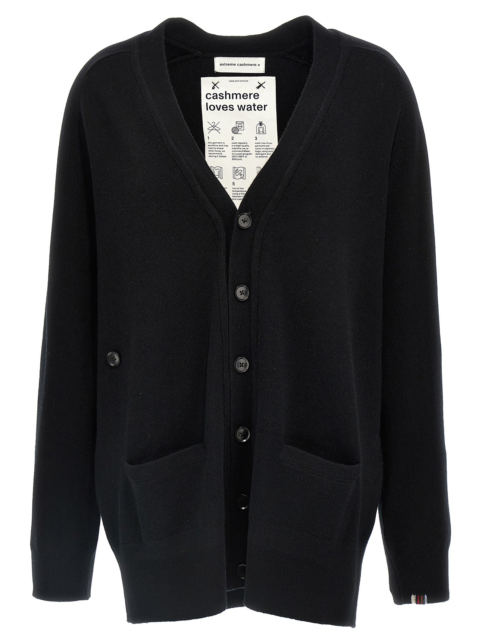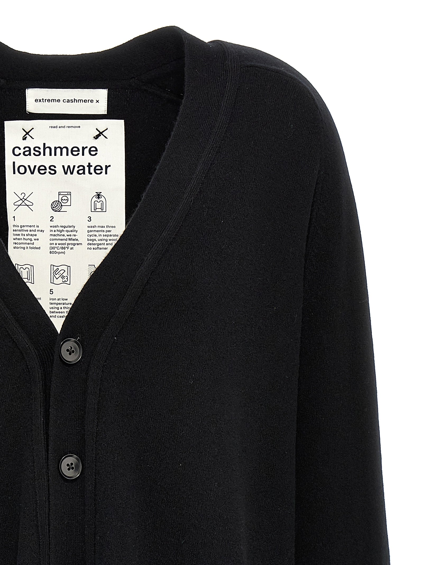 'N.117 Cardigan Raven' Cardigan de mezcla de cachemir, cuello en V, cierre del botón delantero más un cierre de botón lateral para cambiar el ajuste, los bolsillos, las mangas largas con espinillas.