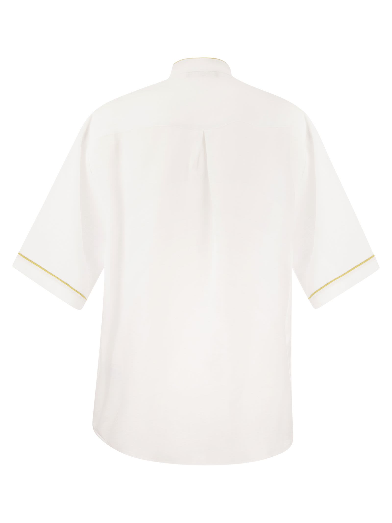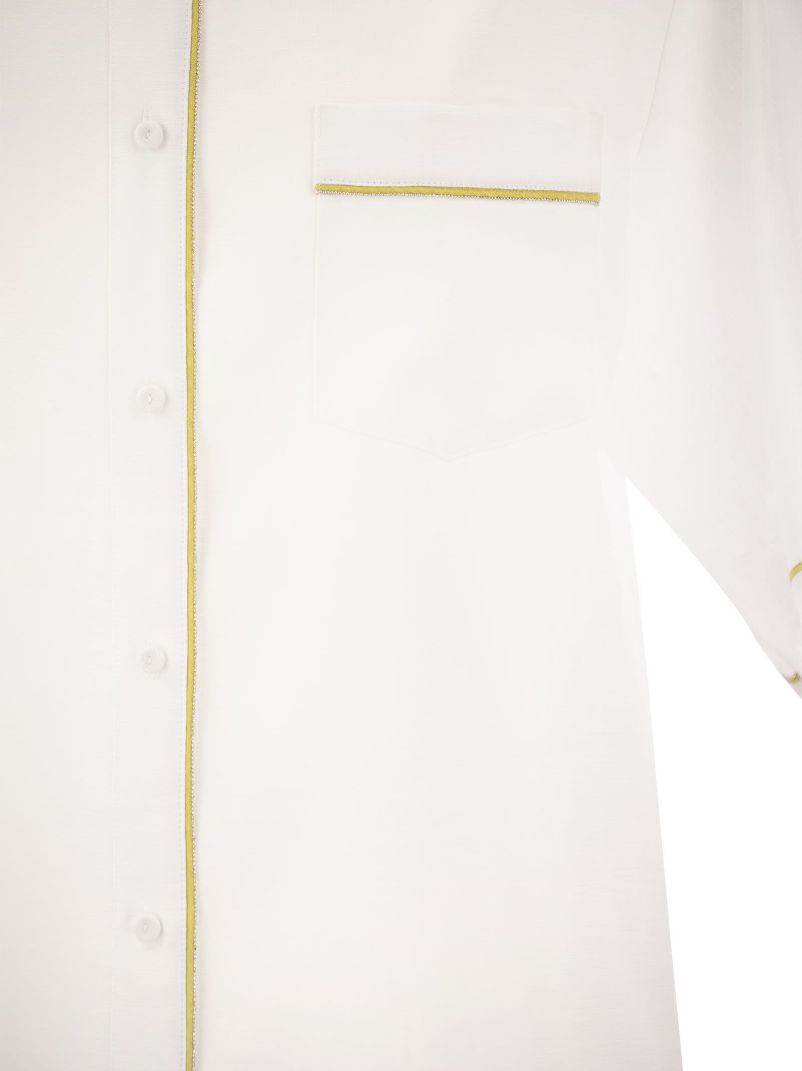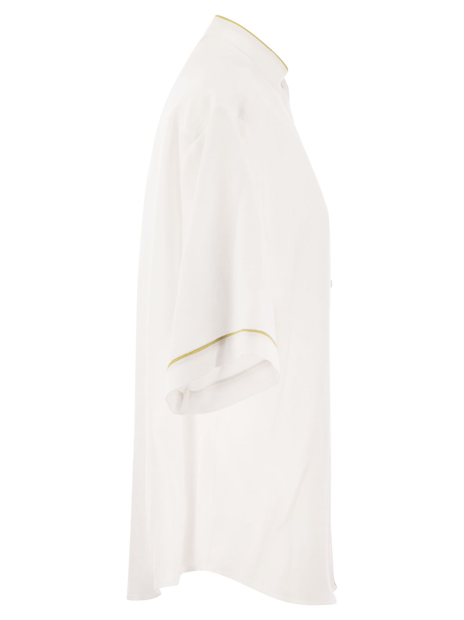 Los estilos de elegancia atemporal son reinterpretados por las siluetas contemporáneas en esta camisa línga de lino fresco. Se destaca gracias a las costuras de contraste en los bordes. - Detalles contrastantes - ID de diseñador de lino: CAD274F615 H497 M466 21
