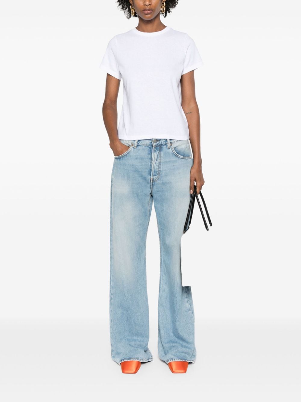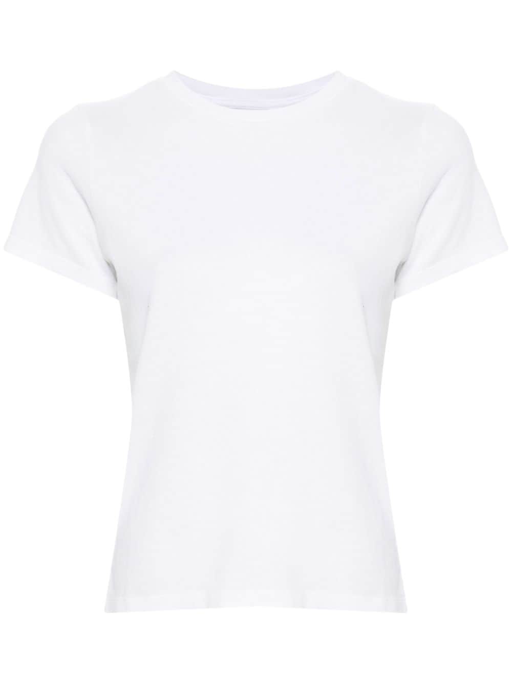 algodón blanco algodón ligero jersey triple cuello mangas cortas dobladillo recto