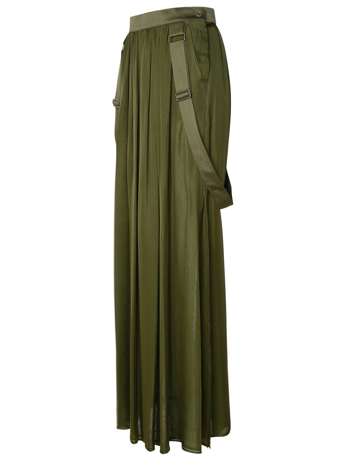 Falda larga hecha de gasa de seda pura con inserciones de gabardina de algodón, aparatos ortopédicos ajustables cruzados en la parte posterior, cierre del botón lateral en ambos lados, bolsillos laterales