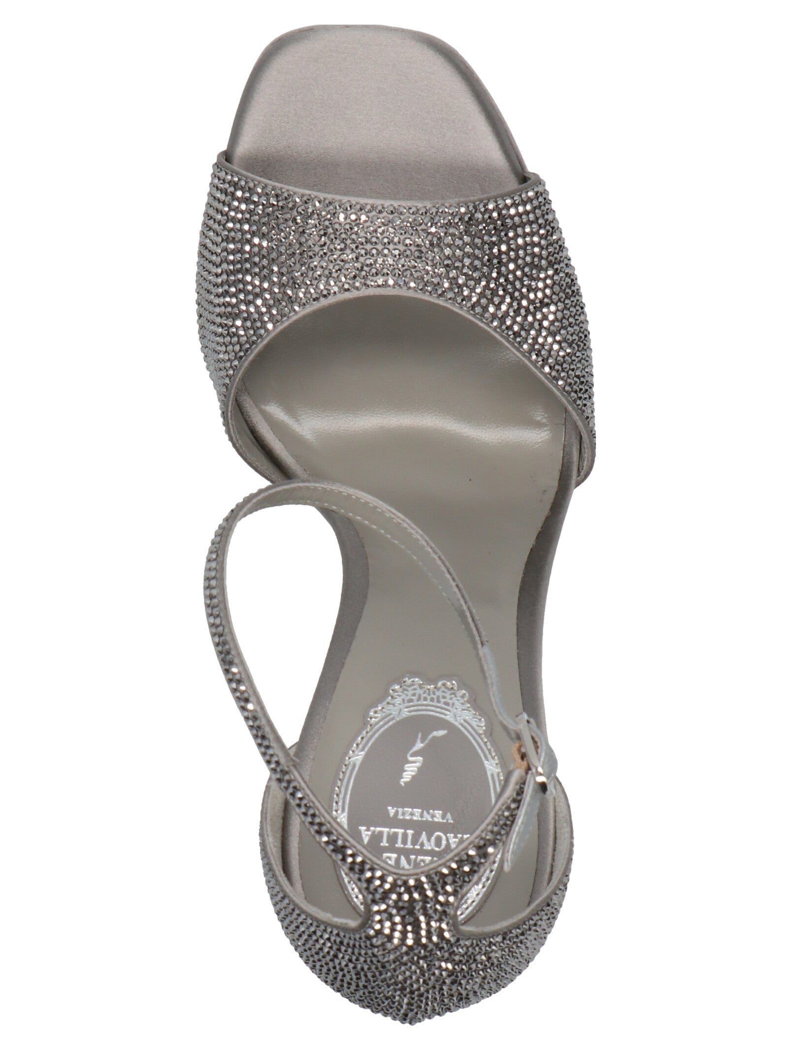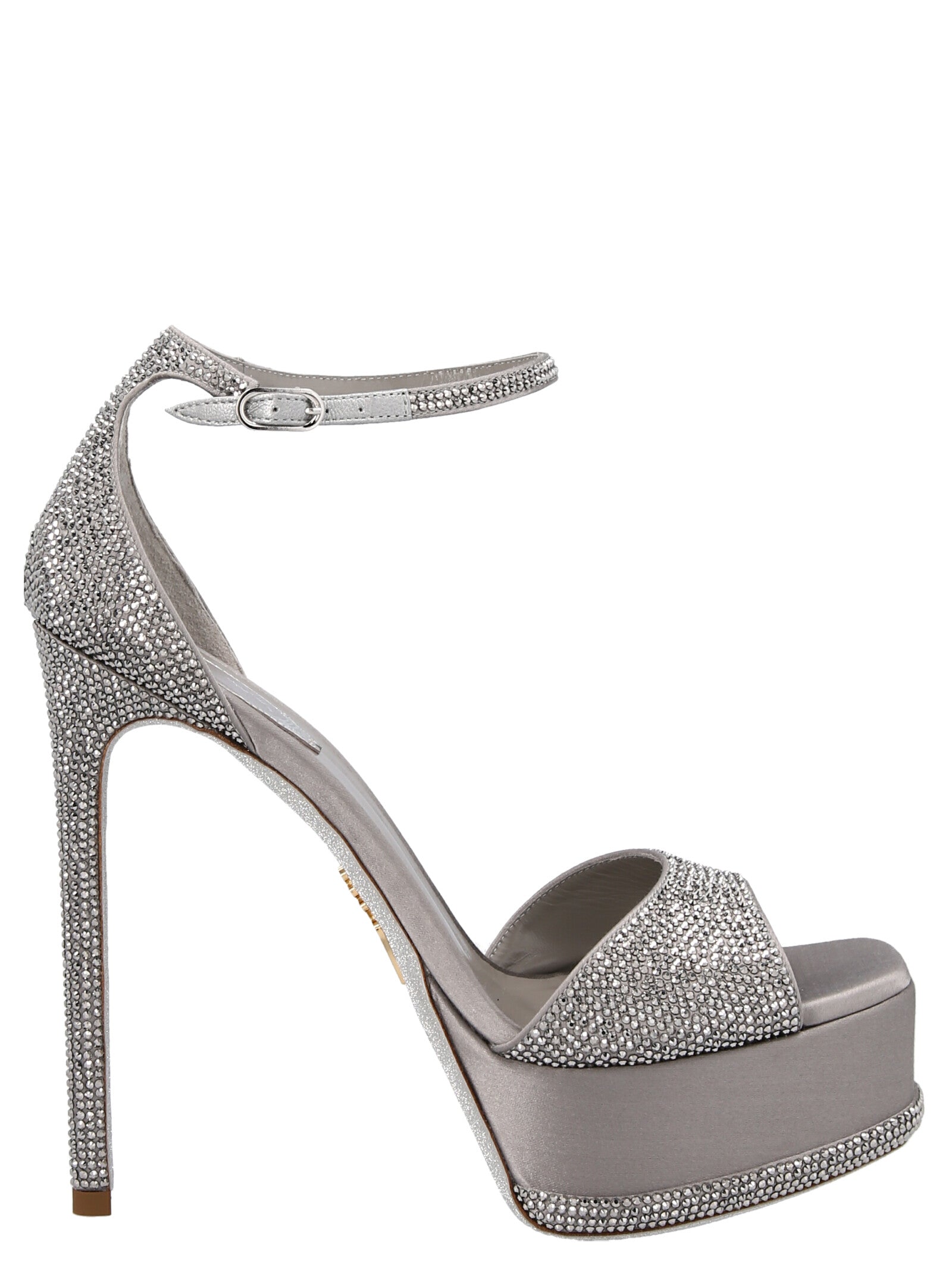 Sandalias satinadas de 'Anastasia' con adornos de cristal, correa de tobillo, plataforma y tacón de aguja.