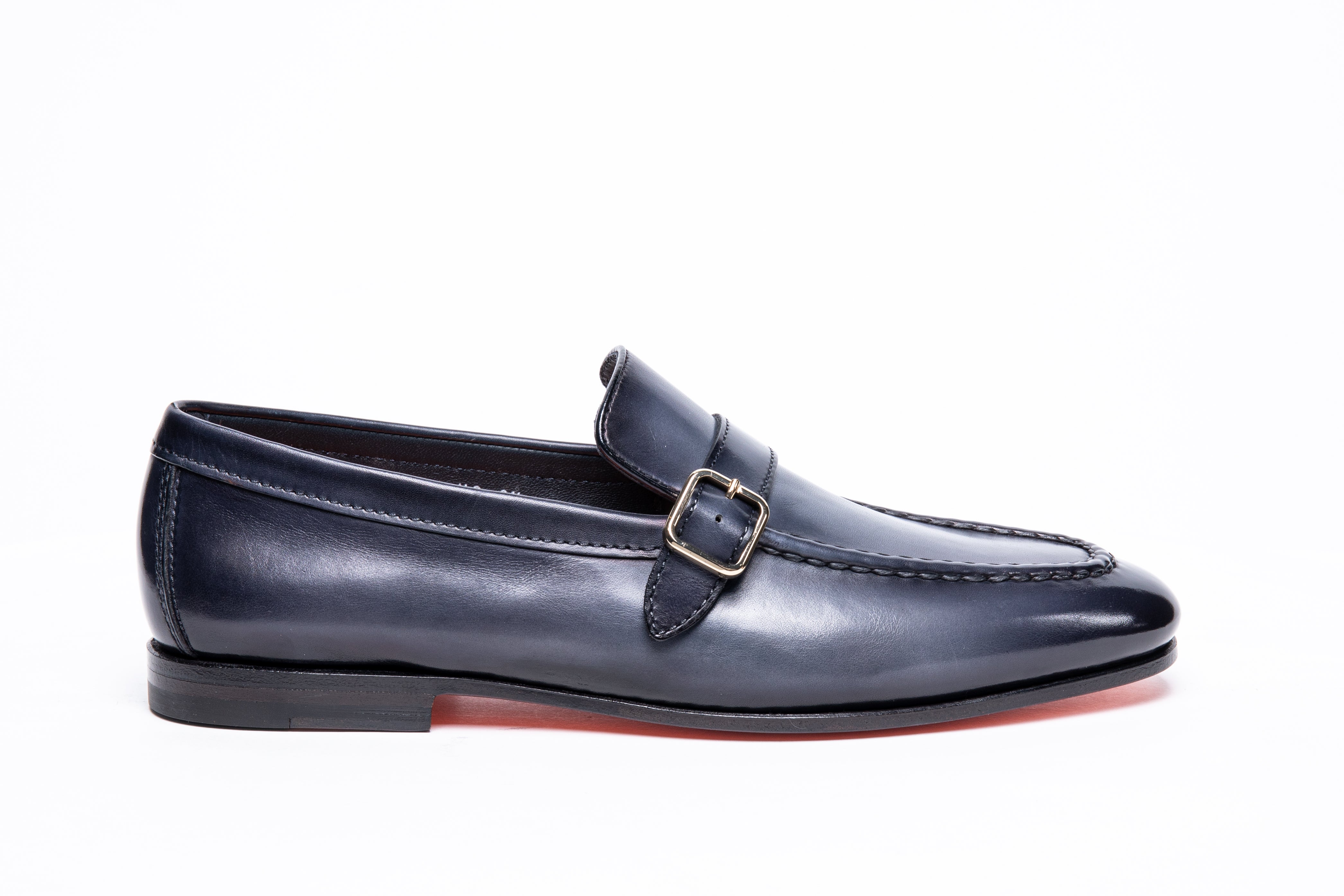 Hecho de cuero con matices artesanales y construcción de golosinas para un ajuste suave y flexible. El revestimiento interno y el fondo están terminados en Arancio Santoni.