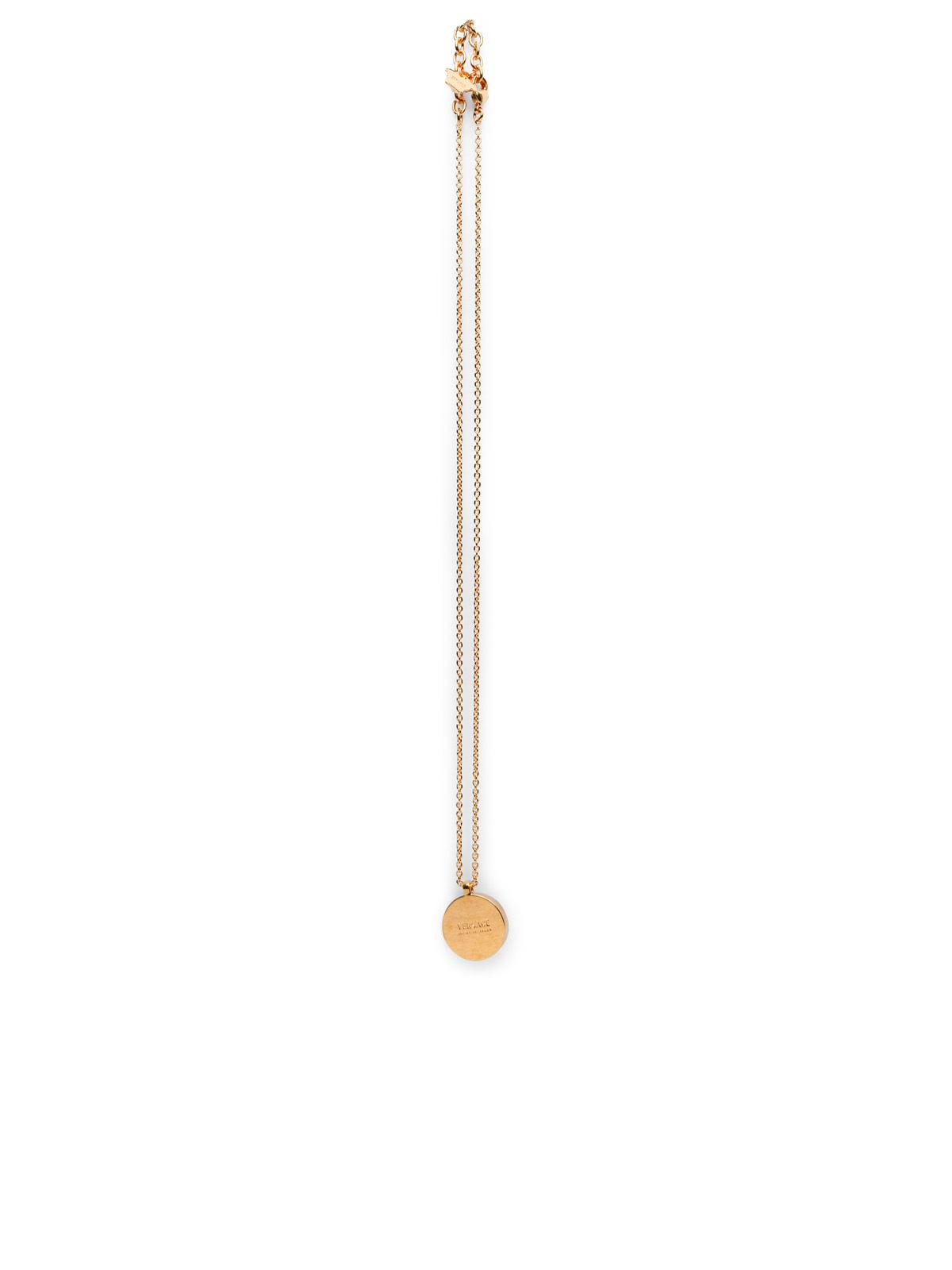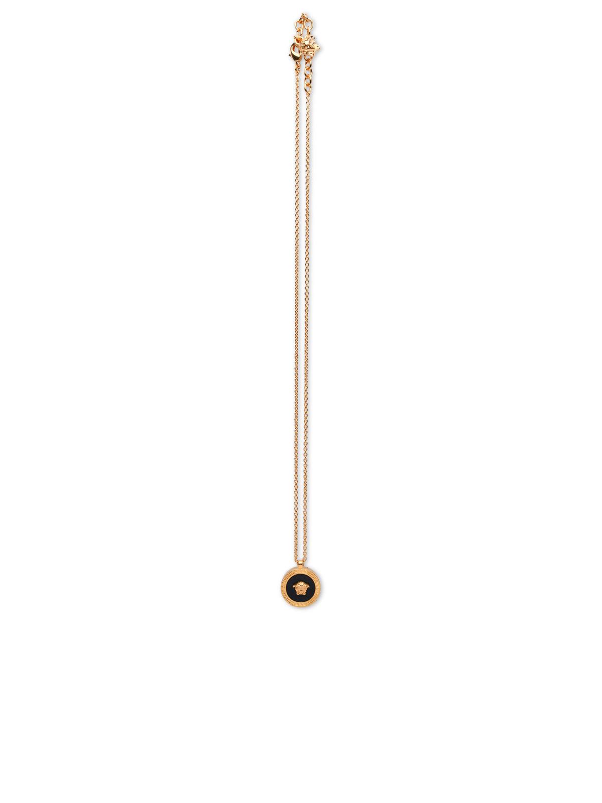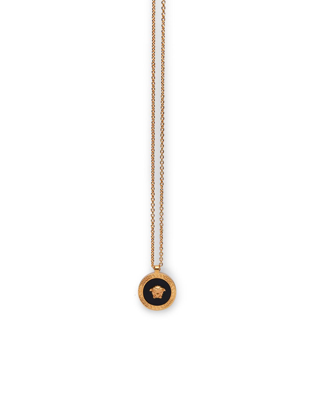Collar de cadena con colgante esmaltado con 'Medusa' central enmarcado por grabados con patrón 'Greca', cierre de gancho, plomo y níquel