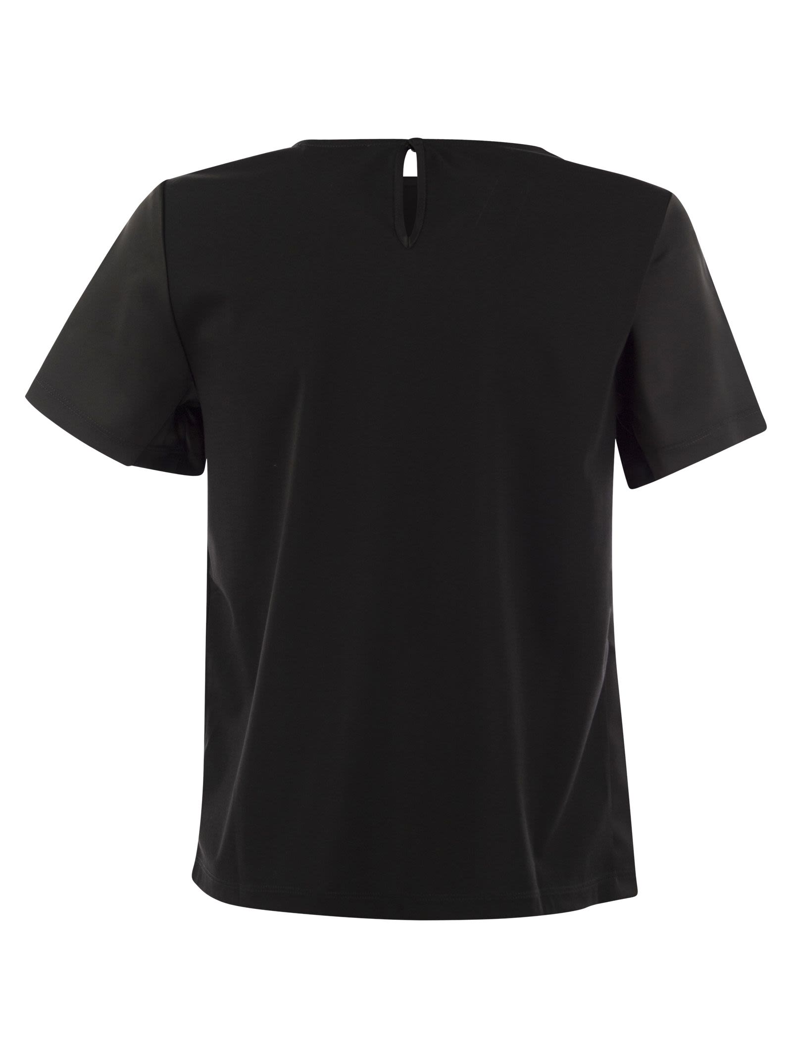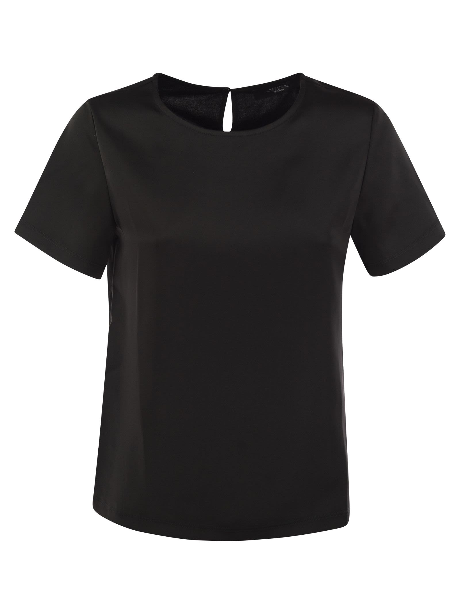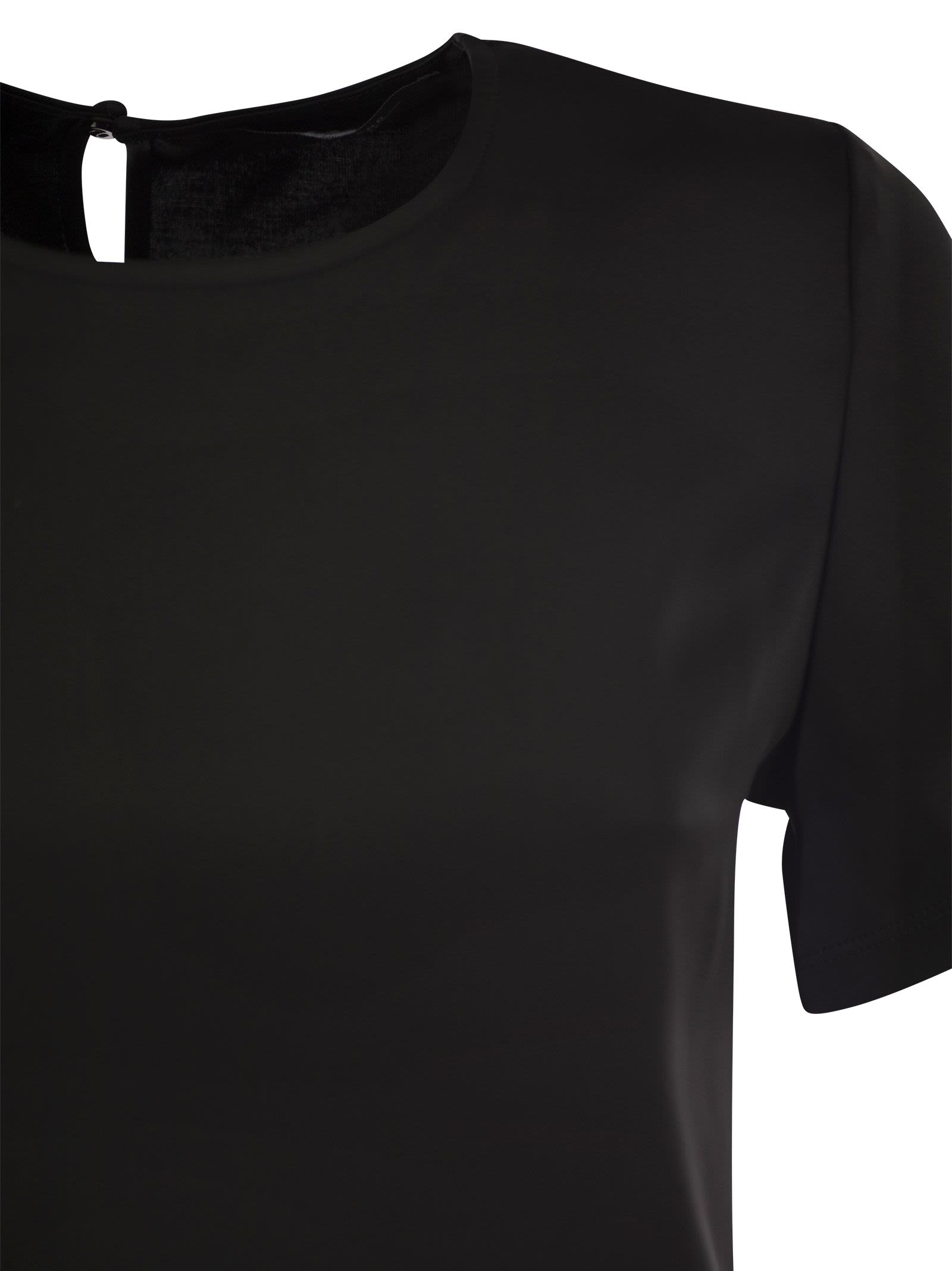 Camiseta de cuello de tripulación de línea recta hecha de satén y terminada con un inserto de jersey de viscosa suave en la parte posterior. Mangas cortas y deje caer sujetar con un pequeño botón en la parte posterior. - cuello de la tripulación - mangas cortas - sujetar con la parte posterior del diseñador ID: 2425946051600 010
