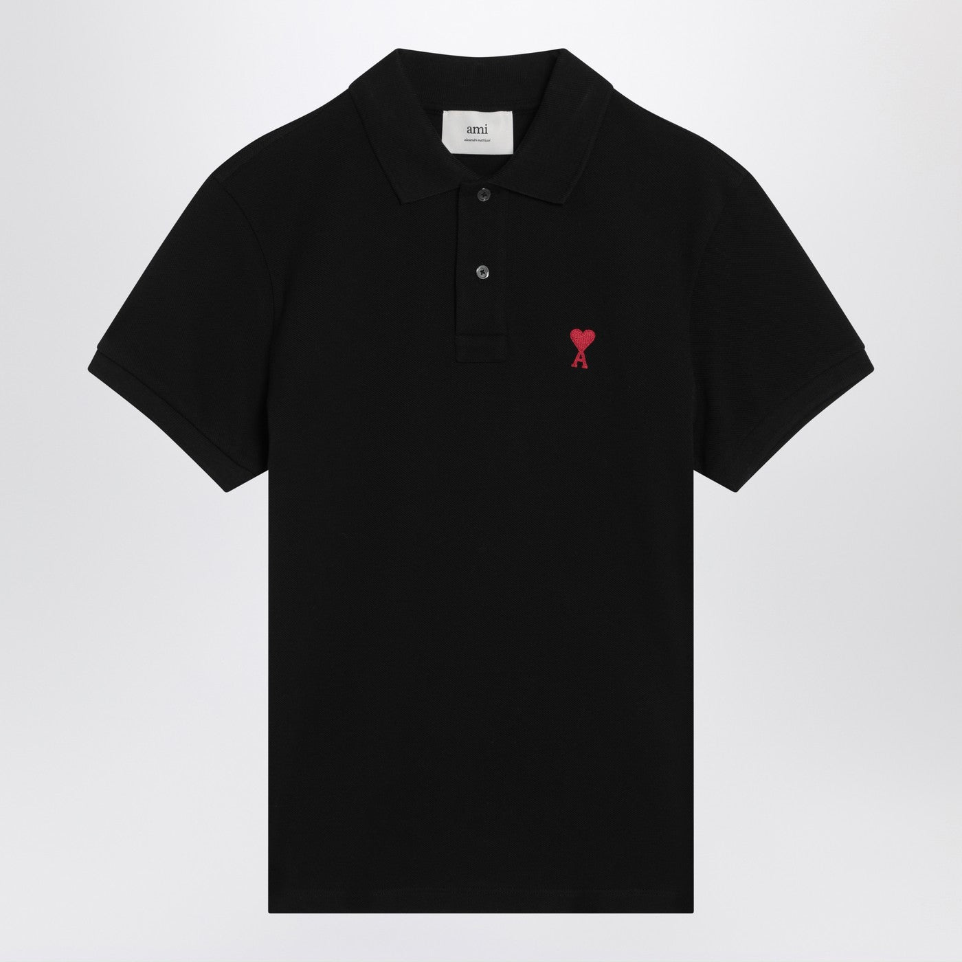 Polo de polo de algodón orgánico negro de Ami Paris con un collar clásico, dos botones en la parte delantera, mangas cortas y bordados ami de coeur en el cofre.