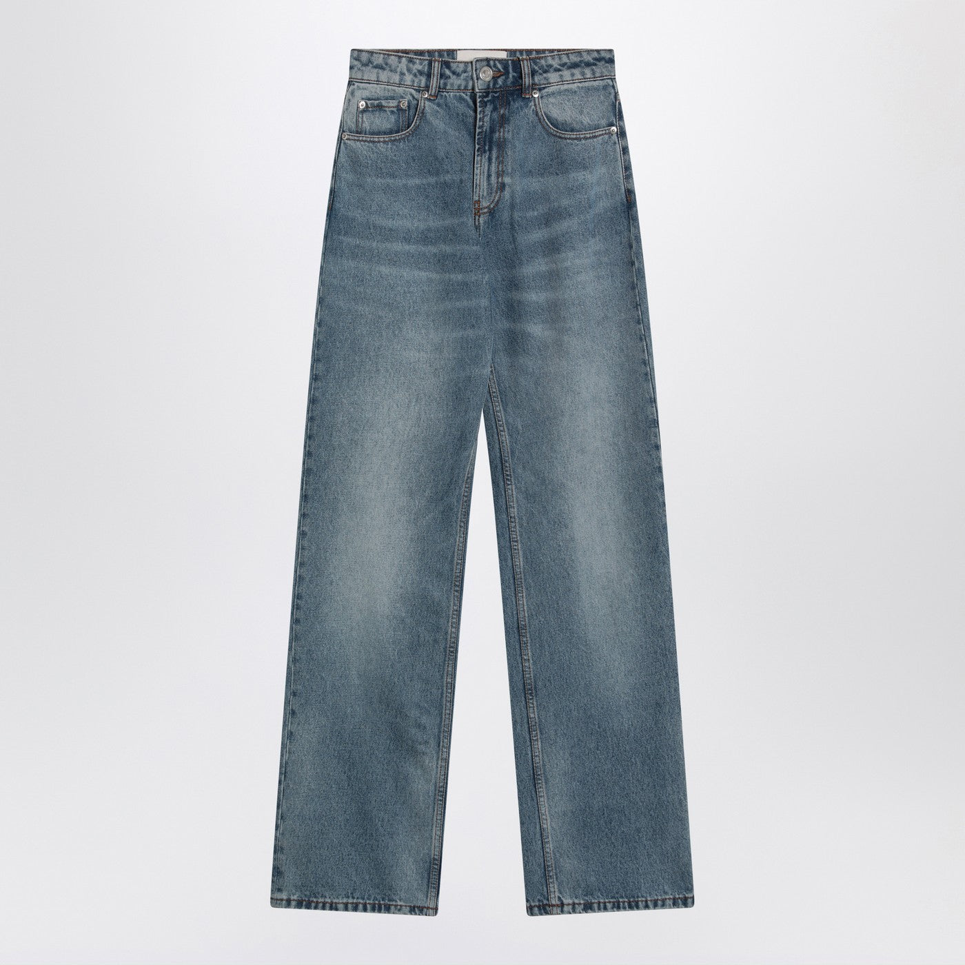 Los jeans de Ami París en mezclilla de algodón azul con un efecto descolorido, con un cierre delantero y un cierre de botones, bucles de cinturón, cinco bolsillos clásicos y un parche de logotipo posterior.