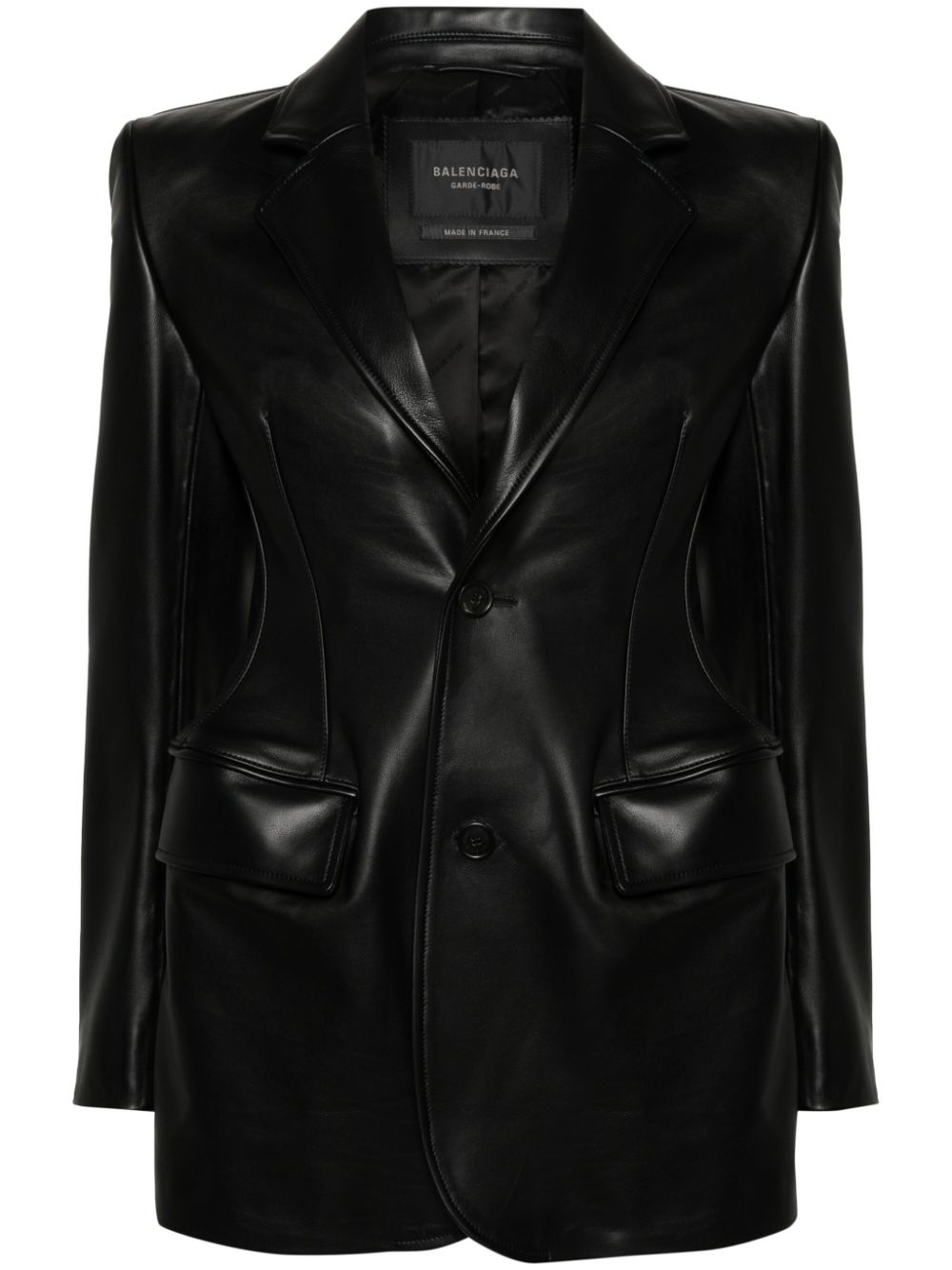 Chaqueta de cuero de reloj de arena de Balenciaga