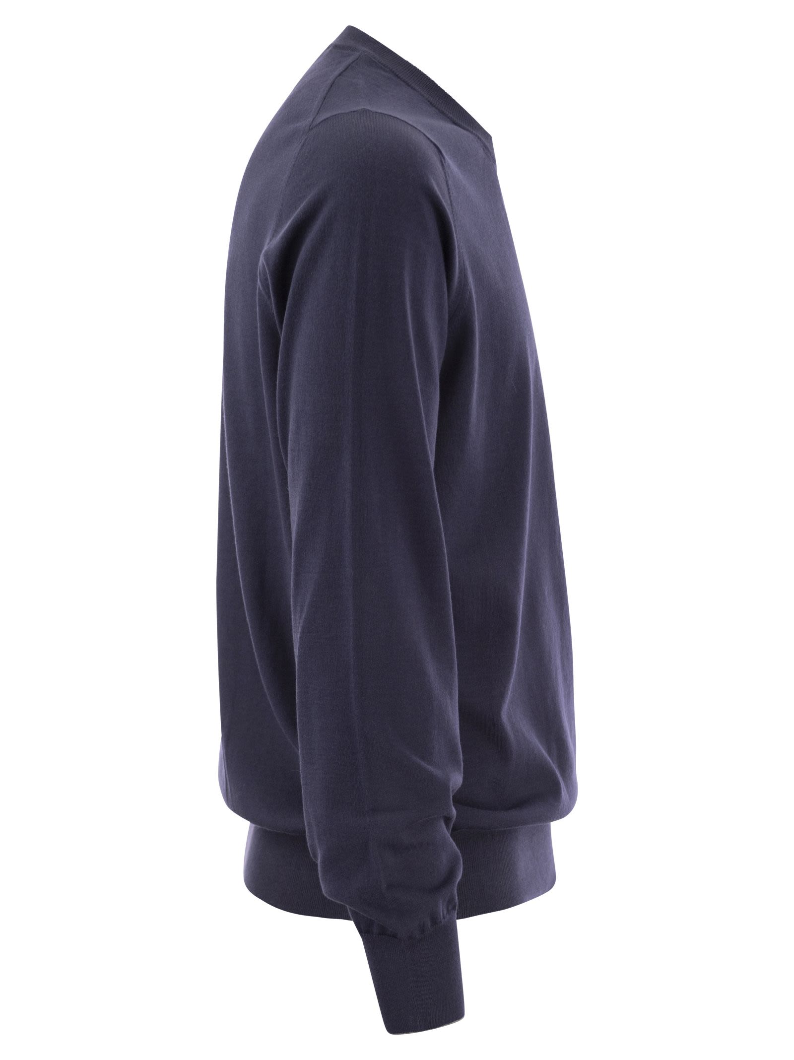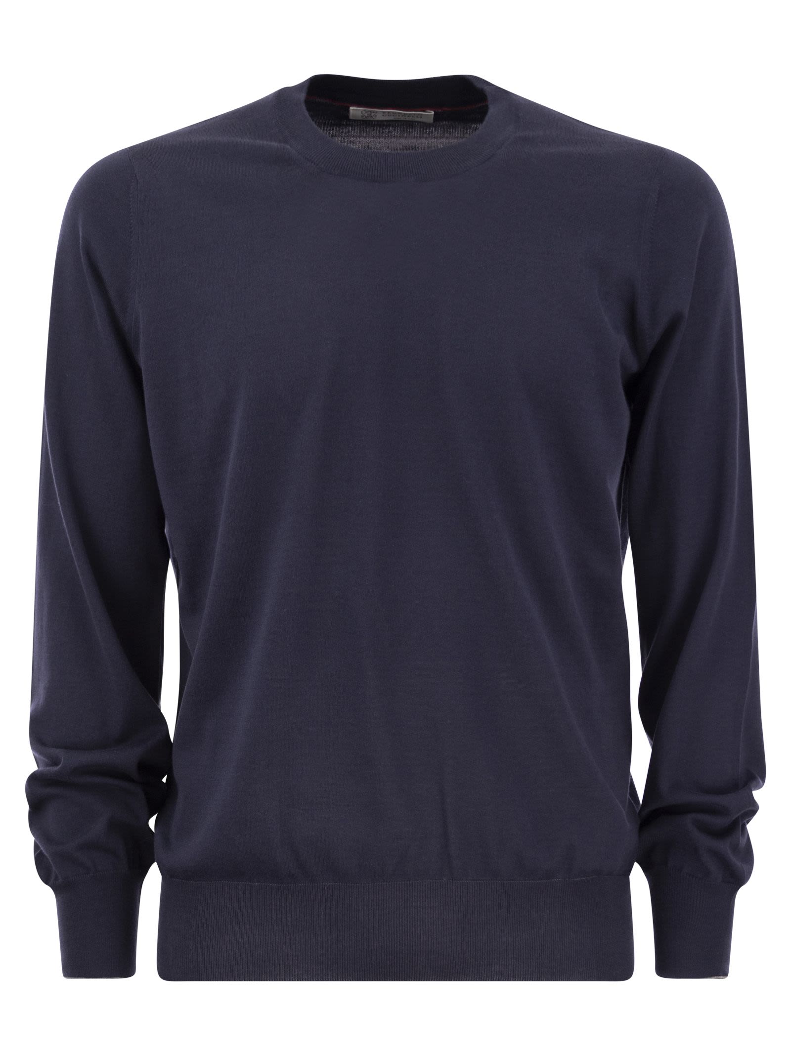 Brunello cucinelli 's Los materiales finos enriquecen el estilo del punto de algodón puro, hecho de un hilo liviano, ideal para un clima más cálido. El cuello acanalado, los puños y el dobladillo agregan elementos tradicionales al estilo simple y limpio y las líneas regulares de la prenda. - Codo de la tripulación de punto de costilla - puños de punto de costilla y dobladillo - ID de diseñador de punto afeitado: M2900100 CW425