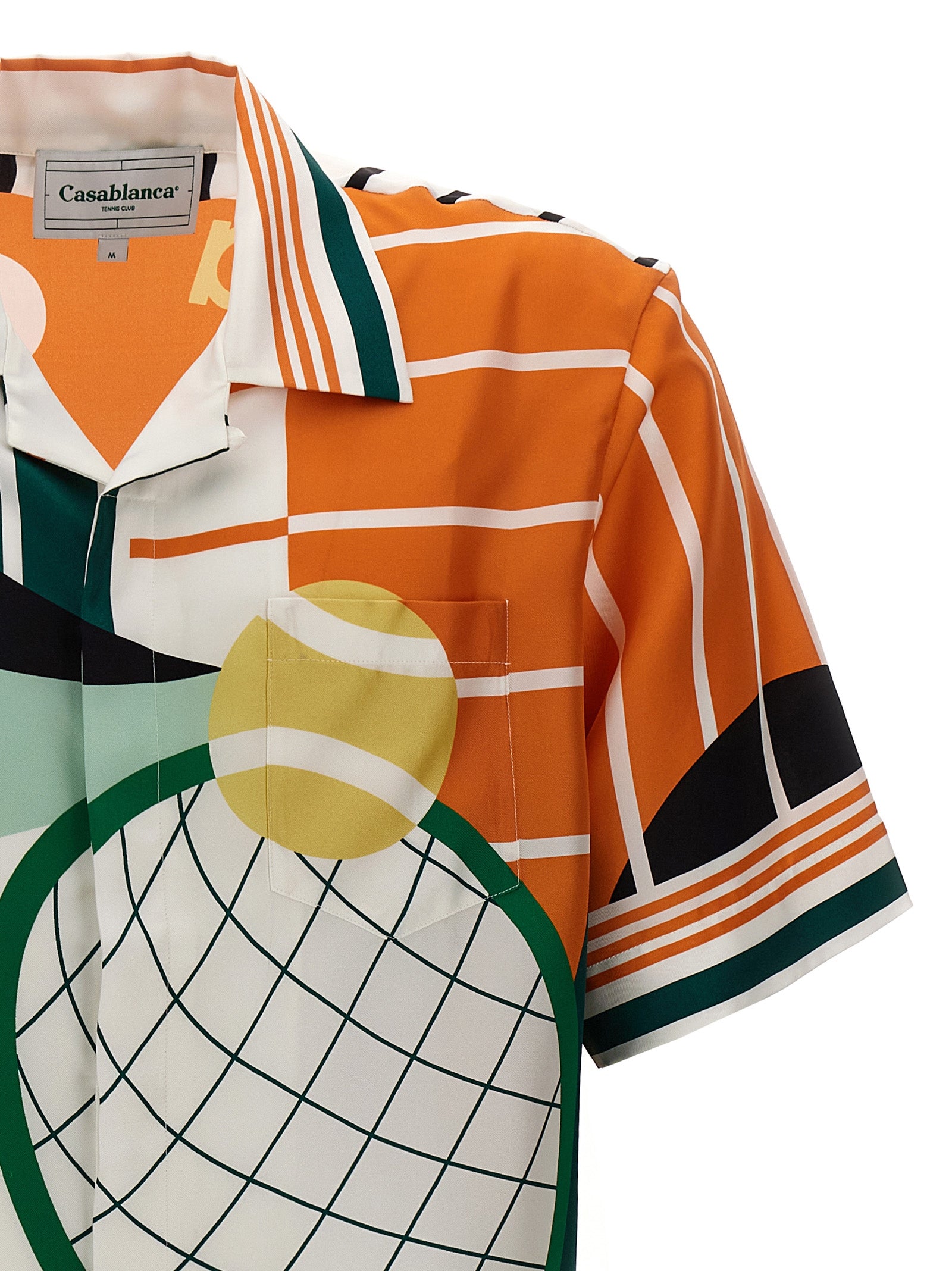 'Court Abrait' Camisa de seda con estampado completo, cuello cubano y cierre de botones.