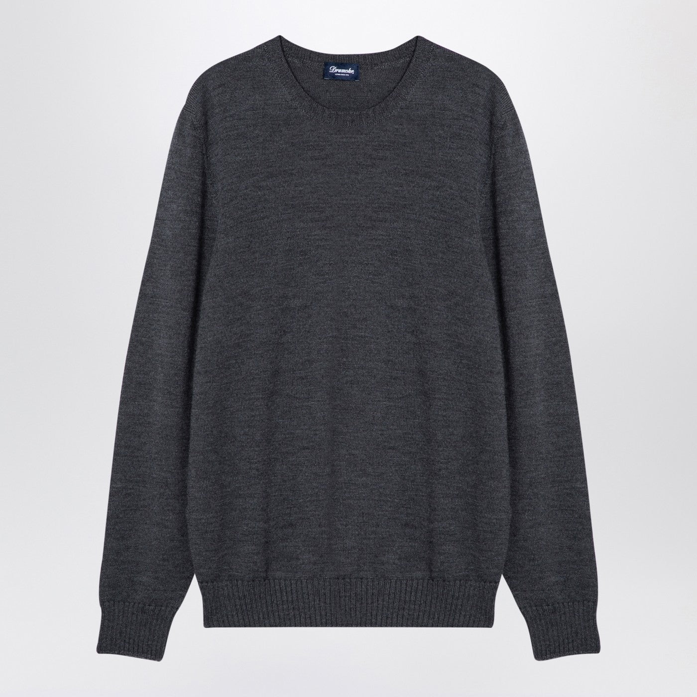 Jugua de cuello de la tripulación de lana de lana de mero de antracita gris por Drumhr, presenta mangas largas, dobladillos acanalados y dobladillo recto.