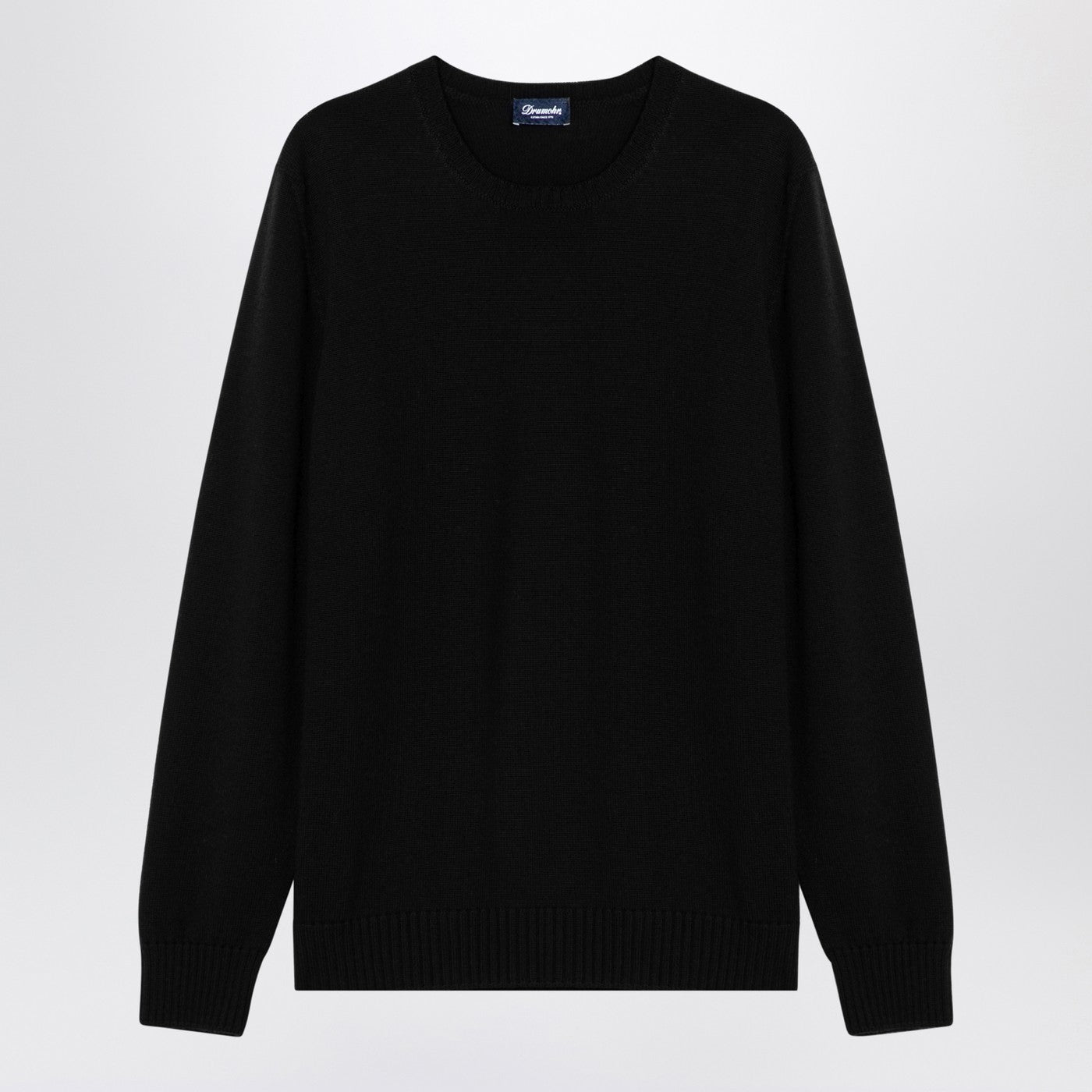 Jugua de cuello de equipo de lana de lana negra de Drumhr, presenta mangas largas, dobladillos acanalados y dobladillo recto.