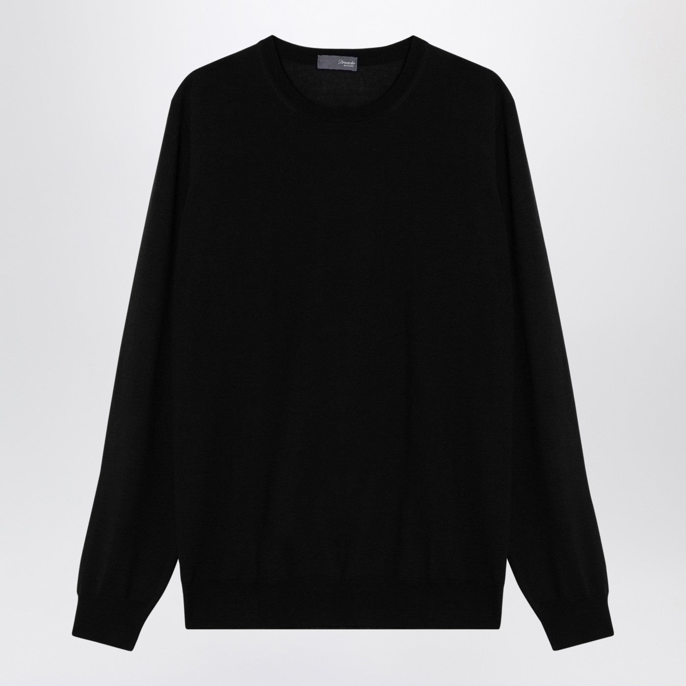 Suéter de cuello de la tripulación de lana negra de Drumhr