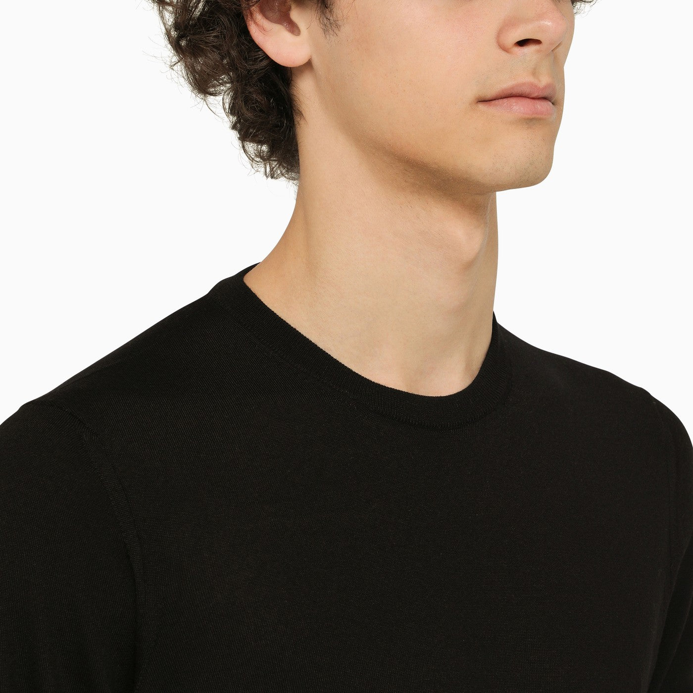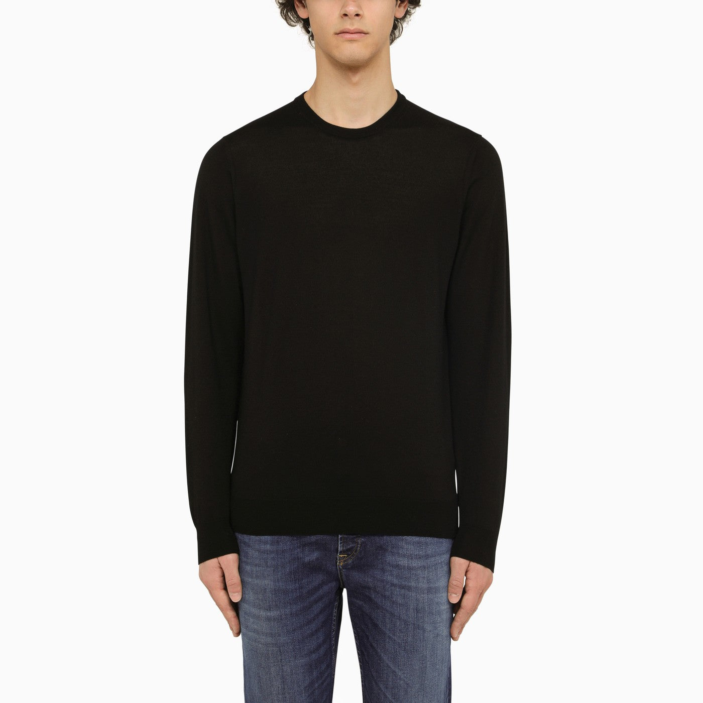 Suéter de cuello tripulado liviano de lana negra de Drumhr con mangas largas y adornos acanalados. Ajuste regular.
