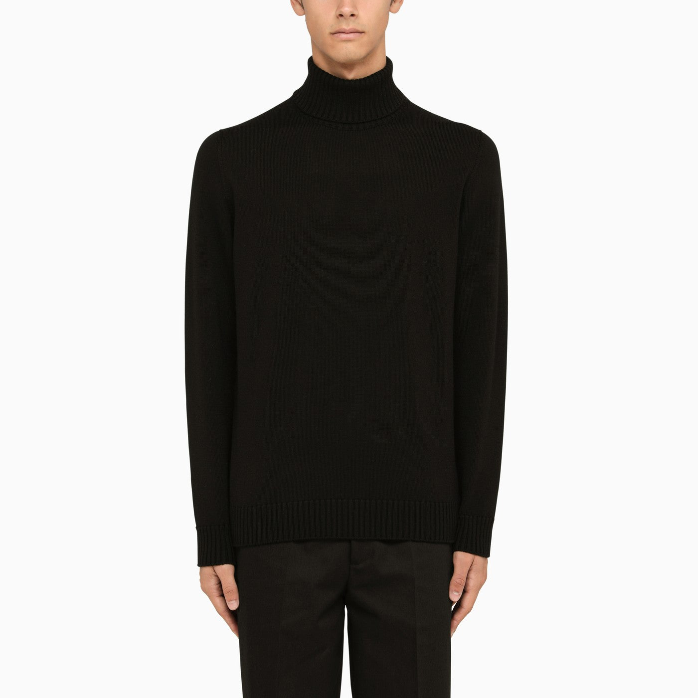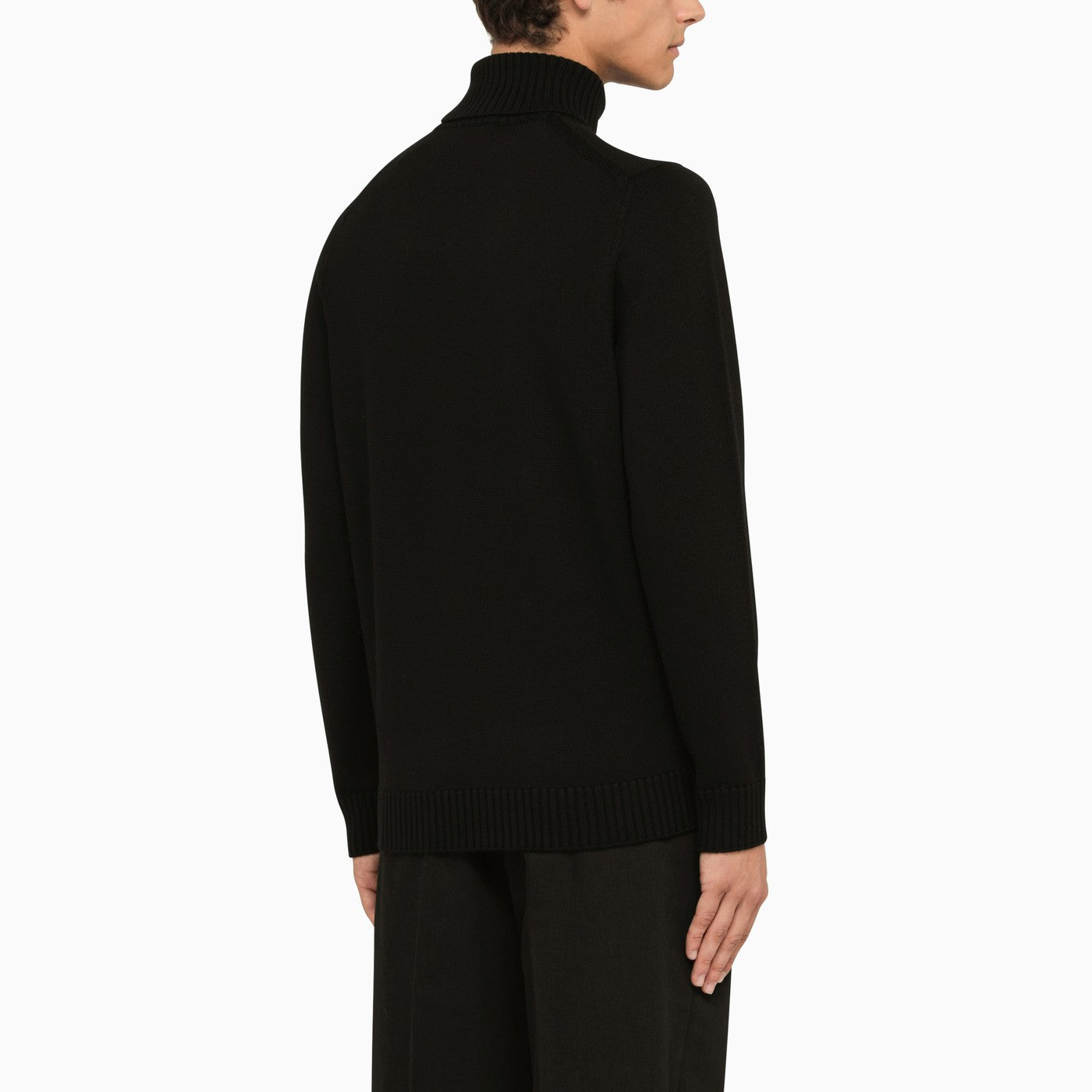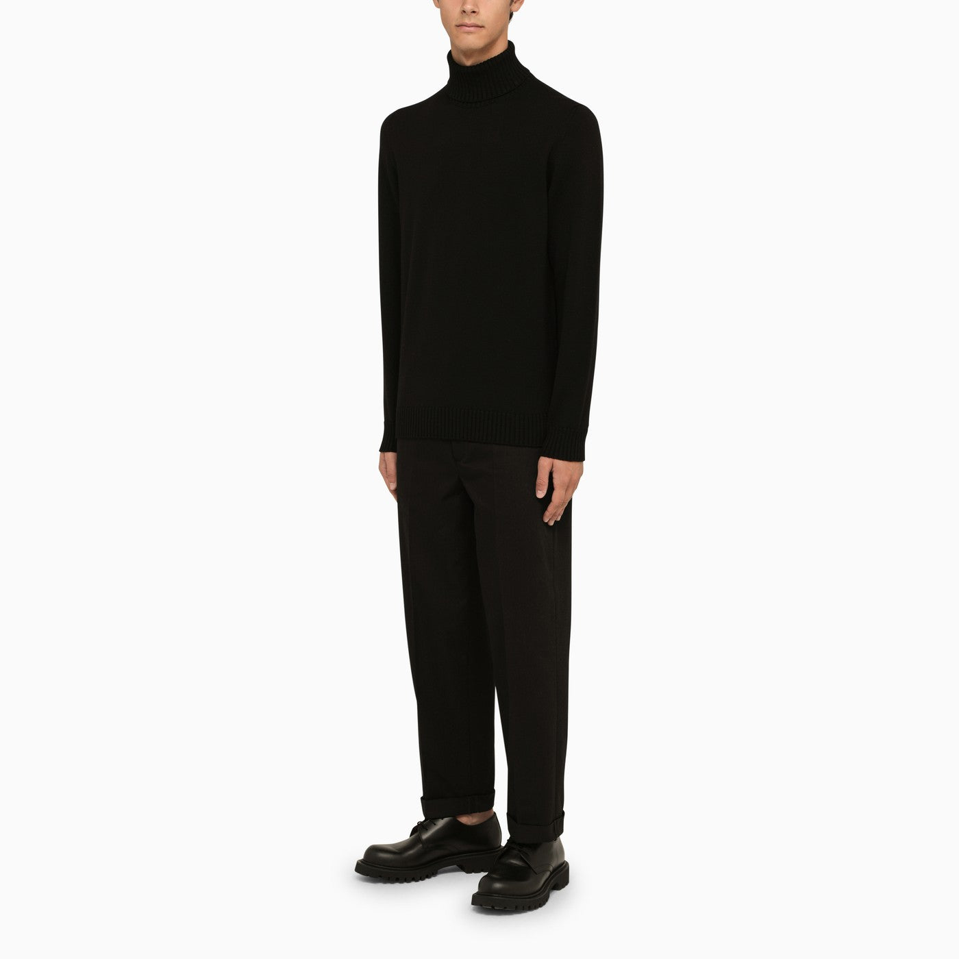 El cuello de tortuga de lana merino negro de Drumhr con mangas largas.