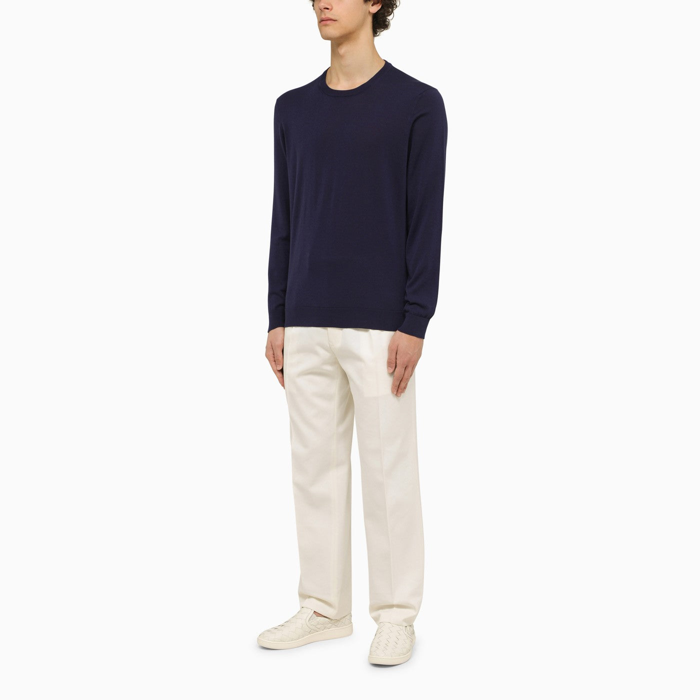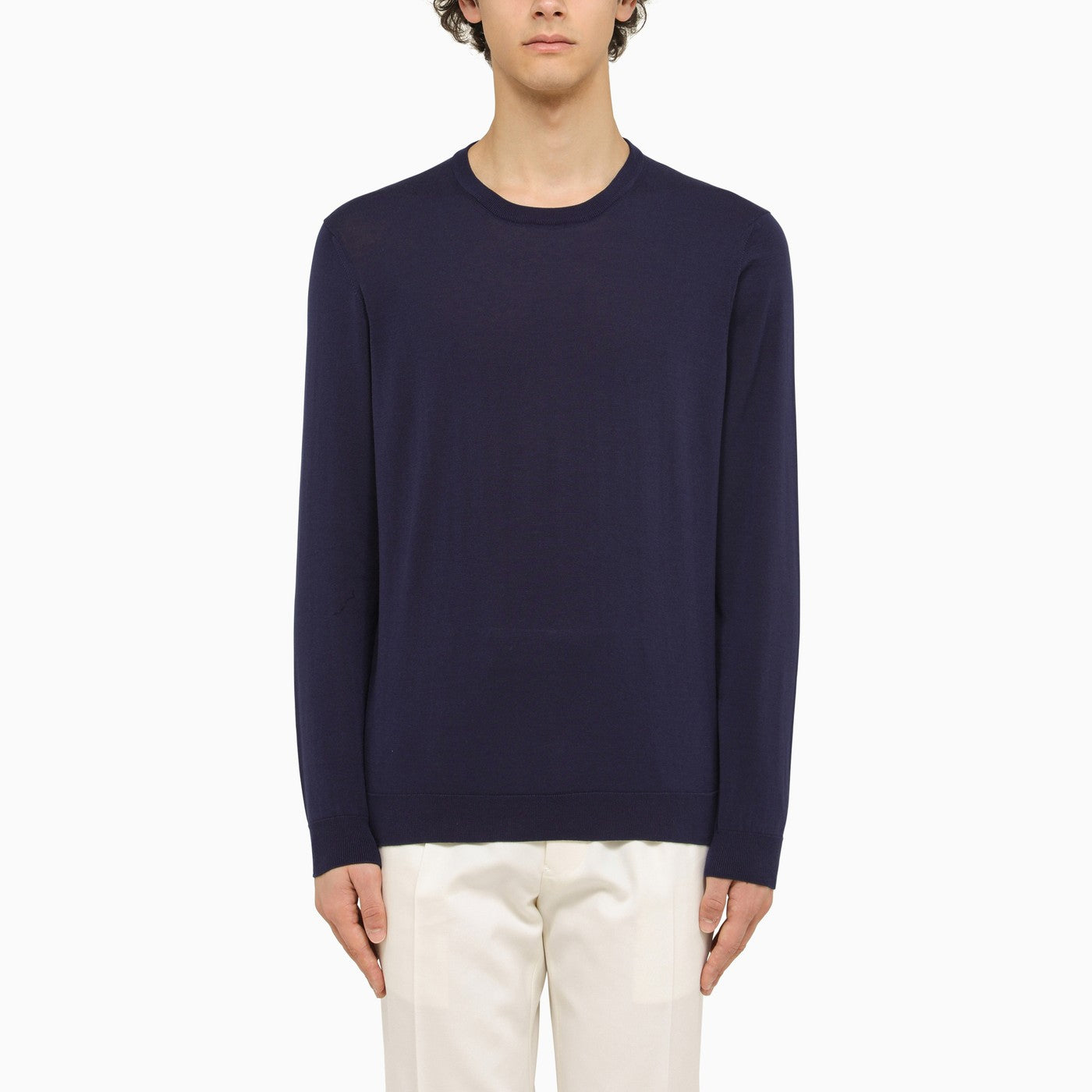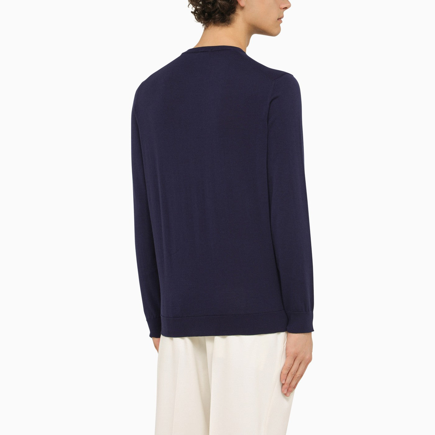 Suéter de cuello de tripulación de algodón azul de Drumhr