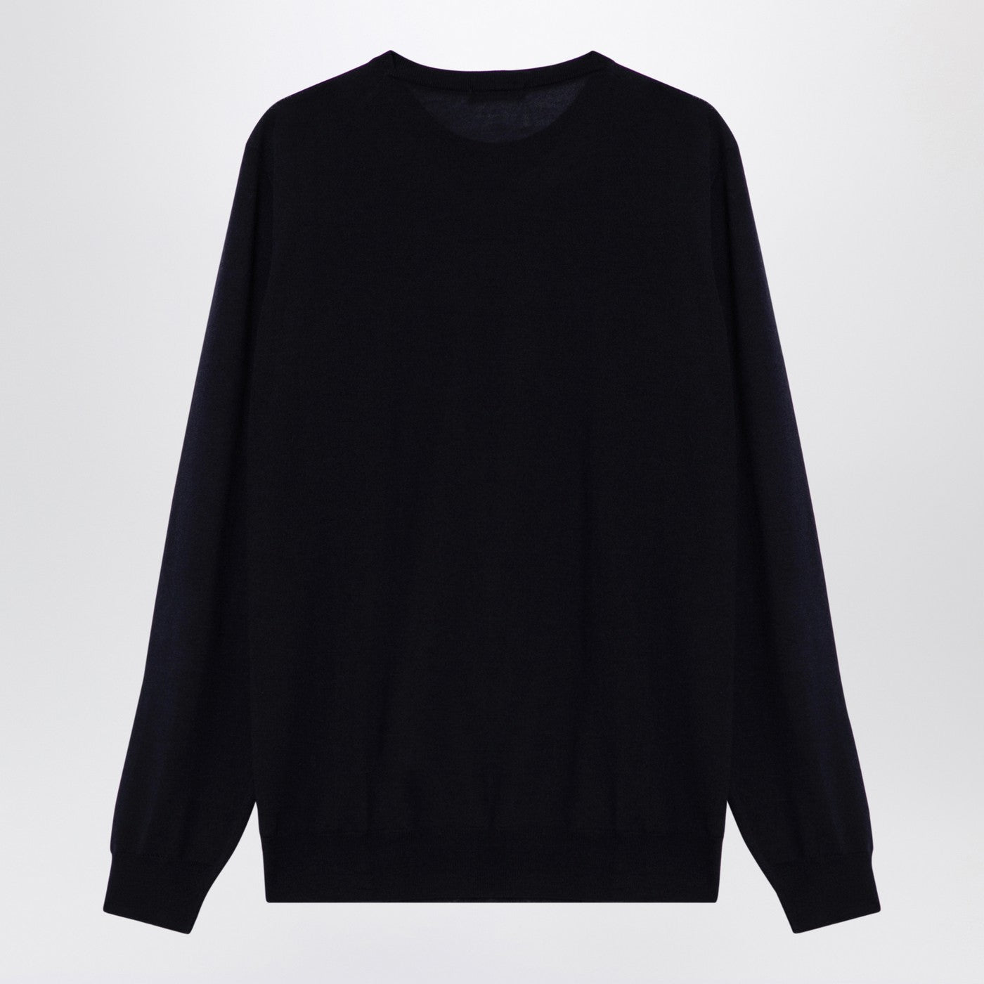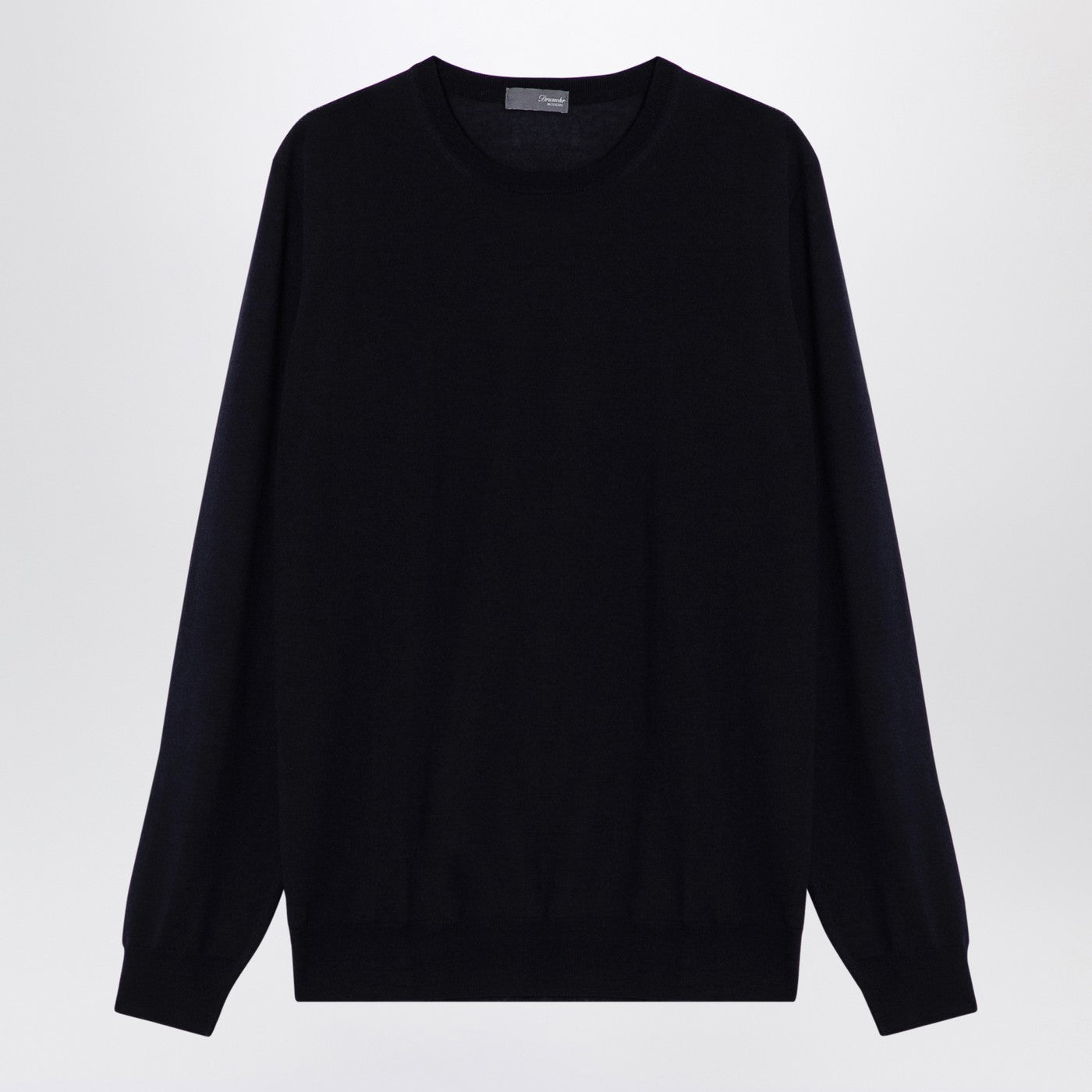 Suéter de cuello de tripulación de lana azul de Drumhr con mangas largas y bordes acanalados. Ajuste regular.