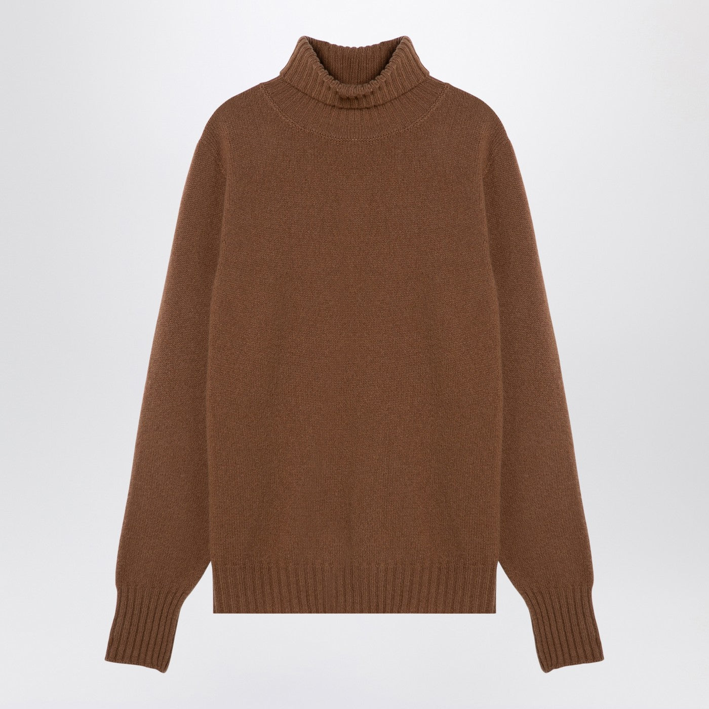 Suéter de cuello de tortuga de color camello en lana en lana