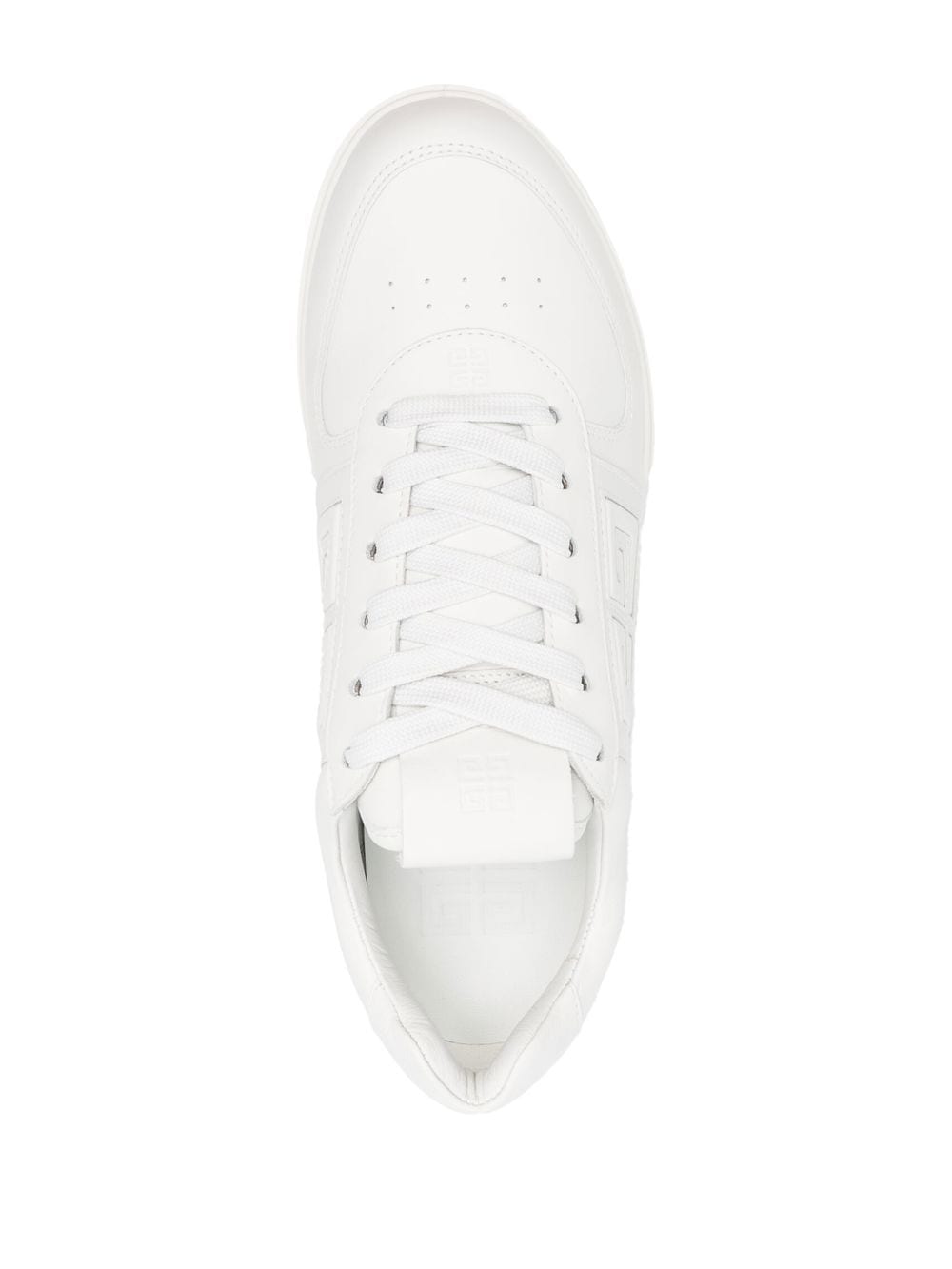 Las zapatillas de cordón baja de Givenchy con cuero de pantorrilla, detalles perforados, fijación de cordones delanteros, dedo del pie redondo, suela de goma gruesa y blanco.