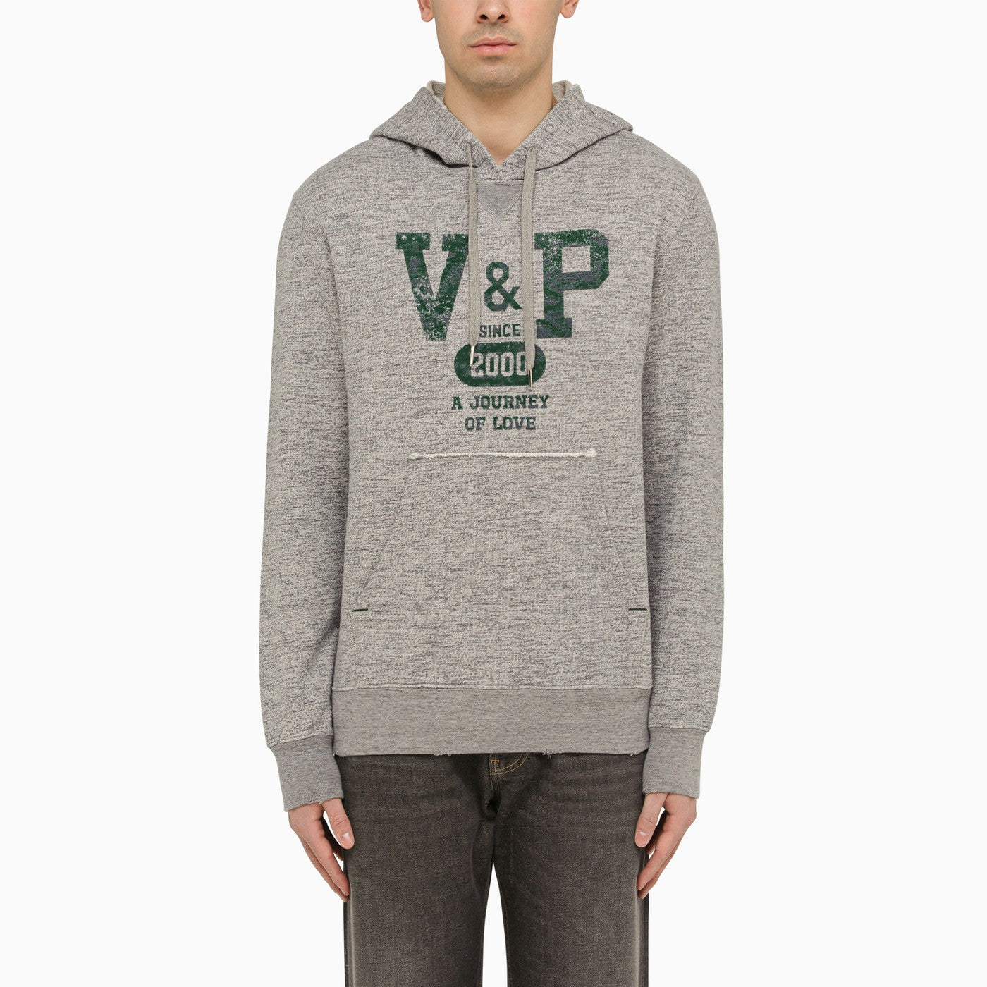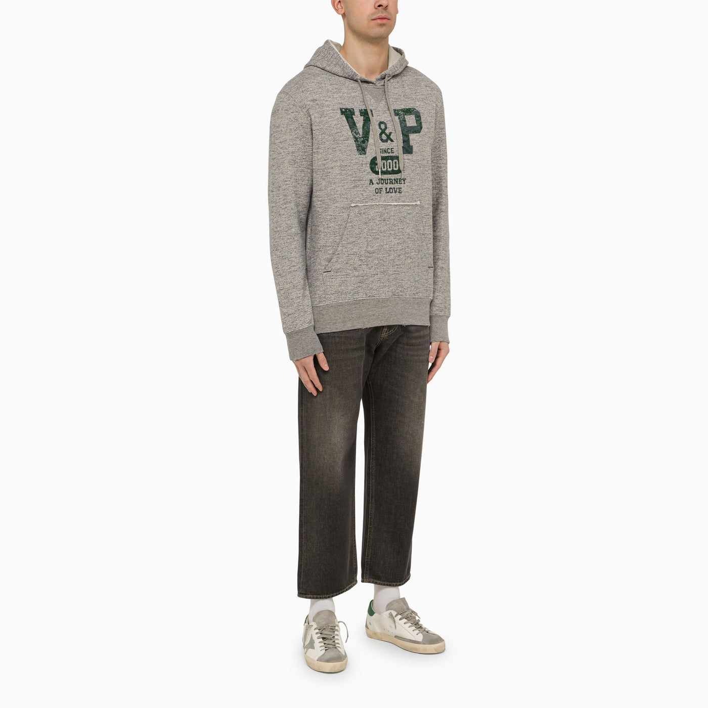 La sudadera de algodón gris de la marca Golden Goose Deluxe cuenta con una capucha con cordones, mangas largas, un bolsillo de bolsa y un estampado de contraste en la parte delantera.