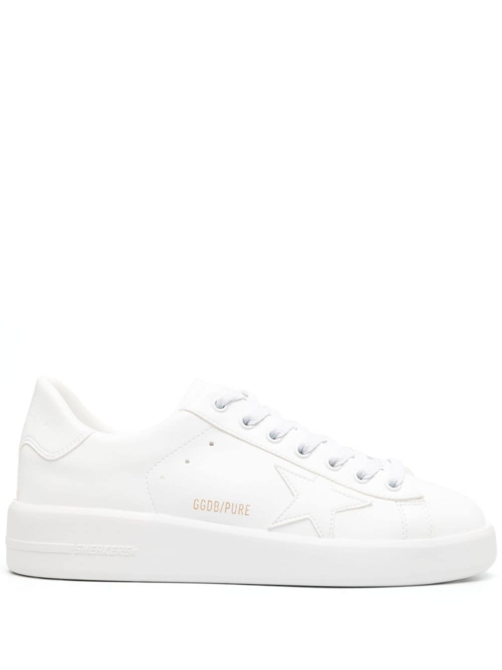 Las zapatillas de deporte de puta y baja de Golden Goose con parche de estrella blanco a los lados, estampado de logotipo a un lado, logotipo debilitado en la parte trasera, plantilla de marca, detalles perforados, fijación de cordones delanteros, dedo del pie redondo y suela de goma plana.