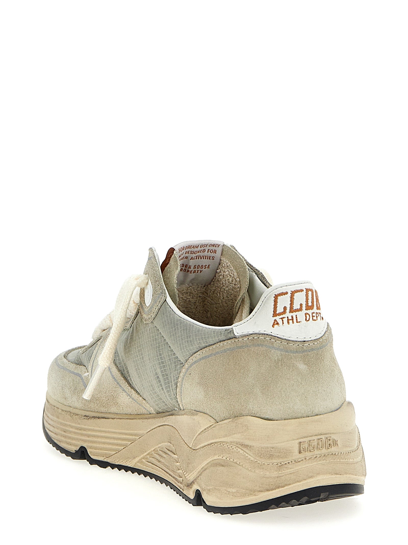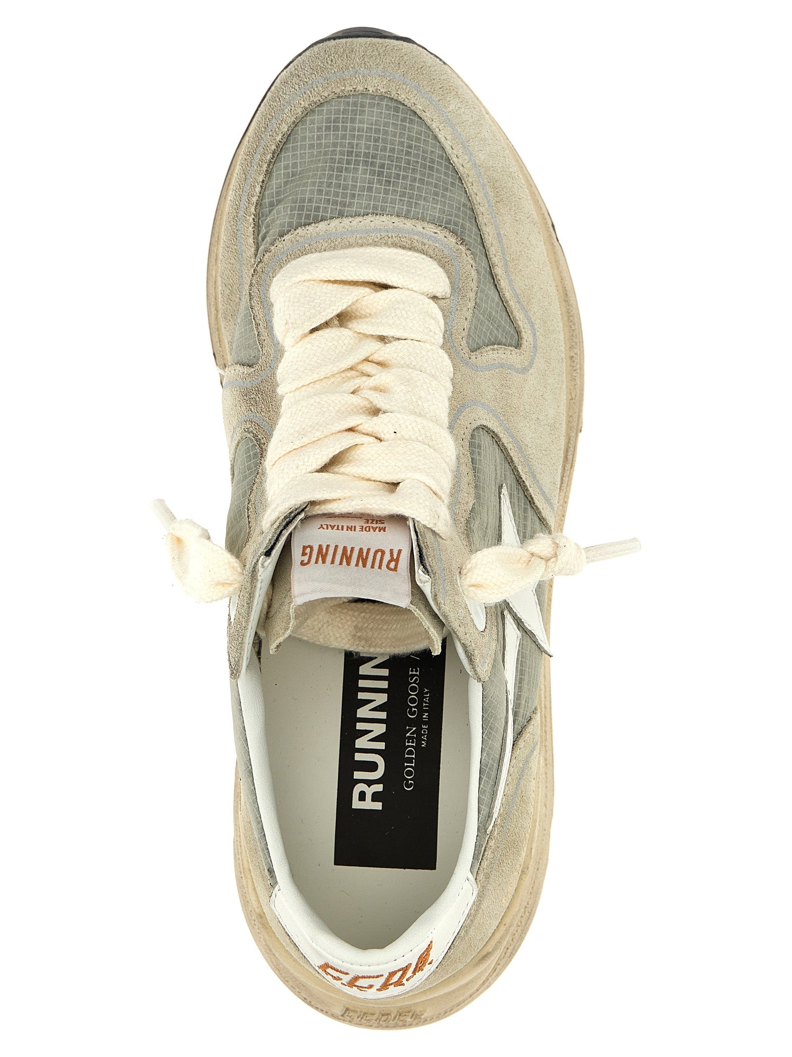 Las zapatillas de zapatillas de deporte 'corriendo suela' en gamuza, nylon y cuero con cordones, suela de goma, detalles de efectos usados.